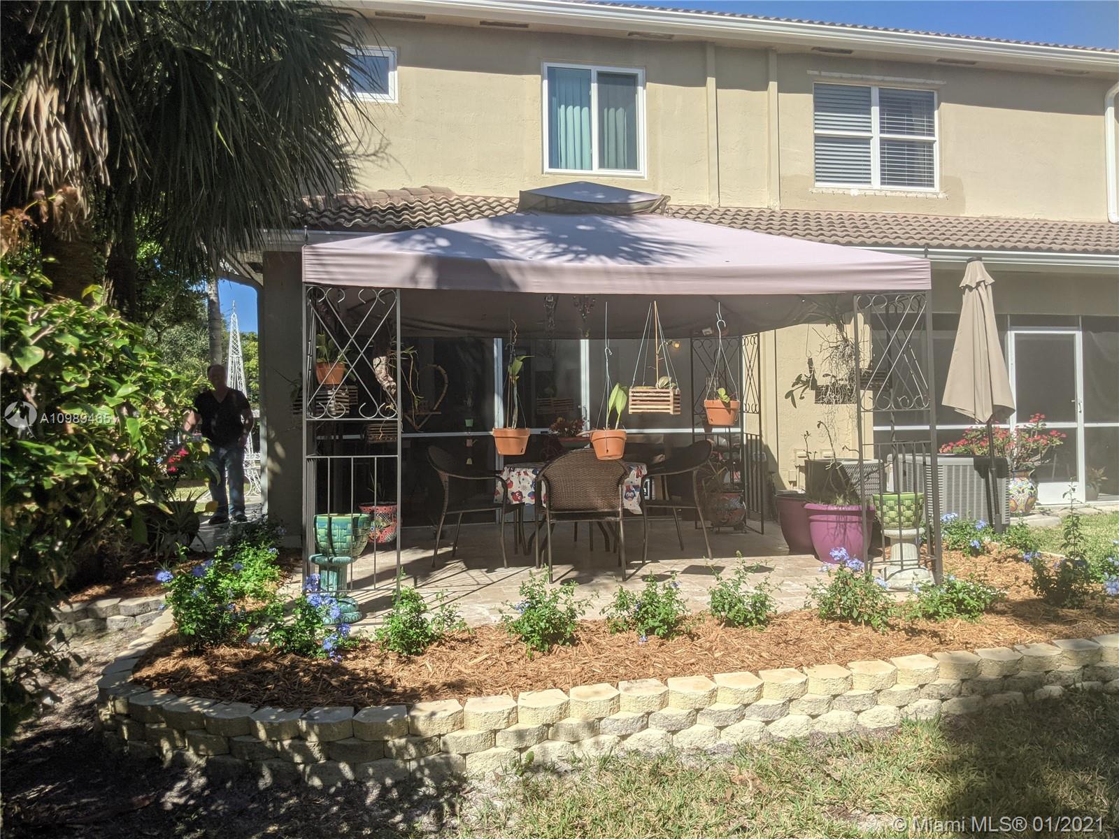 Don't miss out on this beautiful 2-Story END UNIT townhome completely remodeled with 42" kitchen cabinets, stainless steel appliances, hurricane windows and doors on all except one small round window, 1 car garage, and guest parking next to unit. Screened in front door area and back patio with large brick paver area with gazebo in back yard behind the patio that is not screened. Garage is NOT CONVERTED! This is a true 3/2.5 with jack-and-jill bathroom for the 2nd and 3rd bedrooms. Wood floors downstairs and carpet up stairs.
