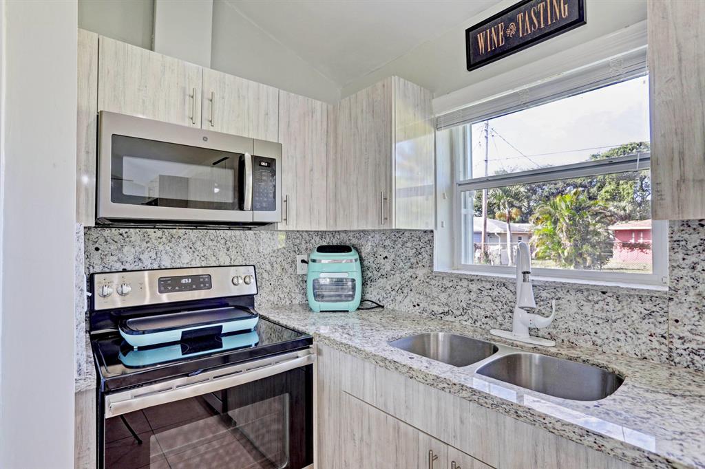 Prepare to fall in love when you inspect this 3-bedroom, 2-bath, 1-car garage, no HOA home, hidden away on the fringe of West Palm Beach. This gorgeous home has a set of double entry doors to offer as a bonus feature. Step inside and discover a spacious open floor plan flooded with natural light, featuring high ceilings and a beautifully renovated interior. A contemporary kitchen, perfect for frequent entertainers, offers ample cabinetry and bench space so you can prepare yummy foods for your family and friends. From your kitchen table, enjoy the view of your huge, private, fully-fenced yard with its lush green lawn perfect for children and pets to play. There's even a ton of space to build your dream pool! The bathrooms have been remodeled in a sleek, modern style, and you'll also enjoy