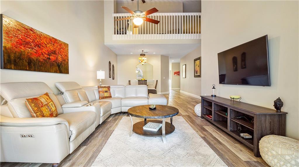 Welcome to exclusive and gated Fairview Pointe in Palm-Aire! This expansive 3 BR, 3 1/2 BA+loft townhome has been tastefully updated with luxury vinyl plank flooring, stainless steel kitchen appliances and interior paint. The master suite is downstairs and includes a walk-in closet, dual sinks and a shower. Upstairs there are two nicely sized bedrooms, one of which has it's own private bathroom. There is an additional full bath and an amazing loft area as well. Out back is an oversized screened lanai with a golf and water view. Parking is never an issue with a 2 car garage, room for 2 cars in the driveway and plenty of guest parking across the street. You will not lack space in this gorgeous home! Roof replaced in 2019. *Furniture Negotiable*DINING ROOM CHANDELIER IS EXCLUDED FROM SALE.