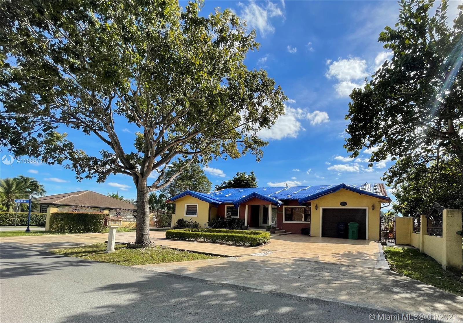 Cash only. Doral Pool Home on a corner lot with over 10,000 square feet for your family to enjoy. Please note, this is unapproved short sale. The garage was converted to a bedroom and an additional bathroom was added. With these additions the house has 4 bedrooms and 4 bathrooms. According to the seller half of the roof was damaged and should be replaced. The other half was redone 3 years ago. Please call for more information.