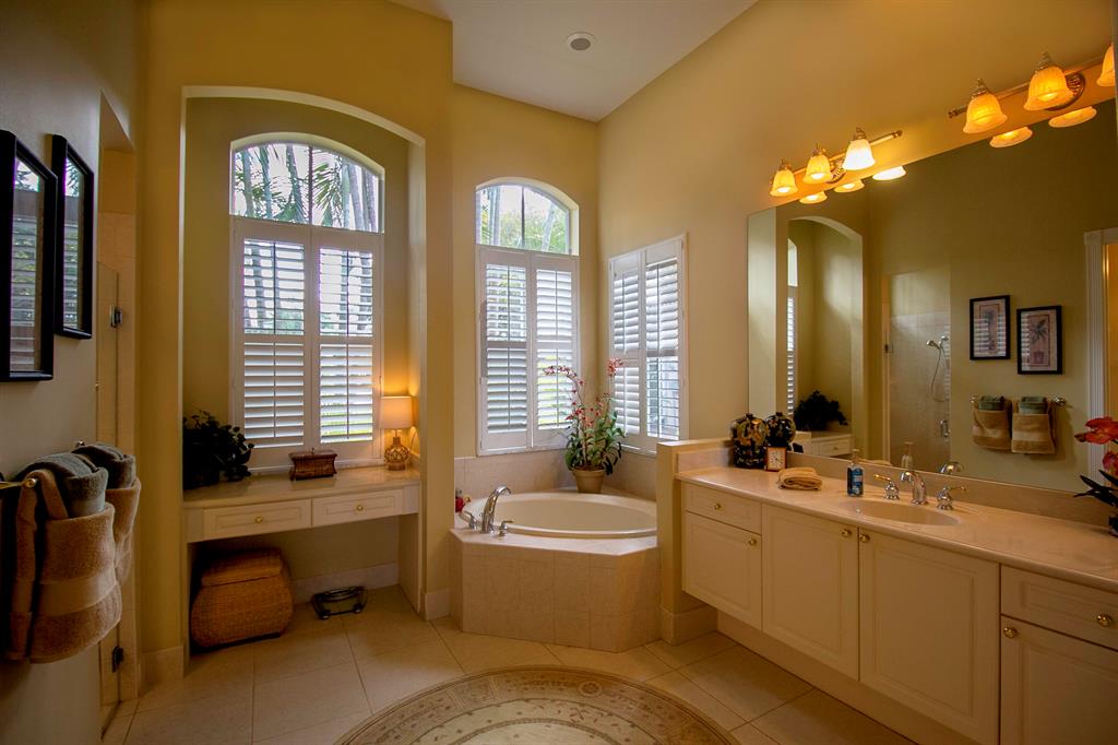 STUNNING, TURN-KEY 3bd/3bath + den on ESTATE lot. Beautifully furnished. Professionally landscaped, perfect view of the 18th hole. GORGEOUS inside and out. Volume ceilings, classic ceramic tile will take your breath away. This split plan home has a large master suite with an adjacent sitting room leading out to the pool, with two large walk in closets. Master bath has his and her vanities, roman tub and 2 commodes. Open archways throughout. Cozy kitchen with breakfast nook and large island, full wall pantry. French doors lead out to a phenomenal view of the 18th hole along side a lake. Everyday can be a spa day in your private, screened in, in-ground, heated pool with spa. Golf, Tennis and Social Memberships available. Complete hurricane protection included.