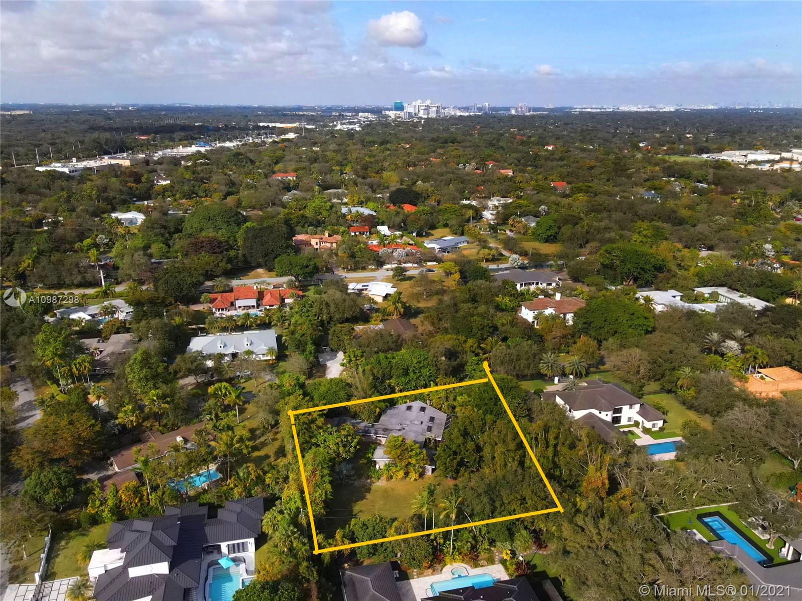 Unique, move-in ready mid-century home designed by renowned architect, Alfred Browning Parker. Located on a quiet, tree-lined street in a prime Pinecrest neighborhood, close to Pinecrest Gardens & Cultural Arts Center. Extensive use of natural stone and wood throughout. Interior features include open layout, vaulted, beamed ceilings, original onyx rock fireplace and custom built-ins. Expansive outdoor screened porch & terrace overlooking the ultra-private, lush tropical garden that surrounds the home. Total square ft size 4,513, adjusted square ft size 2,826 according to Miami Dade tax records. House has central AC. Excellent opportunity to remodel & expand. Very large 38,768 lot size. Close to A+ public & private schools