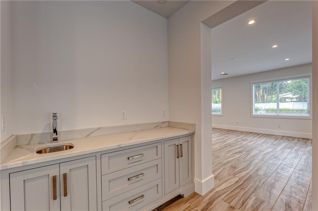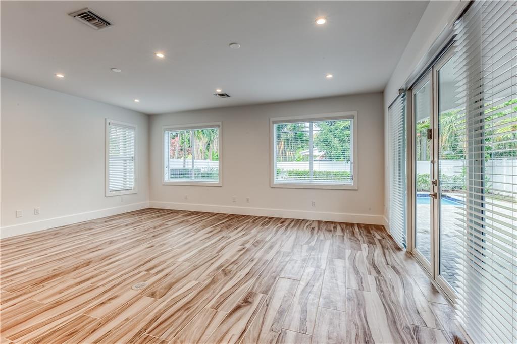 This remarkable newly built home is located in the Rio Vista neighborhood next to downtown Fort Lauderdale. Full of century-old oak trees and peaceful streets, the community offers South Florida living at its finest. This 5-bedroom, 5.5-bath home provides a beautiful, modern aesthetic — featuring porcelain tile, wide plank wood flooring, and clean, contemporary finishes. Its floor plan is perfect for families, including a spacious master upstairs as well as three other bedrooms and bathrooms. The main floor features a spacious, sweeping layout with expansive windows, a living room plus large family room, porch, guest suite and two-car garage. Completing the home is the spectacular all-white kitchen, which includes gorgeous quartz countertops, Viking appliances and custom shaker cabinets.