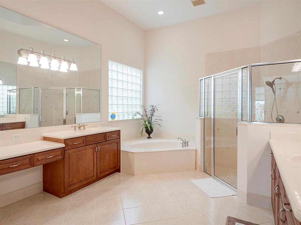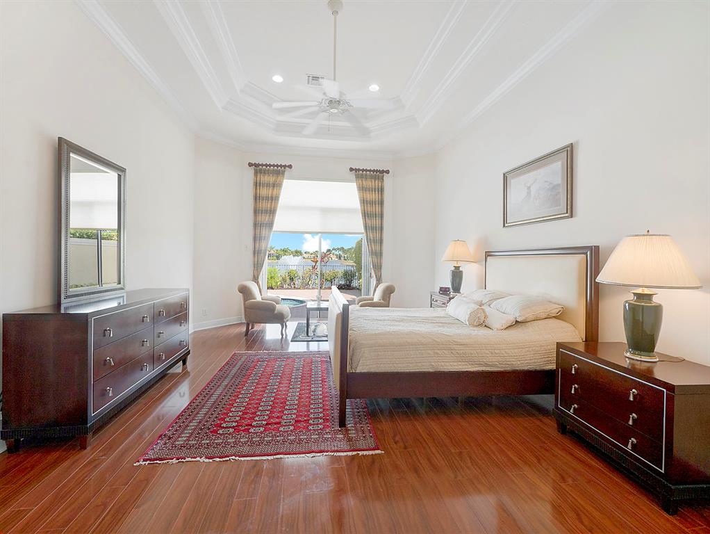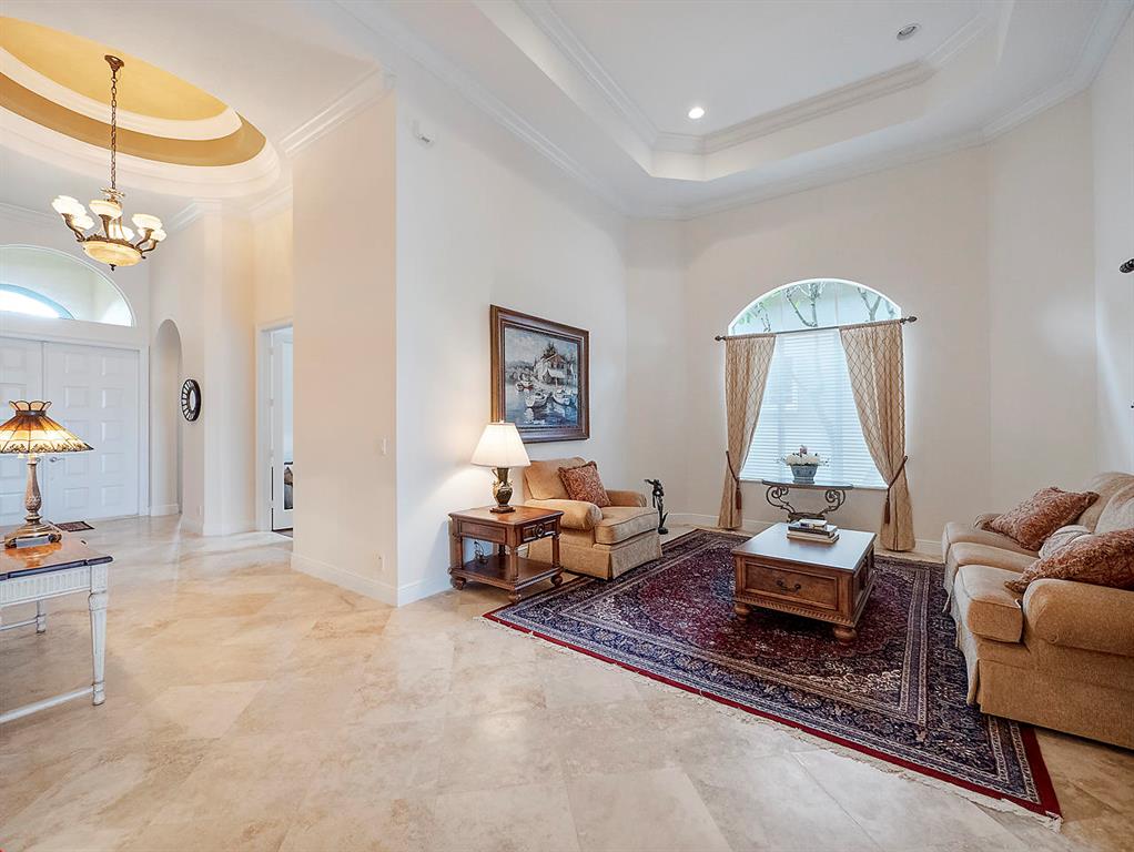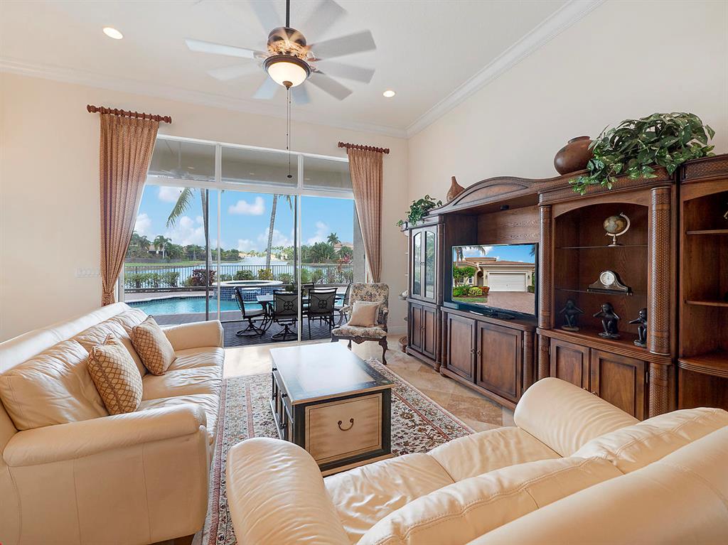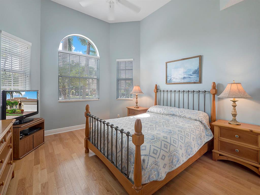 Wake to the Sunlight sparkling on the glorious water view. This is arguably one of the best water views in Ibis! With marble floors, 3 bedrooms, 3 baths, den & bonus room you have it all! Well maintained by the original owner this home shows like new. Den & 1 bedroom has woodlike floors while 1 bedroom has wood floors & 1 bedroom & the bonus room have carpet. Multiple niches, coffered ceilings (some with triple crown molding) add to the elegance of this home. Clear French Doors lead to the den which share a Jack & Jill bath. Double doors also lead to the Owner's Suite which includes double walk in closets & sinks. Sliding glass doors give a fabulous view of the water. The garage, which includes golf cart storage has an epoxy floor. Accordion shutters protect the home during hurricanes.