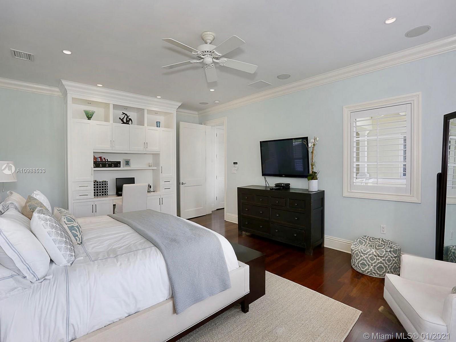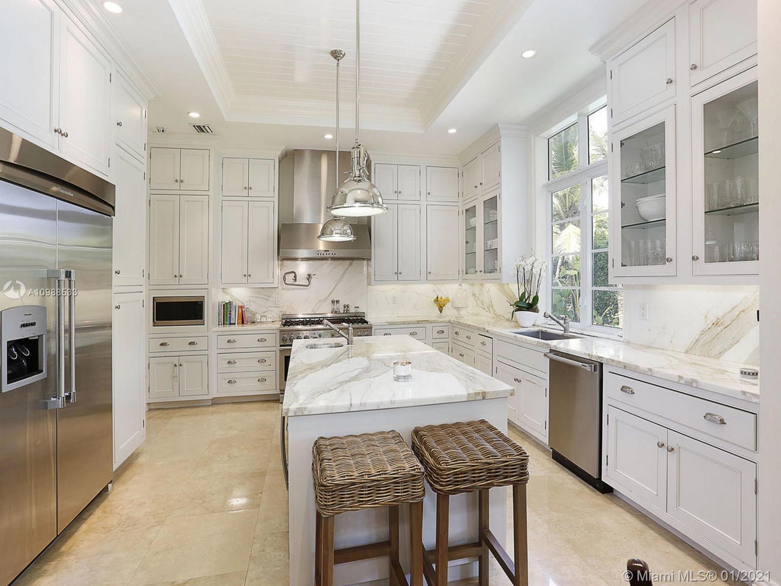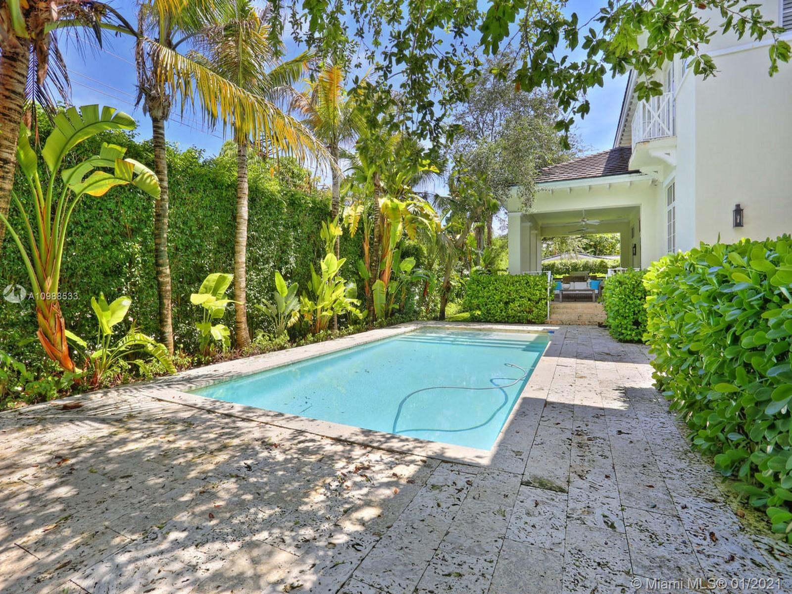 This stunning 5000+ sf island style estate is Gables by the Sea living at its finest. Custom built in 2008, the 5-bed, 5.5-bath, 2-story home features stone floors downstairs, hardwood floors upstairs, high coffered ceilings, crown moldings, and exquisite detailing throughout. 1st floor is an entertainer’s dream with foyer entry, formal living room, and an enormous chef’s kitchen with Thermador appliances, large prep and serving island, eat-in breakfast nook, seamless connection to family room, and French doors to the covered outdoor BBQ, living area, and bright, sunny pool. 2nd floor bedrooms are all en-suite and the huge master boasts spa-like bath, oversized WIC, and terrace overlooking pool. Located on quiet street with cul-de-sac, only 3 houses from Coral Bay Park.