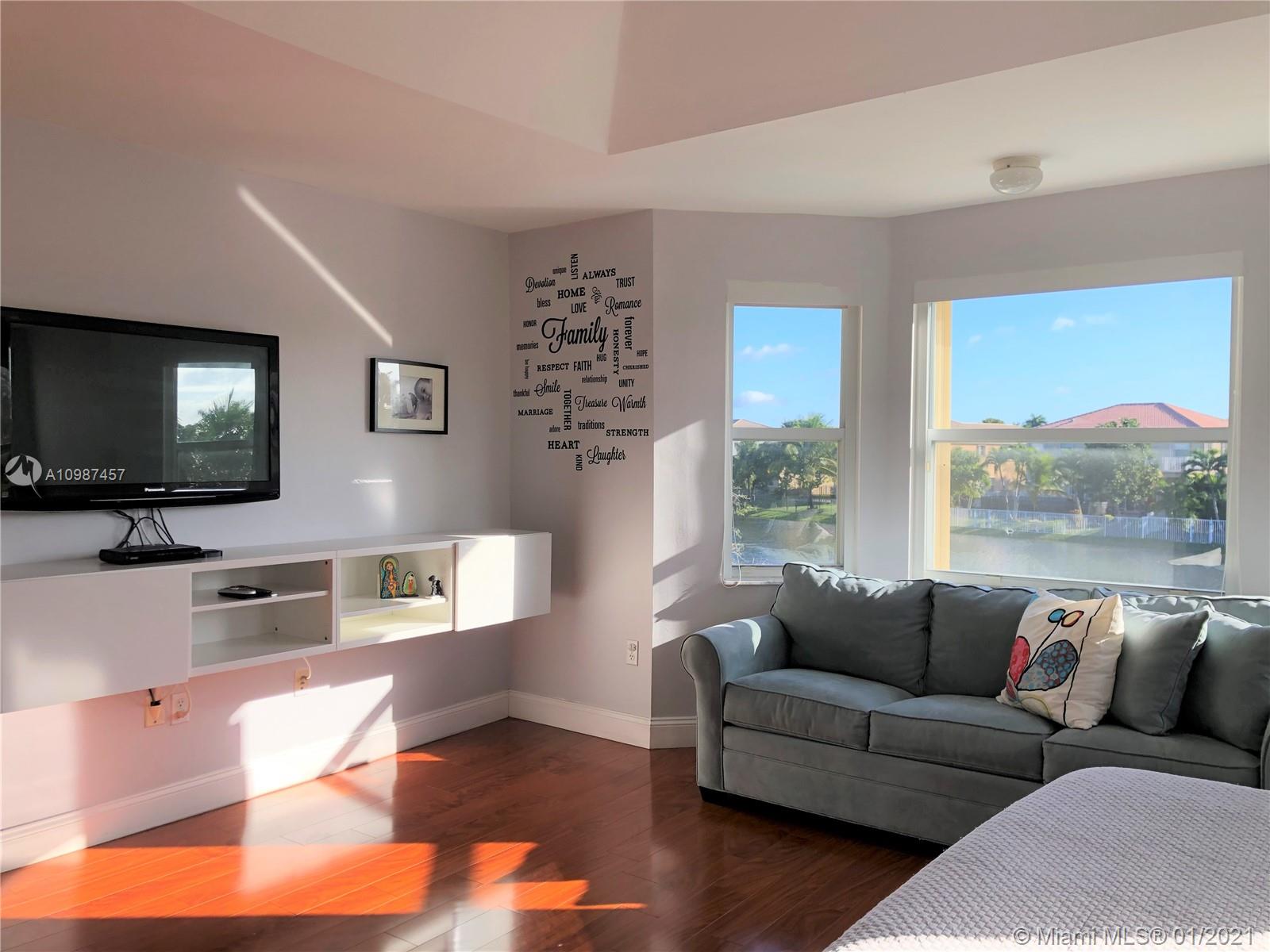 Spectacular 2-story home in a Resort Style Club House with first class amenities including, pools, hot tube, gym, pilates-party room, tennis and basketball courts, 24/7 guard gate and security patrol. Extremely gorgeous, brigth, open and modern home with pool & spa, surrounded by a peaceful lake view. Wood-lamite floors, trough-out. Nice white kitchen with top of the line KitchenAid appliances. Private Family area upstairs. Great schools near by Public and Charters. Live the dream and enjoy the peacefulness and tranquility your home can gift you. Tenant Occupied until Feb 10/2021