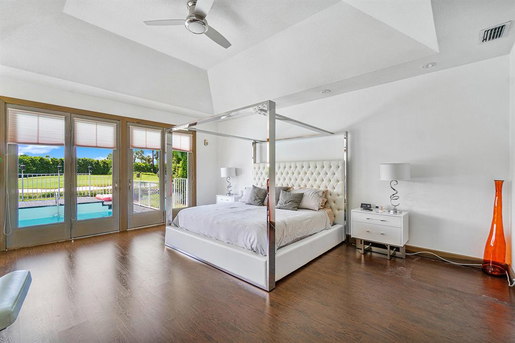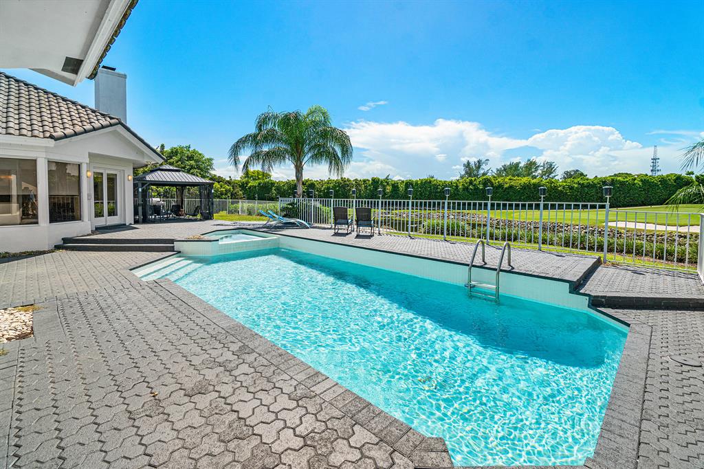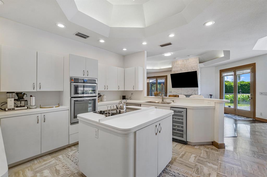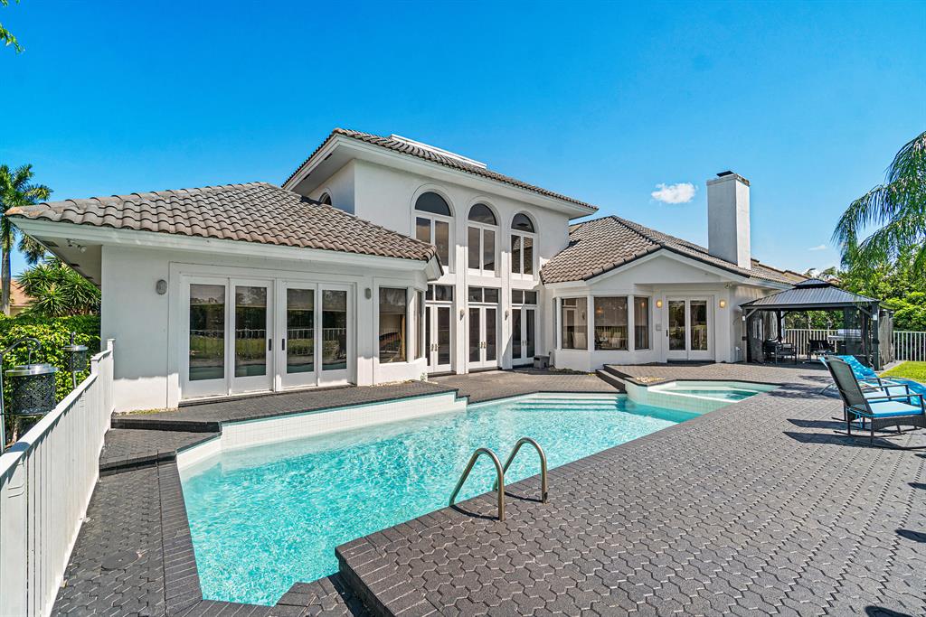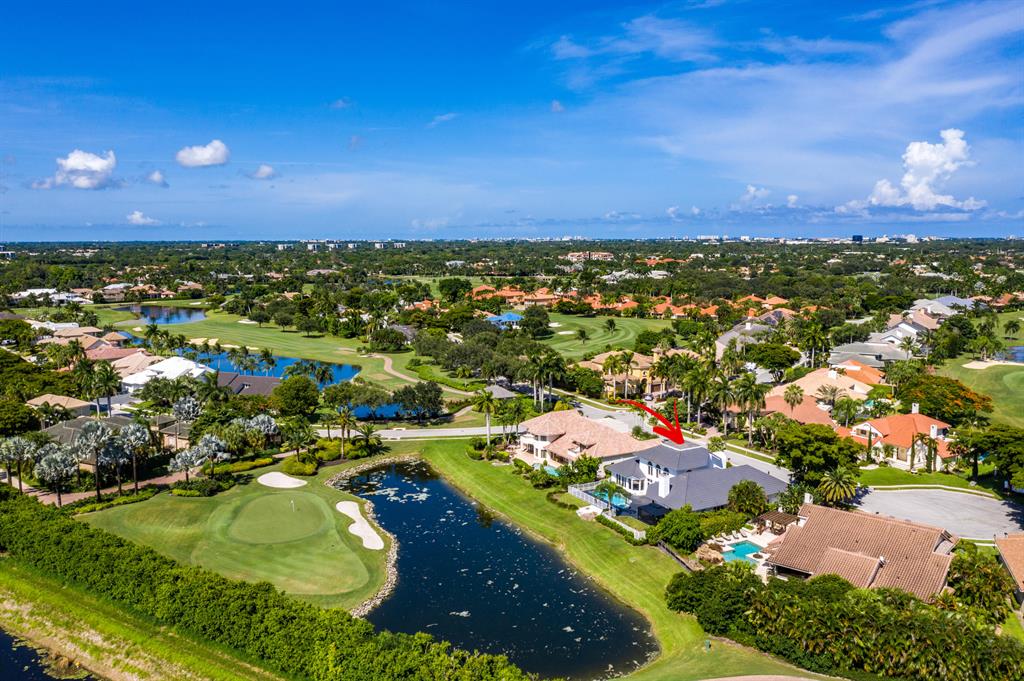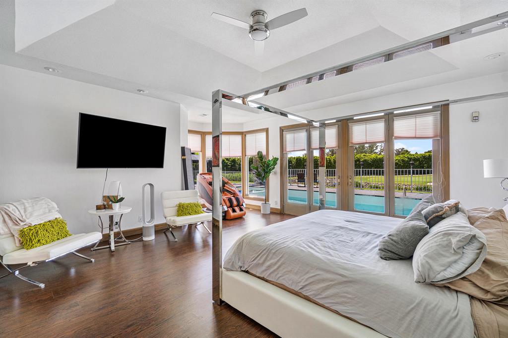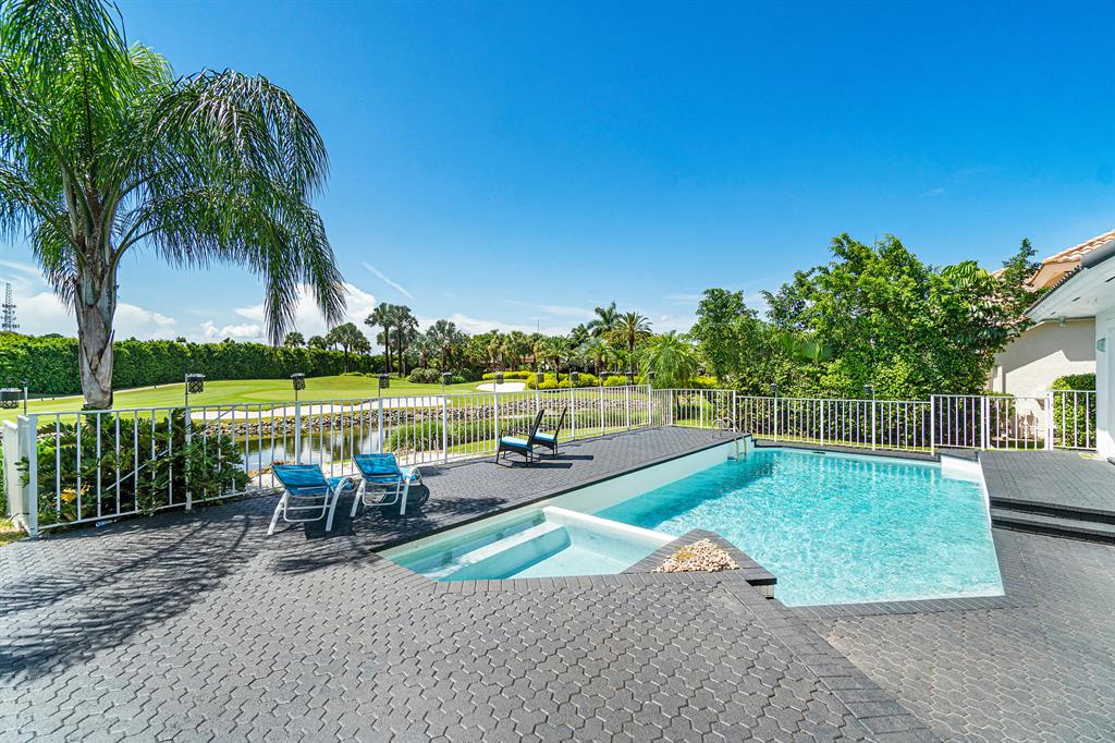 Rarely Available 1 Story, Renovated Contemporary home with spectacular golf and lake views. This home is situated on a private cul de sac street. A spacious floor plan with 3 bedrooms all with bathrooms ensuite. The generously sized office can easily be a convertible 4th bedroom with easy access to a full ball. One bedroom has been designed as a retreat with classic contemporary cedar Sauna and decorative nuances Formal Dining Room, sumptuous living room, contemporary kitchen and engineered wood floors are only some of the designer features. The contemporary flow features a 2nd floor viewing gallery. This beautifully designed home is perfect for relaxing or entertaining. The pool patio area is complete with an installed shaded lounging area overlooking the expansive gold and lake view