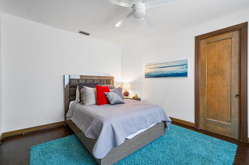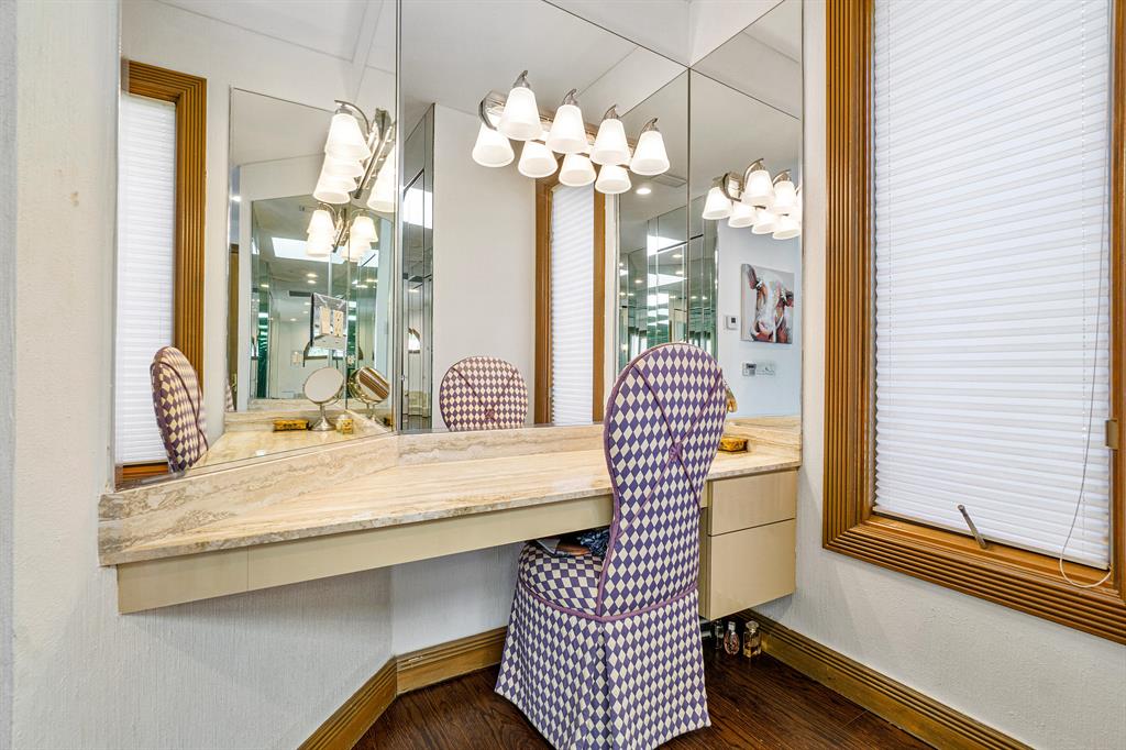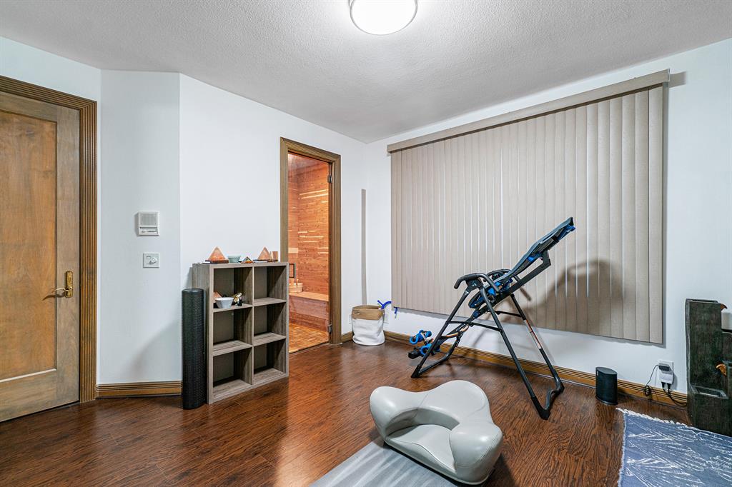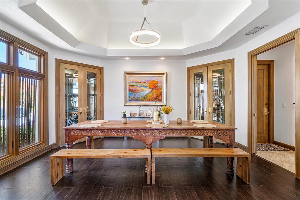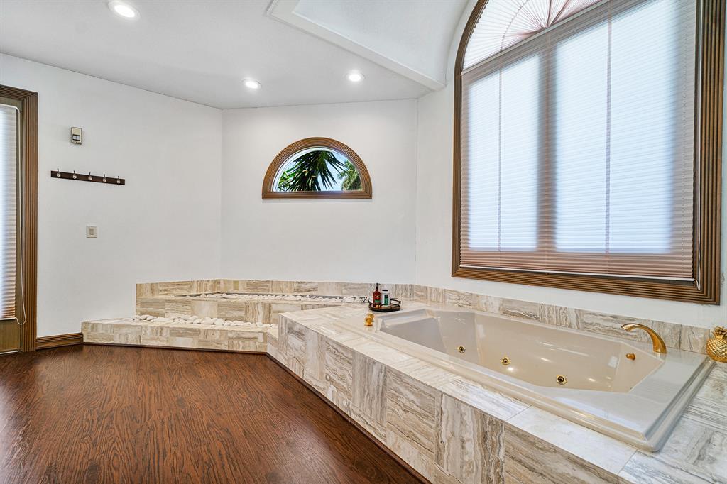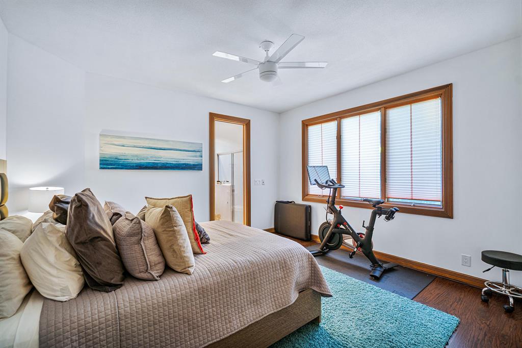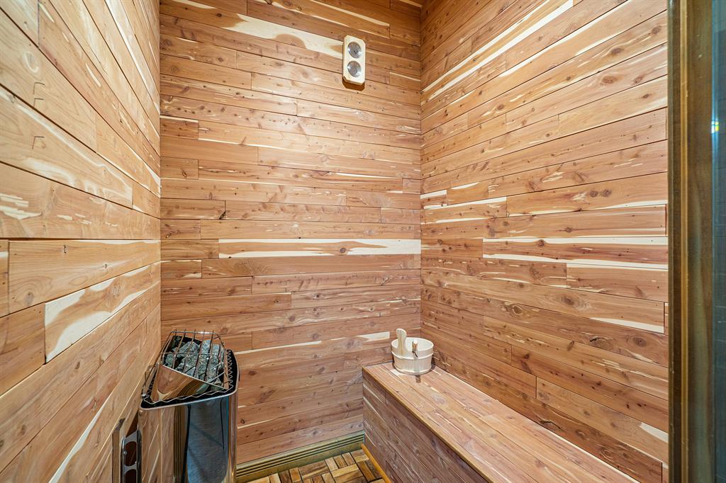 Rarely Available 1 Story, Renovated Contemporary home with spectacular golf and lake views. This home is situated on a private cul de sac street. A spacious floor plan with 3 bedrooms all with bathrooms ensuite. The generously sized office can easily be a convertible 4th bedroom with easy access to a full ball. One bedroom has been designed as a retreat with classic contemporary cedar Sauna and decorative nuances Formal Dining Room, sumptuous living room, contemporary kitchen and engineered wood floors are only some of the designer features. The contemporary flow features a 2nd floor viewing gallery. This beautifully designed home is perfect for relaxing or entertaining. The pool patio area is complete with an installed shaded lounging area overlooking the expansive gold and lake view