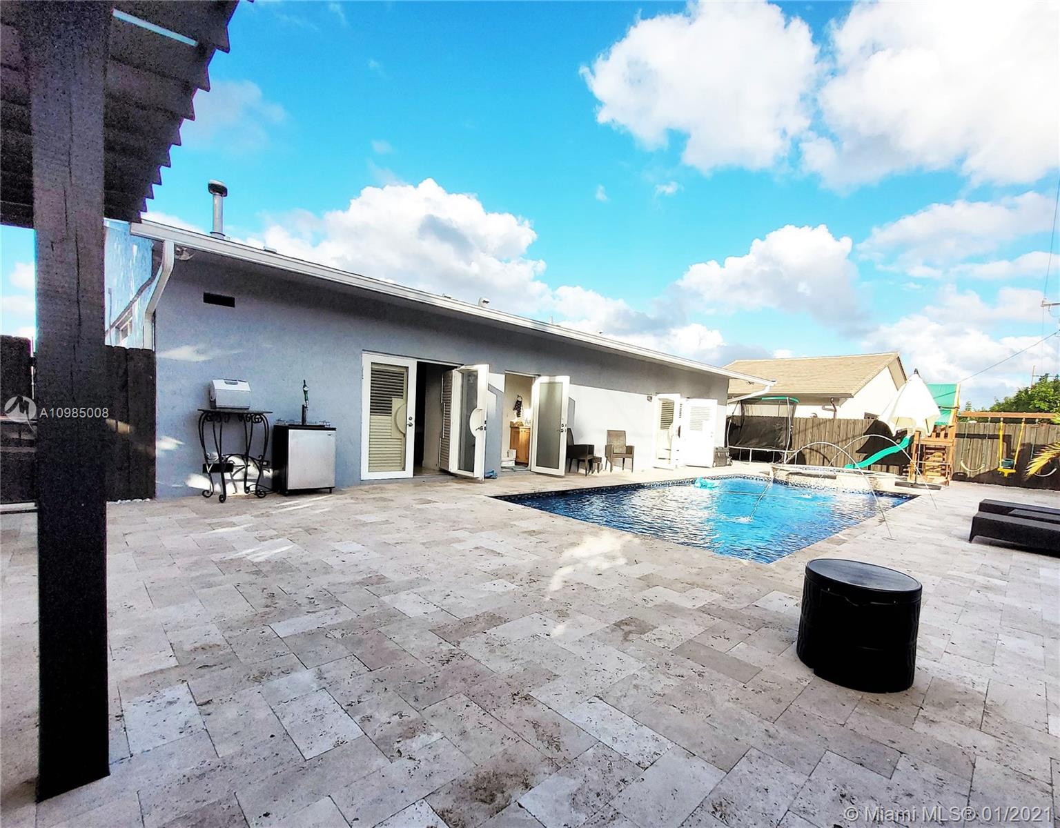 Move-in ready pool house, walking distance to Mizner Park. This updated spacious home offers an open layout, slit bedrooms floor plan with a 2 walk-in closet huge master bedroom. Double sink master bath has separate jet tub & shower. Control all outdoor features from your cellphone, fully automated travertine paved backyard perfect for entertainment with upgraded heated salt water pool/spa, outdoor kitchen and new sprinkler system. Brand new A/C system, newer washer and dryer. Garage, convenient half cabana bath, gas water heated, utility room, fenced side space with room for a boat and circular driveway are some of the features that makes this home just great.