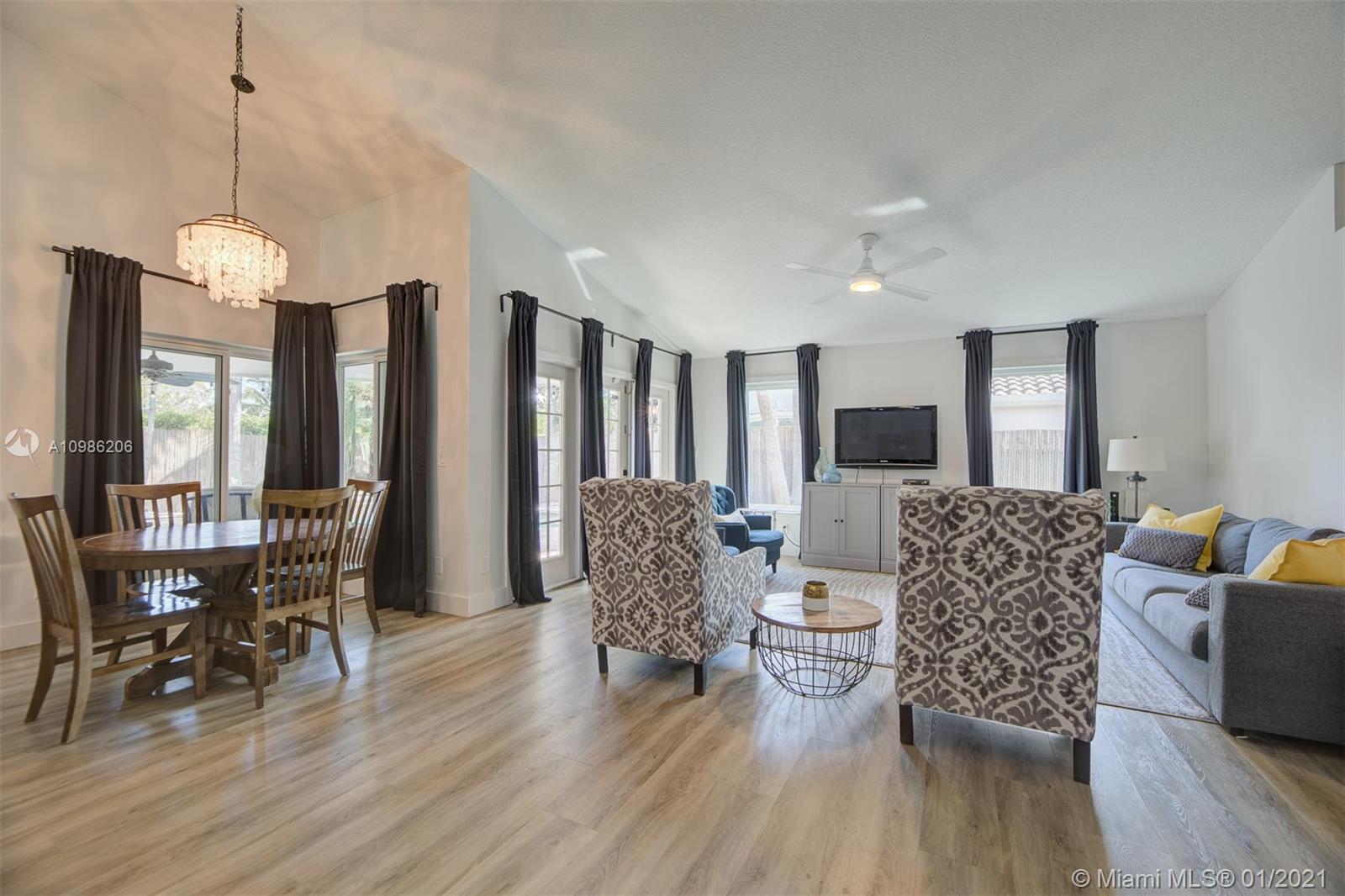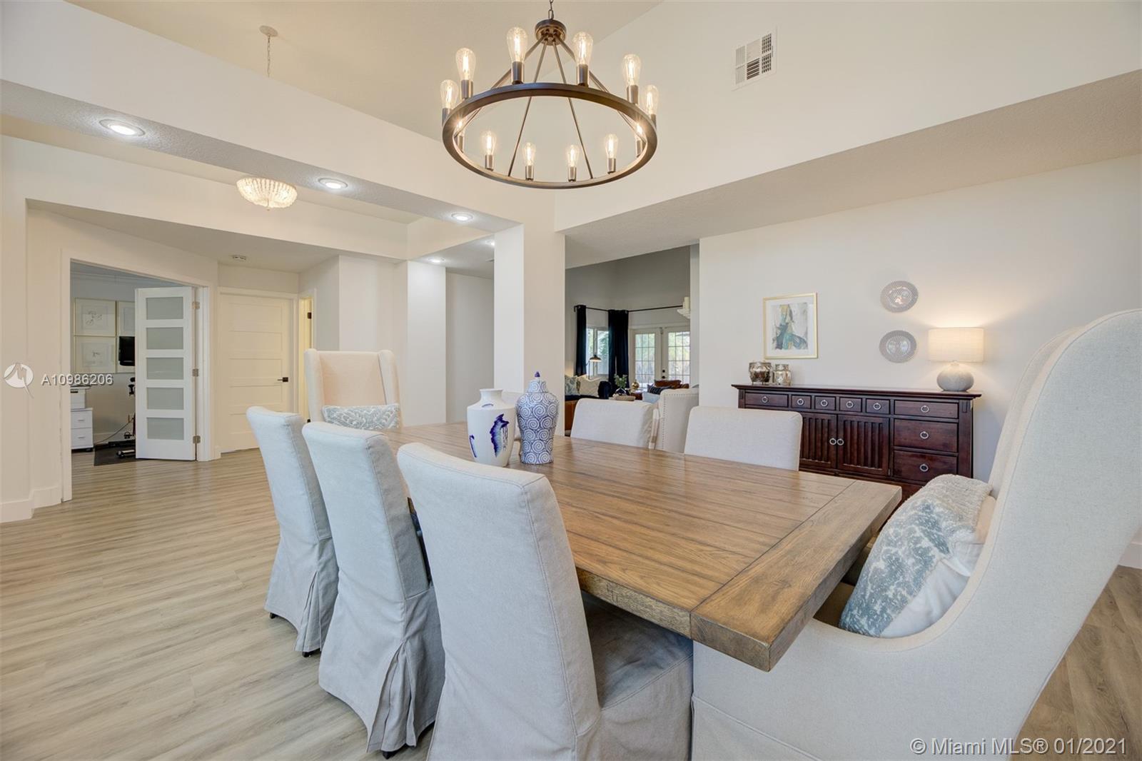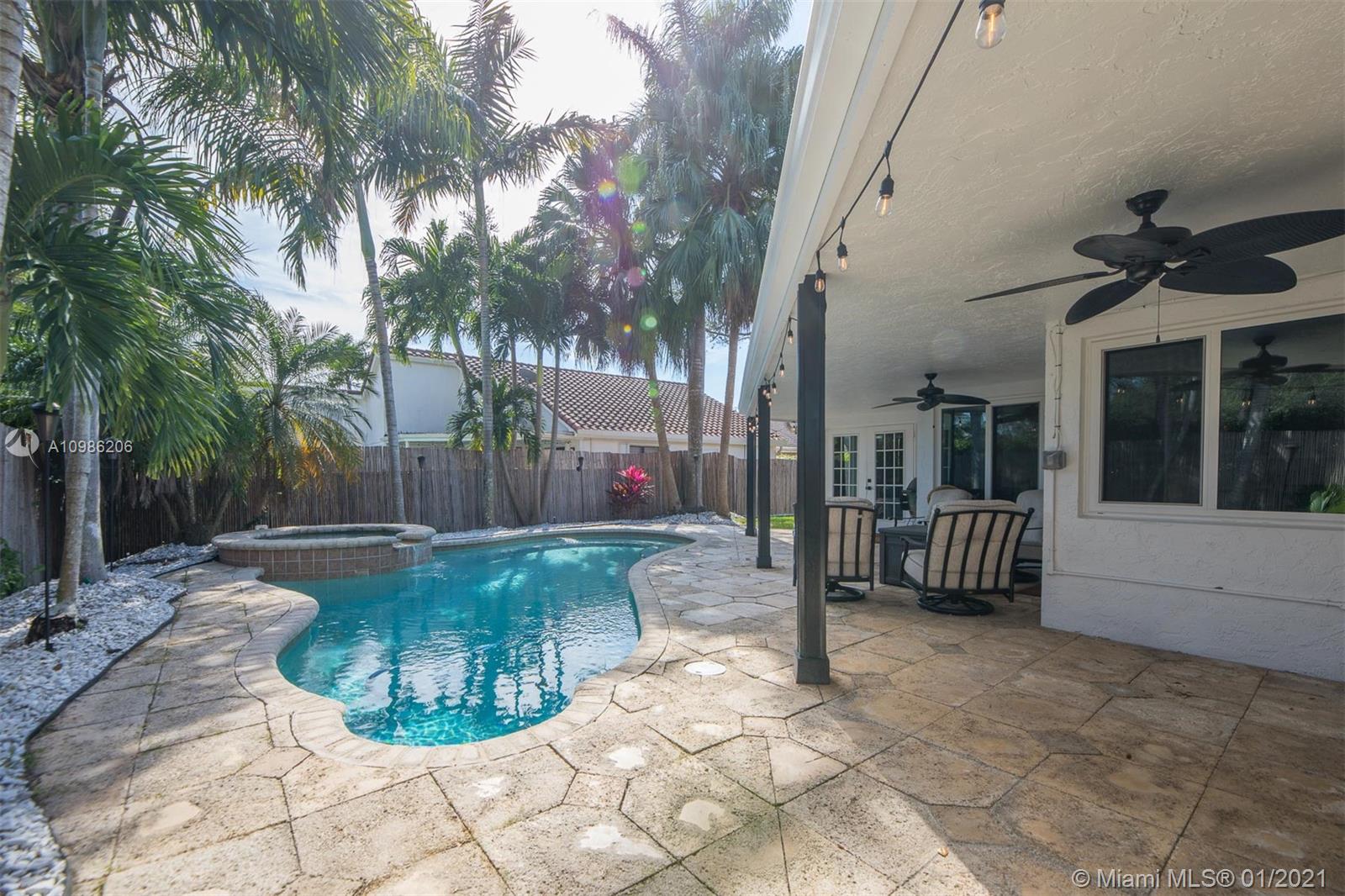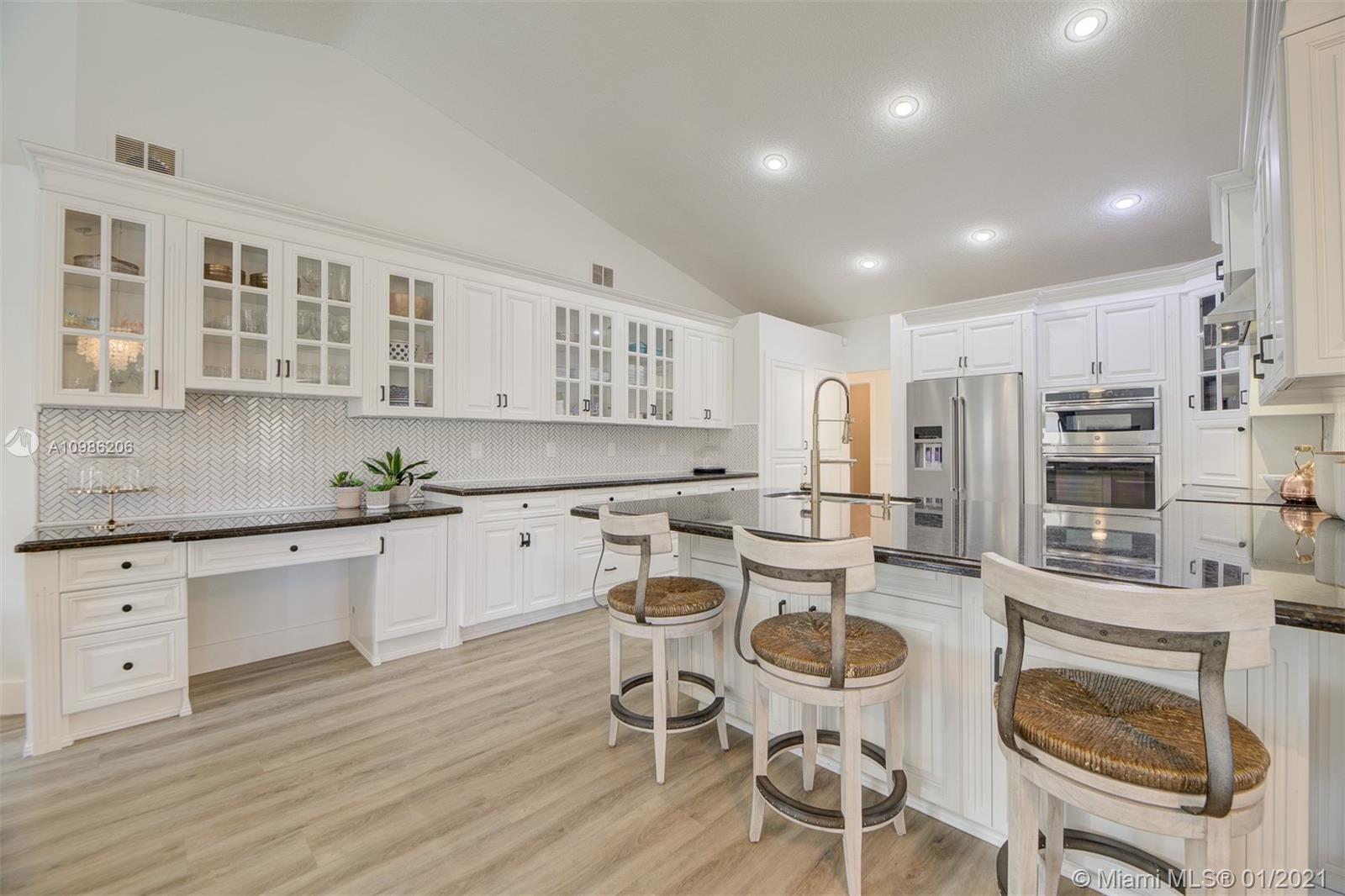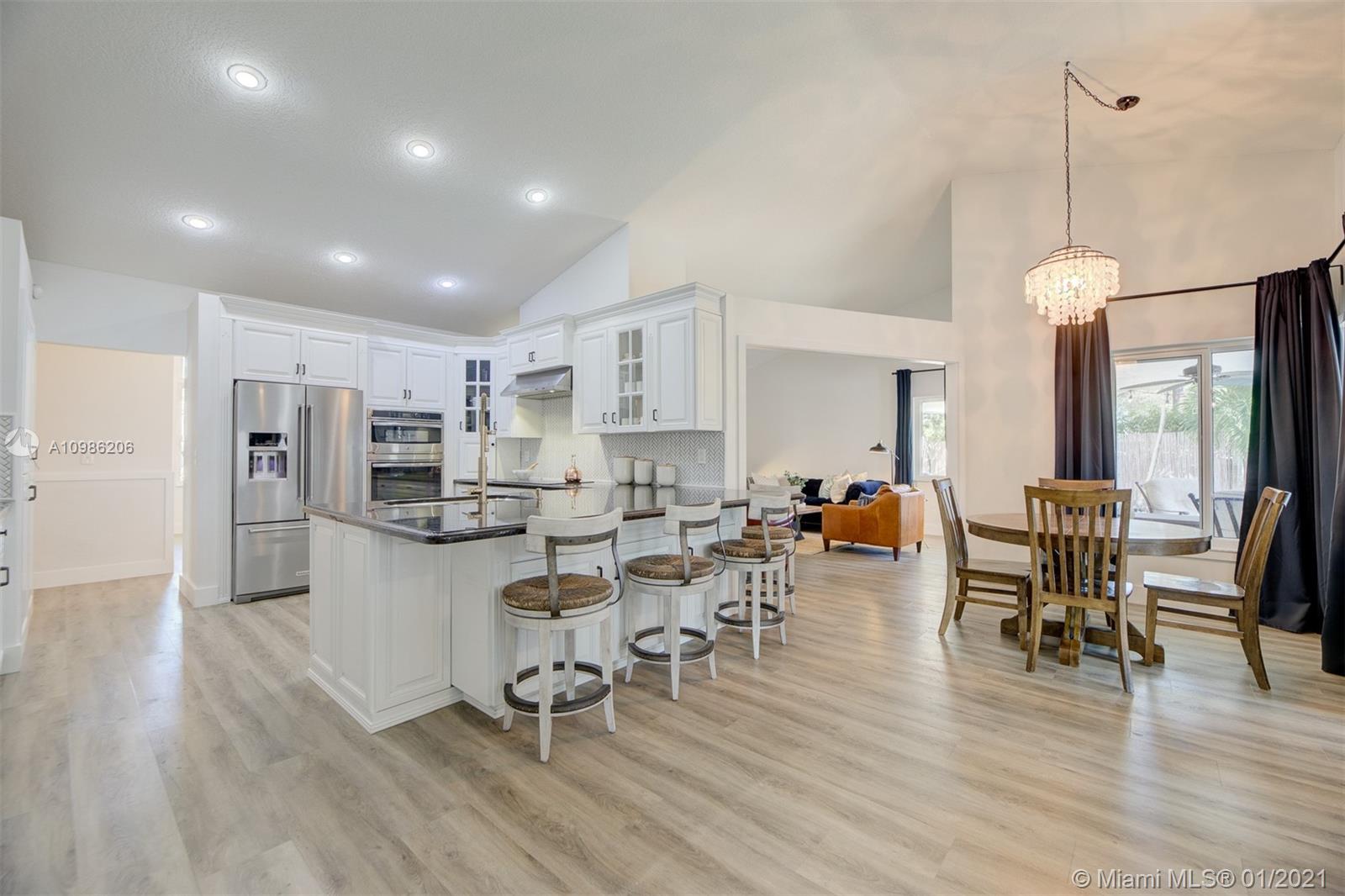 Fall in love with this breathtaking, immaculate designer 4 bedroom plus office/optional 5th bedroom picture perfect family home. Shows like a model, renovated from top to bottom, including removal of popcorn ceilings, new luxury vinyl flooring, enormous gourmet chefs kitchen with white cabinetry, gorgeous granite counter tops, custom backsplash, high-end stainless appliances with dramatic range-top hood. Remodeled spa-like master bathroom. Spacious with ample natural light, corner lot, tropical backyard oasis with sparkling pool & covered patio; Florida living at its finest. Roof 2007, AC 2019, Freshly painted interior/exterior, elegant modern baseboards & chair rail. Gorgeous new landscaping, A-Rated Davie Schools, close to airports, parks, shops & world famous HardRock hotel. A MUST SEE!