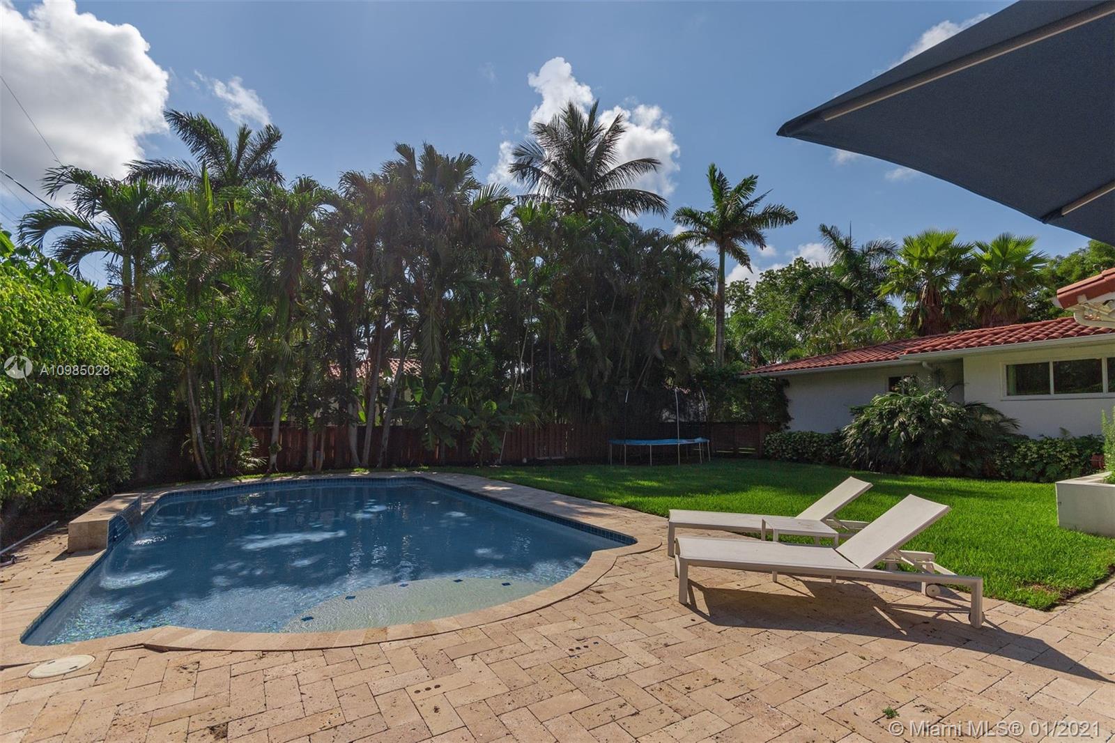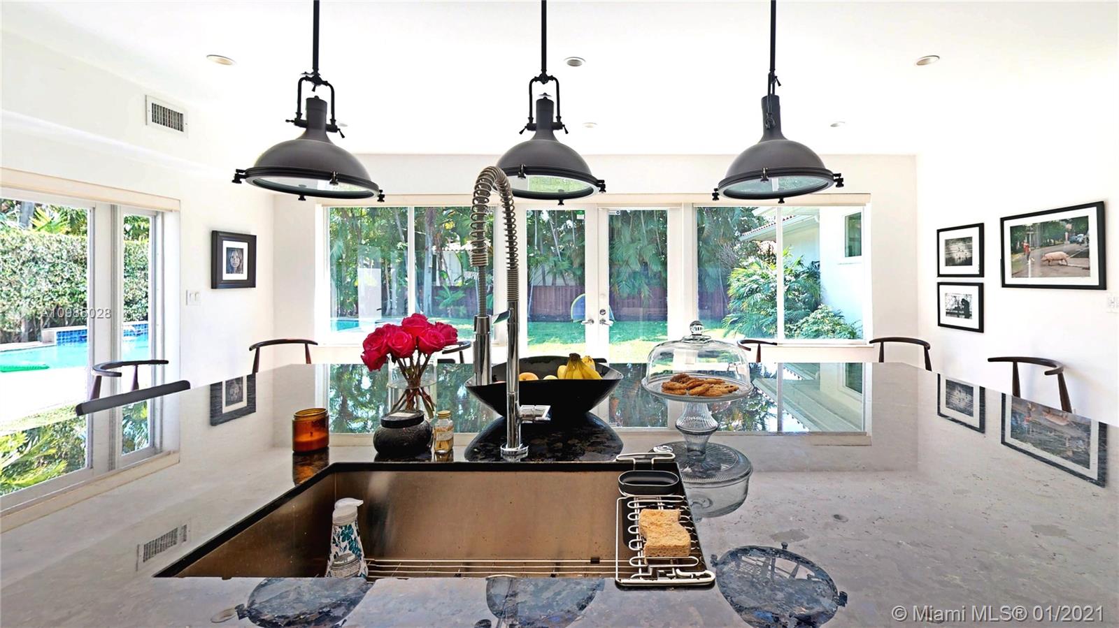 Fabulous, bright 4 bedroom 4 bath family home on GRAND CONCOURSE in Miami Shores. Playroom and media room are in addition to the 4 bedrooms. One car garage plus maids quarters with full bath. Beautiful, private fenced yard with heated pool, patio and lawn. Living room with wood burning fireplace, big dining room which opens to a huge new eat-in kitchen overlooking the garden. This kitchen is the focal point of this house. Marble floors in the living spaces and wood floors on the bedroom wing of the house. Impact windows and doors, updated plumbing and electric. Walk to the golf course, country club, water park, library, downtown and award winning rec center filled with kids activities. Minutes from Country Day and other excellent schools. Move-in condition.