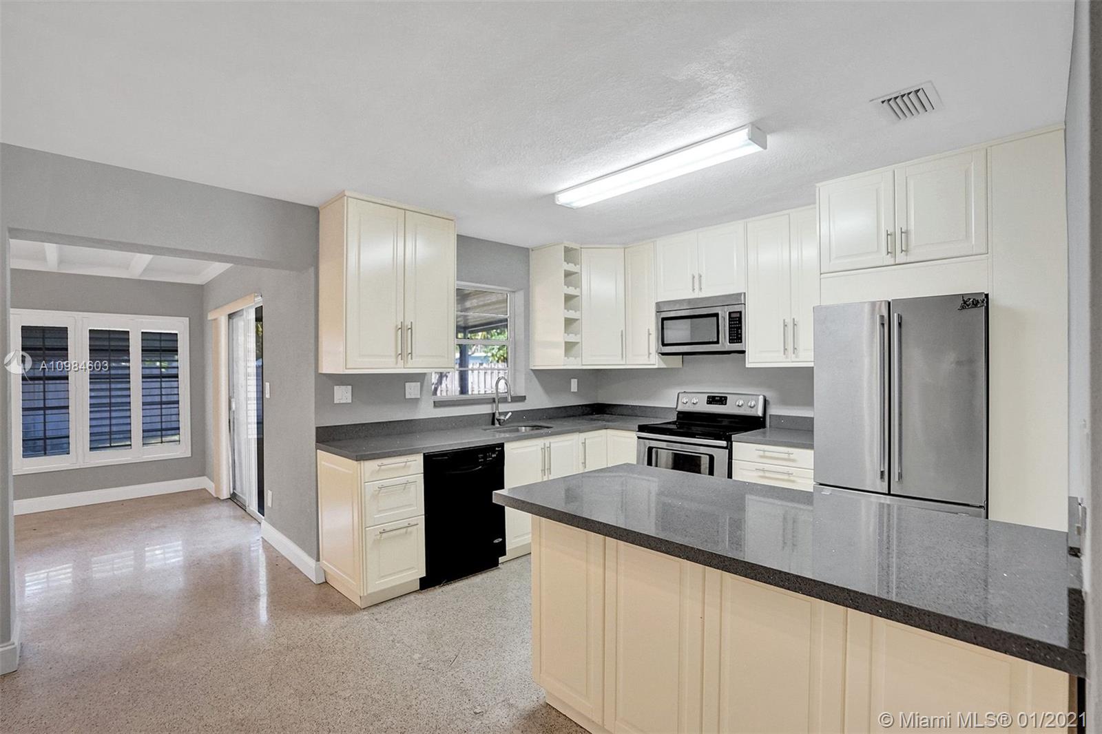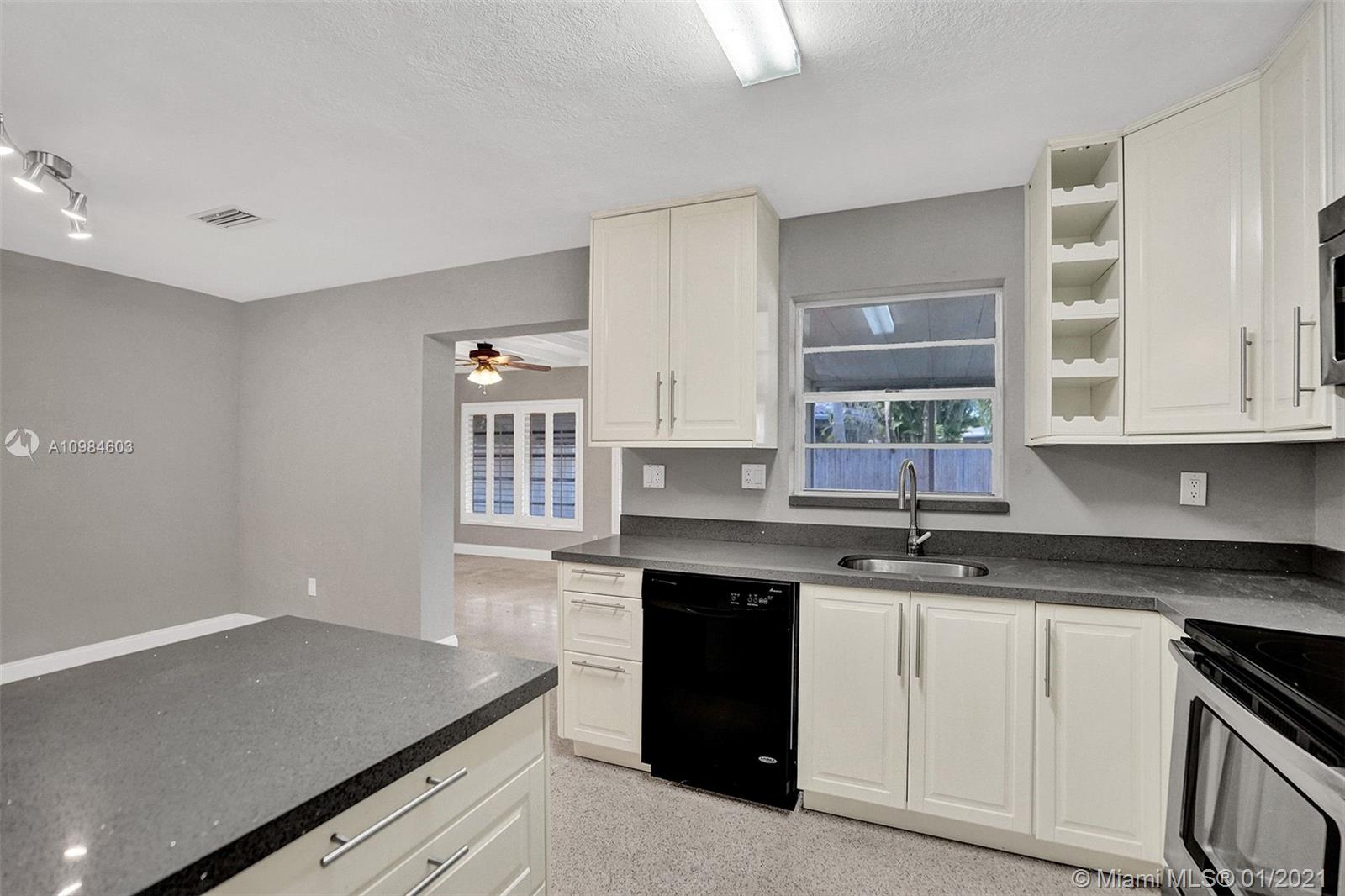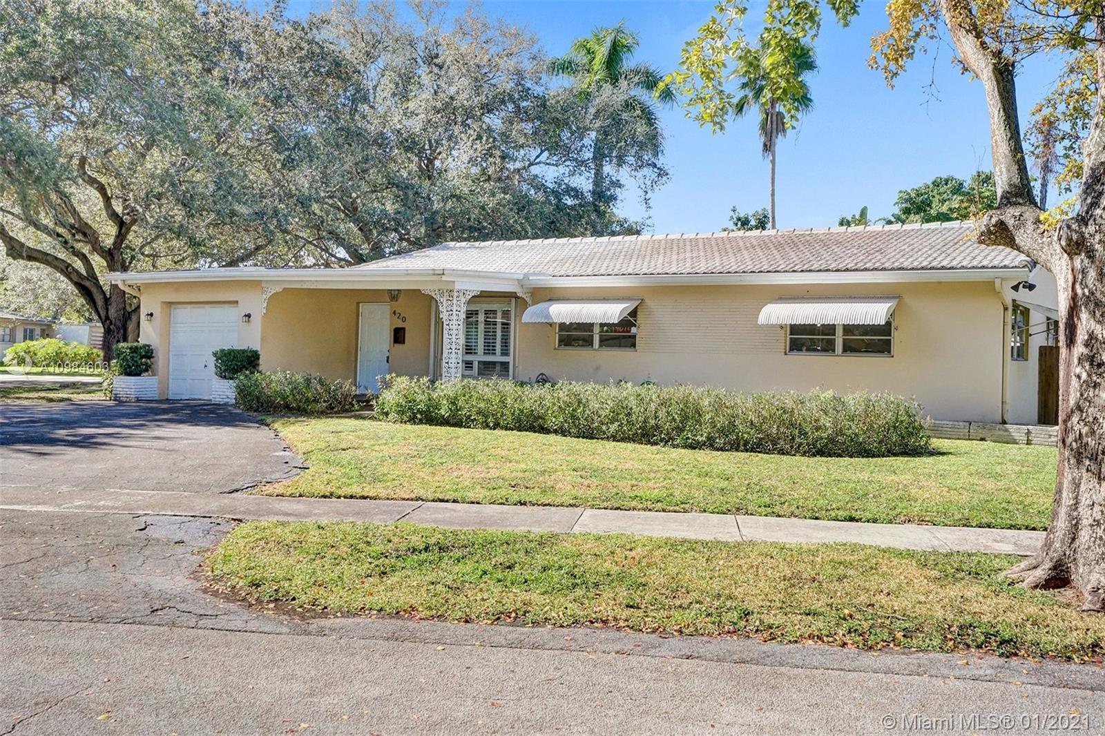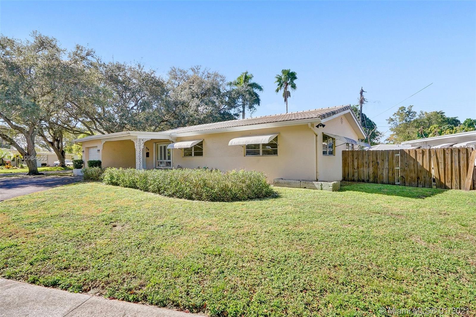 LIFETIME HOME IN A BEAUTIFUL SETTING! Corner lot home in LAWN ACRES…which is one of the best kept secrets in Hollywood. Lawn Acres is a beautiful area just west of Hollywood Hills with quiet streets of oak tree tunnels. Offering 3 bedrooms, 2 bathrooms, FLORIDA room, laundry room, screened-in lanai and 1 car garage. Privileged location with just under 10,000 SQFT. LOT, ample parking with a large circular driveway and ideal to landscape with ample green space. This beauty has terrazzo floors, new 6 inch baseboards and pixel gray walls with white trim throughout the house. The kitchen has been updated with white cabinets, QUARTZ counter tops and stainless steel appliances. Great size master with backyard access. In addition, TILE ROOF and Venetians blinds. PERFECT MARRIAGE OF LAND AND HOUSE!