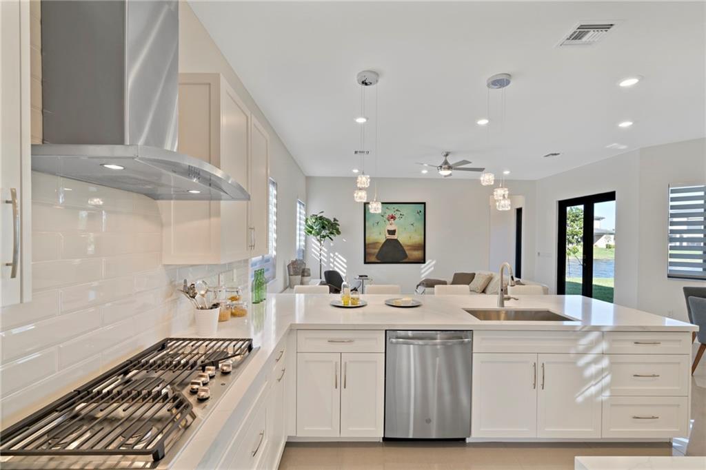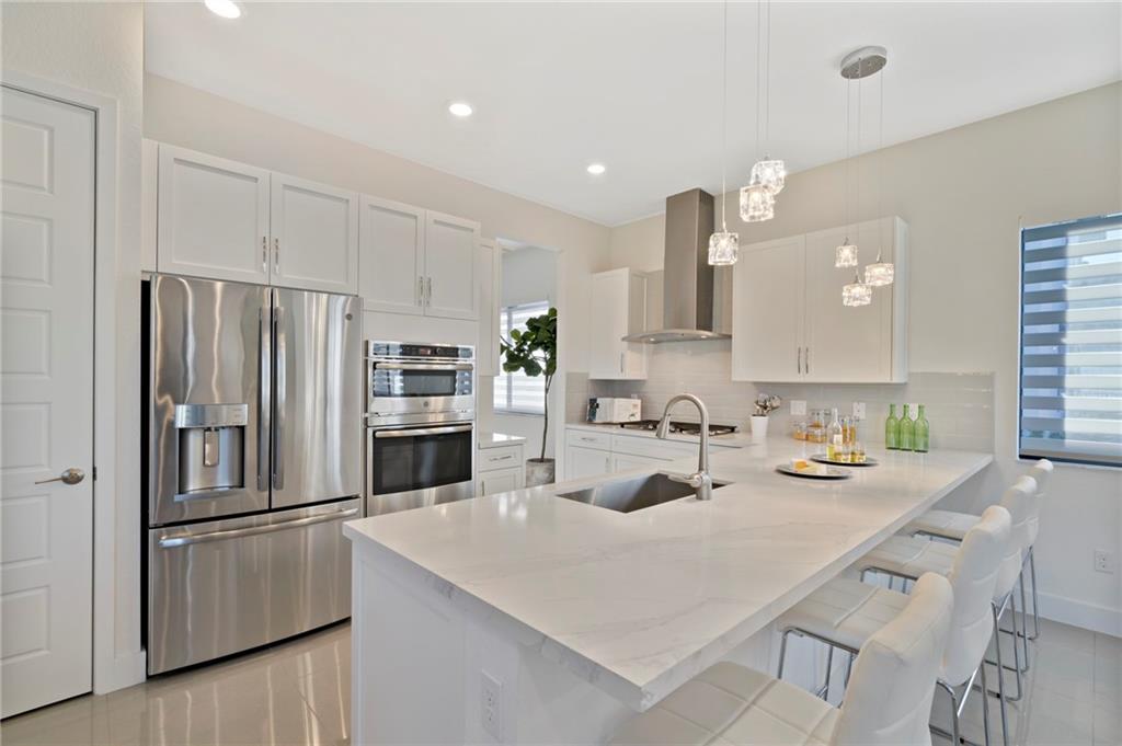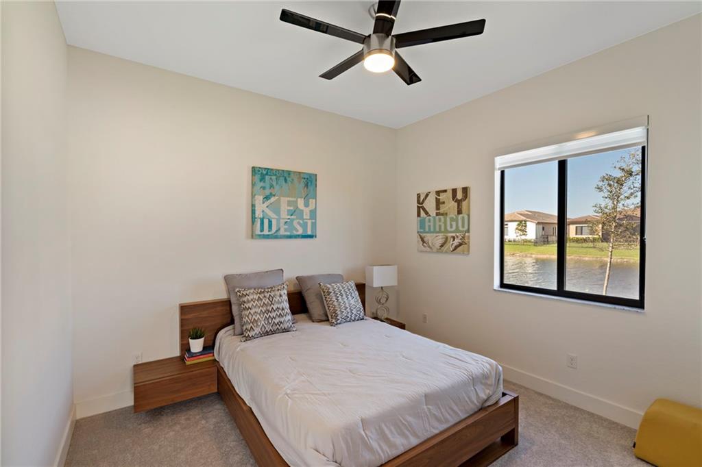 Presidential Collection: Contemporary 4 Bedroom 3 Bath 3 Car Garage One story Home with Lake View. Former model home. Private Triple Split floor plan. Modern Kitchen with 42" cabinets, soft close hinges, pantry, quartz counters, state of the art stainless steel appliances, covered patio, Move right in, ceiling fans throughout, zebra shades, impact doors and windows, and many community amenities. Furniture not included with the sale. Pictures and videos have the furniture shown for illustration purposes only.