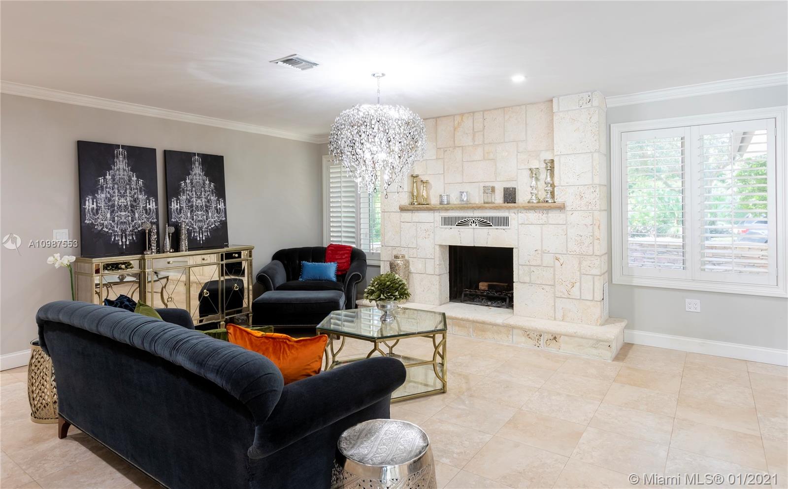 Located in the Village of Pinecrest. This captivating home sits on a tree lined lot that is just shy of an acre. 4 bedrooms with a office/den. Stunning kitchen with double oven adorned with subway tiles and a veggie sink in the island for the chef. Open floor concept, spacious family room with a wet bar for all your entertaining needs. Impact windows with plantation shutters. Gorgeous living-room with a Keystone fireplace that sprawls out to an expansive patio with electronic roll down screens. Enormous backyard with a pool and basketball court.
