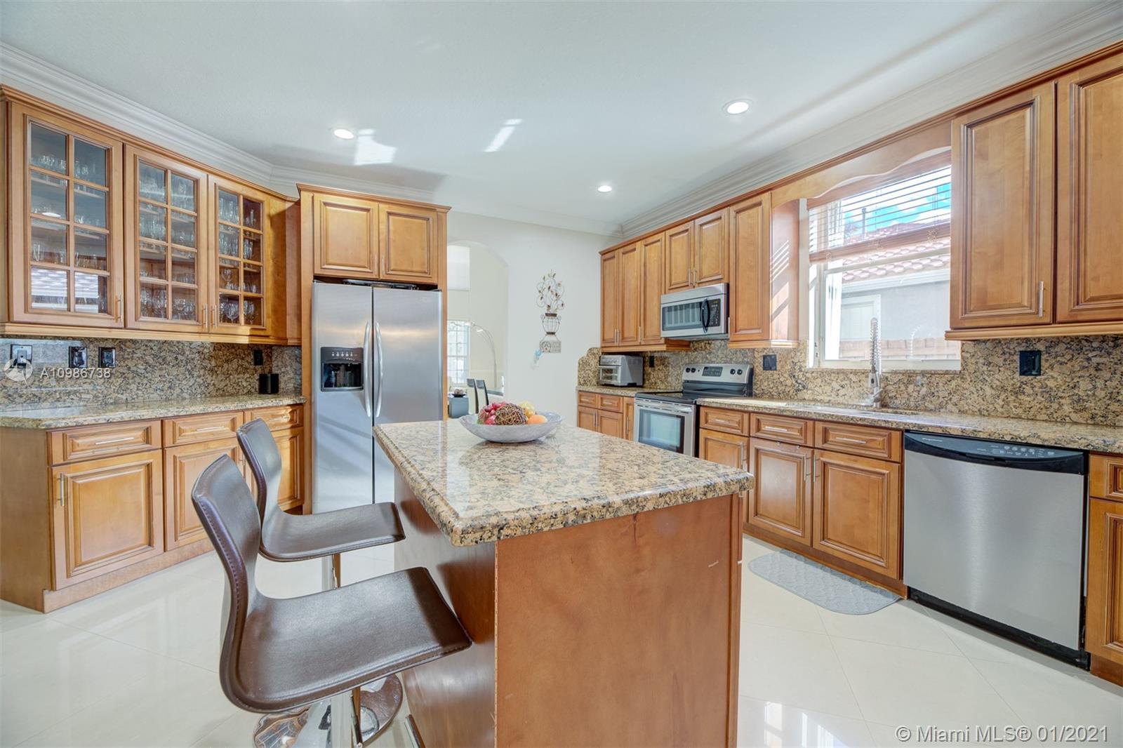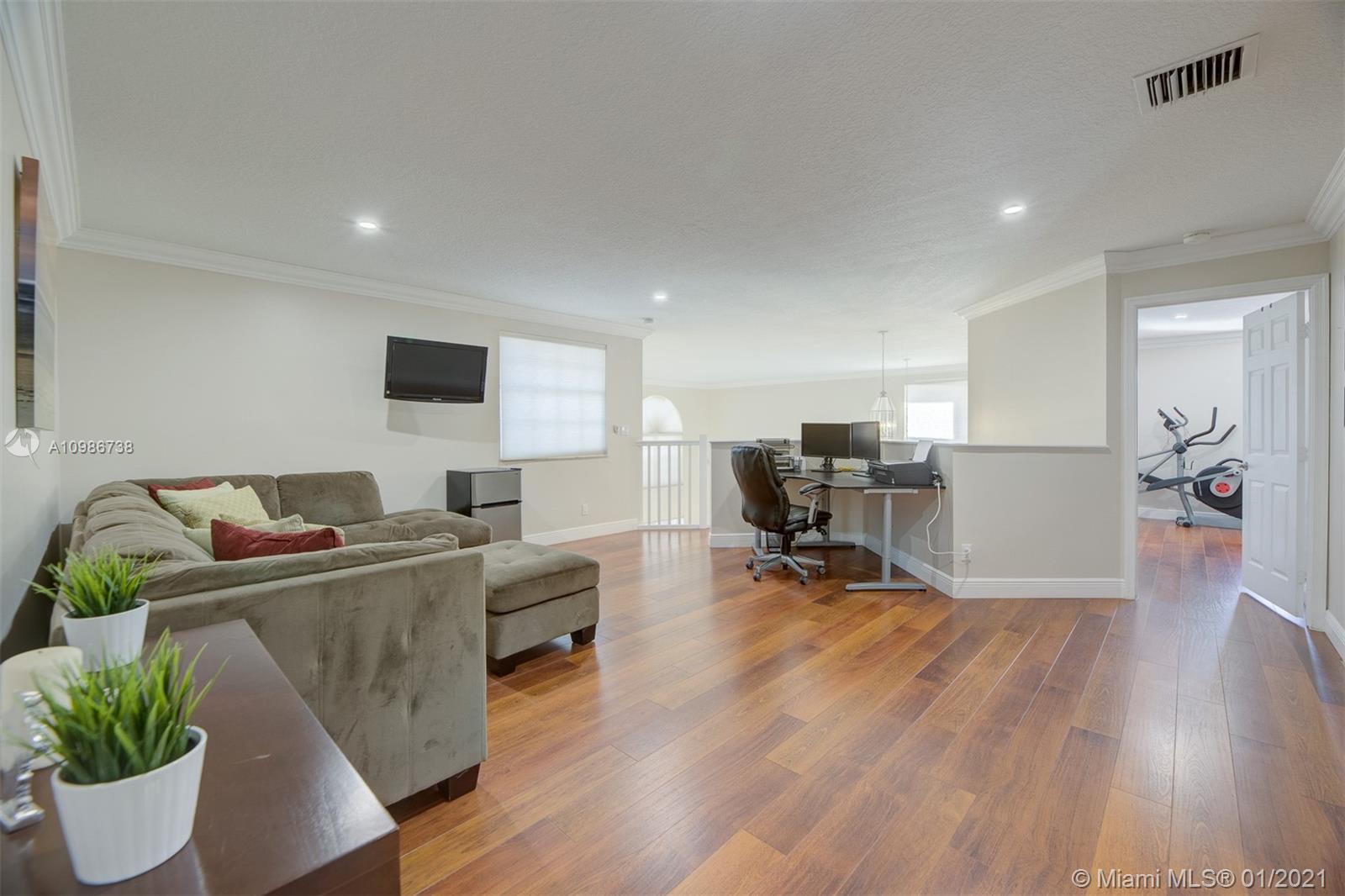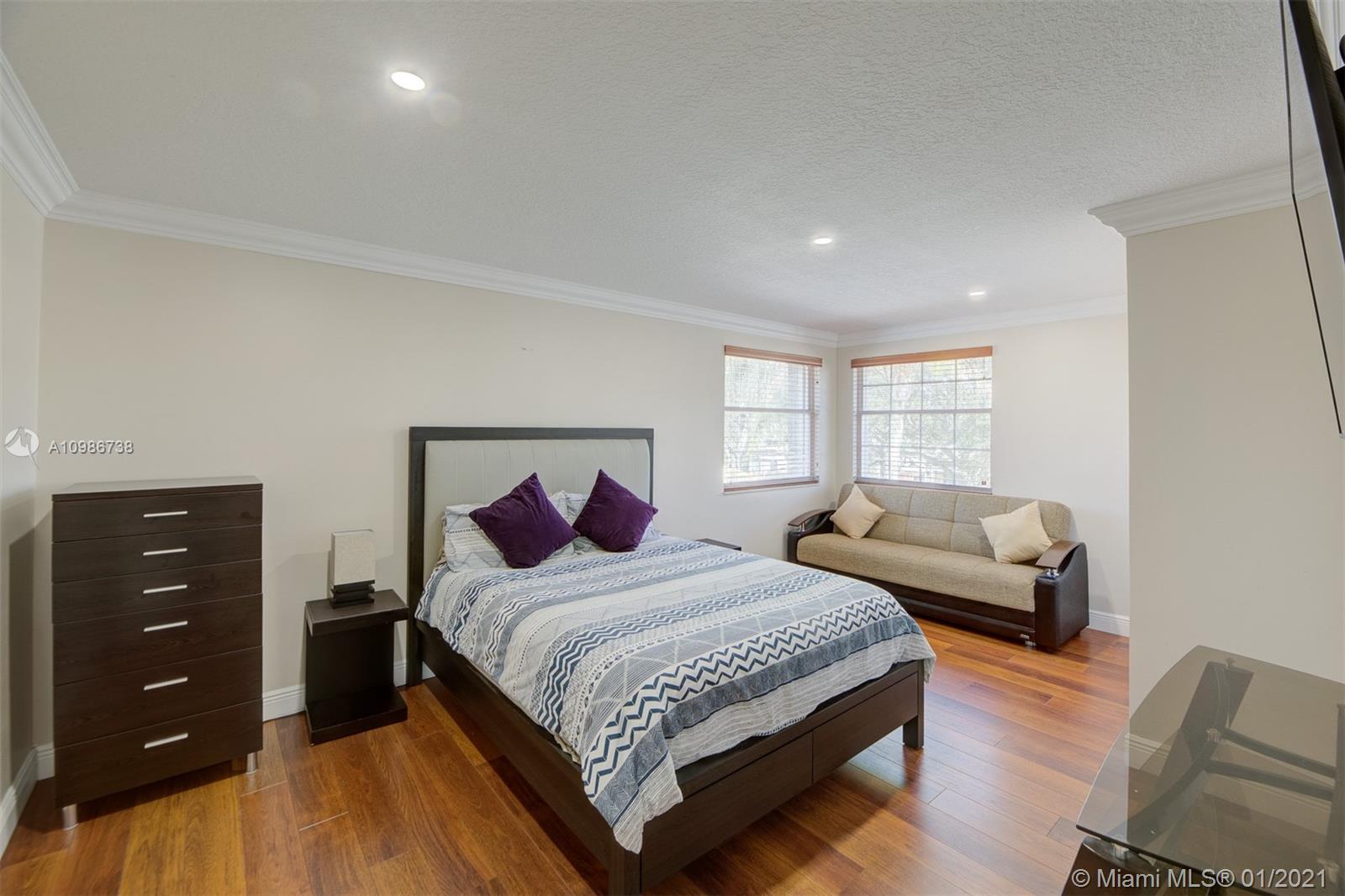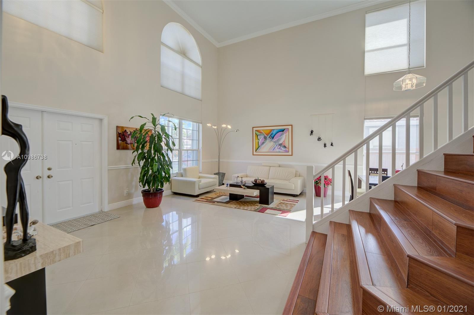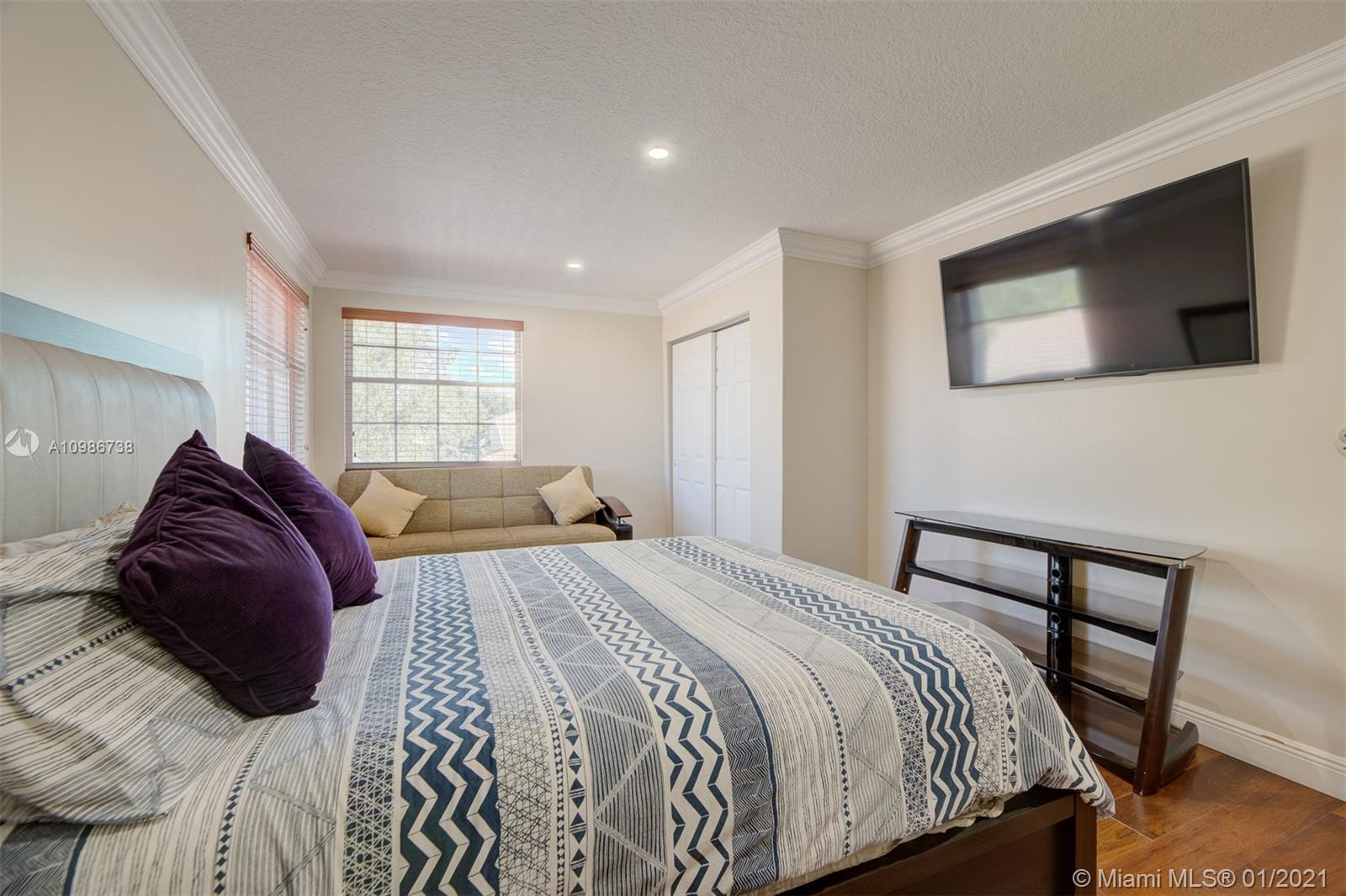Elegant Kingston model with pool in sought after Pembroke Falls*this upgraded home features 5 bedrooms, 3 1/2 baths + big loft upstairs that's great for multi-purpose use and three car garages * master bed downstairs, with large walk-in closet * porcelain tile downstairs & dark wood on 2nd floor & staircase*open kitchen granite counters & s.steel app, ample custom wood cabinetry and cooking island*high ceilings*new led lighting throughout the house*laundry room*expansive backyard with your own tiki hut and pool to enjoy the breeze and peaceful evenings*the home is ready for immediate occupancy* HOA fee includes internet, cable, alarm, clubhouse, gym, heated pool, lakes, dog park, tennis & basketball courts. centrally located, a+ school district.
