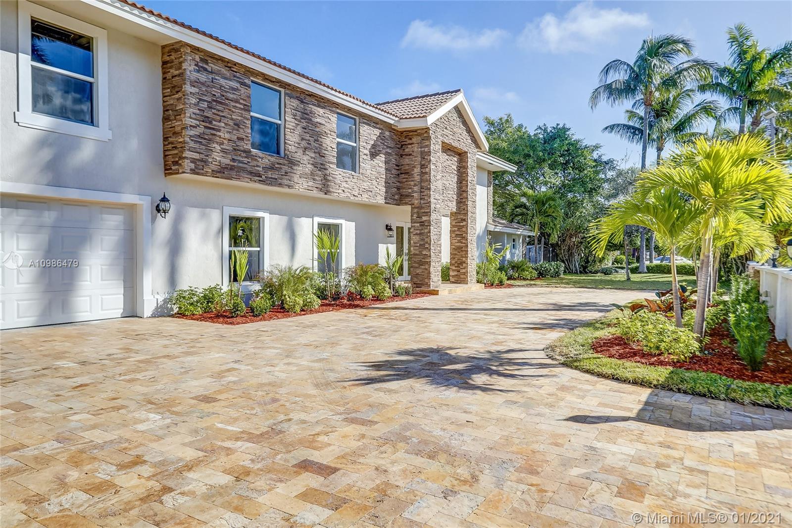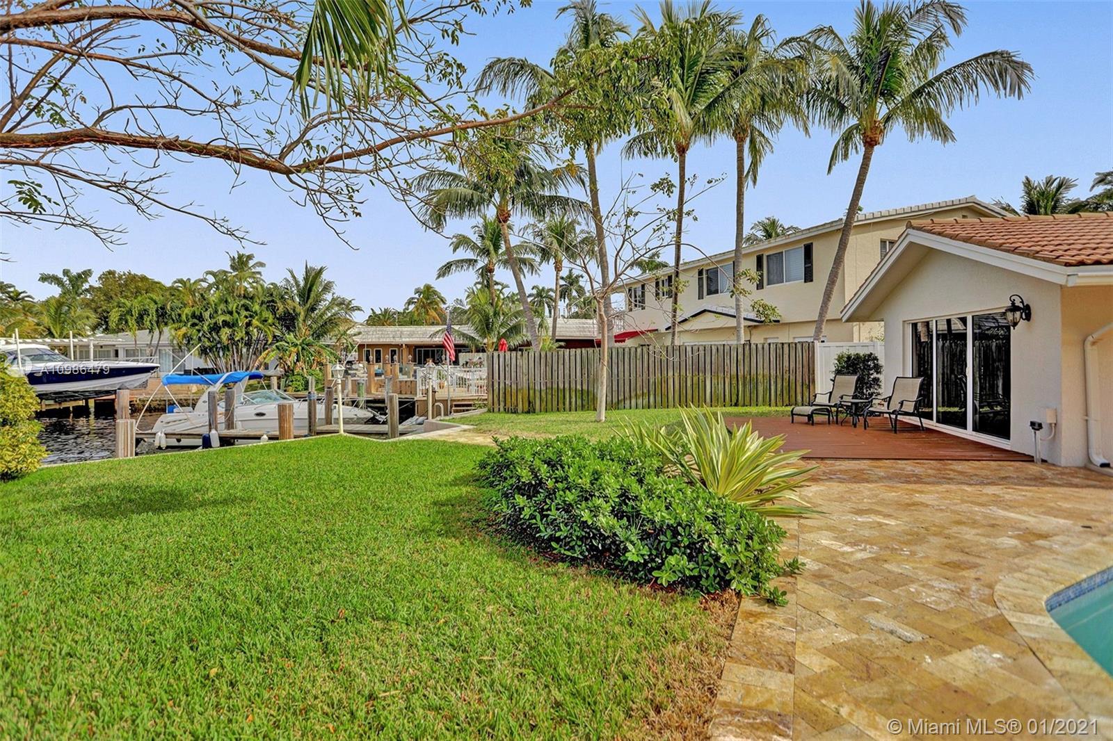 Tropical waterfront & lake views from this beautifully updated corner lot mansion in the coveted Lake Santa Barbara Shores area of Pompano Beach. This bright open concept 2-story pool home features abundant living space. Master suites both up & downstairs, each w/ private deck overlooking water. The huge chef's kitchen is fit for entertaining w/ 2 counter depth stainless refrigerators. Large driveway + oversized 2 car garage, spacious fenced-in patio w/ pool/spa, IMPACT windows & doors throughout, stone surround fireplace, private ELEVATOR, new professional landscaping & dockage for an approx 40ft boat. Zoned for A Rated McNab Elementary School. Northern Exposure for cool breezes. Minutes by boat to Hillsboro Inlet, a quick drive to Pompano Pier & dining, i95 & Ft. Lauderdale.