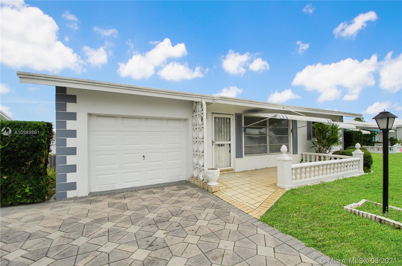 BACK ON THE MARKET! Beautiful 2/1+ 1 car garage. Located in a 55+ community, nicely remodeled with vinyl floors throughout, white kitchen cabinets with granite countertops, re-roof was done in 2013, central A/C unit from 2014, freshly painted, stainless steel kitchen appliances. Laundry room and storage cabinets inside the garage. Very peaceful neighborhood, very well located community. No land lease, association $232/month includes water/sewer, exterior and roof painting, free golf, courtesy bus, and a community pool. Must See! Previous file didn't go through due to buyer financing.