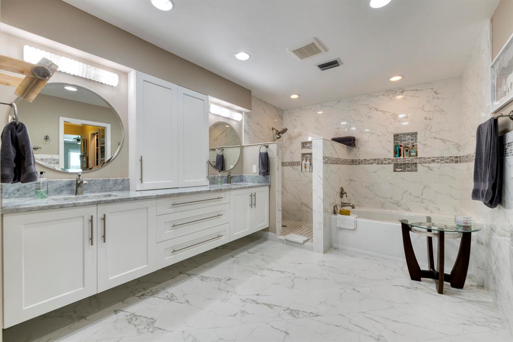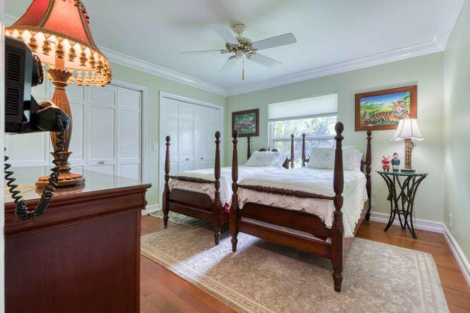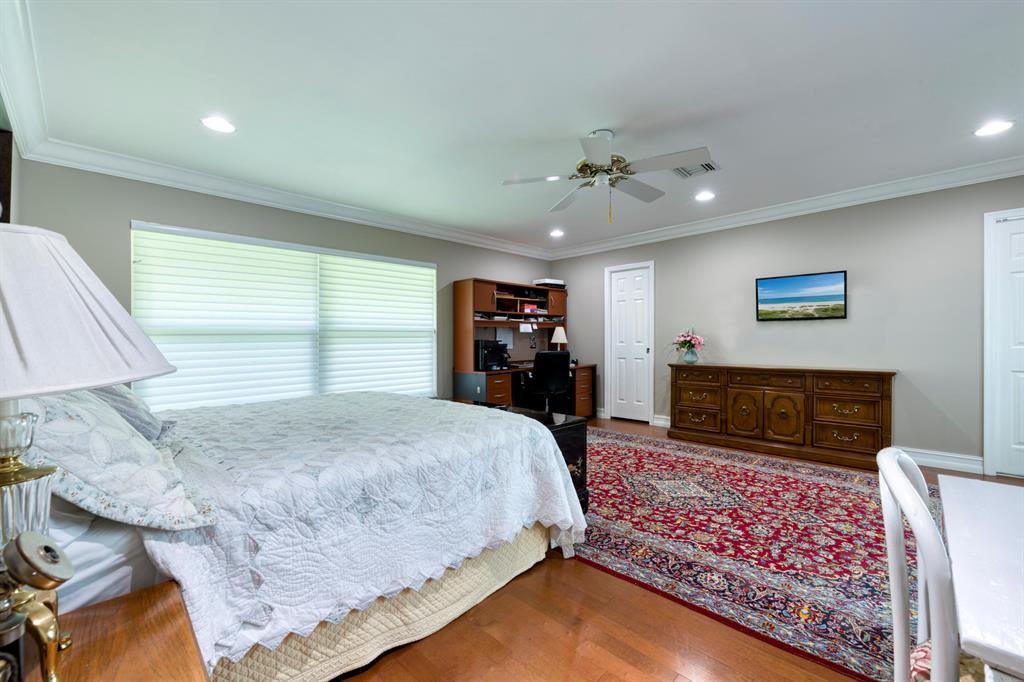 Unique masterpiece hits the market on cul-de-sac 2/3 acre lot, an address that identifies luxury, prestige & class. Step into a wide open, one floor CBS ranch style pristine residence w/Lake Mangonia in your backyard. Fully reno'd showstopper w/4 bdrms, 3 baths, wood floors, hurricane impact doors/windows, crown molding & smooth ceilings. Cook's kitchen w/quartz countertops & s/s appliances. Walk-in pantry. Wine cooler. 3 bdrms w/ensuite bath. Screened, tiled porch. Tropical pool w/spacious deck. Well tended garden. Oversize dble garage. Community tennis courts. Located in Presidential Estates, a gated enclave of single family homes, each one different from the other. Near I95, P.B.Outlets, restaurants and shopping. Palm Beach, beaches, Antique Row, libraries and theaters a short drive