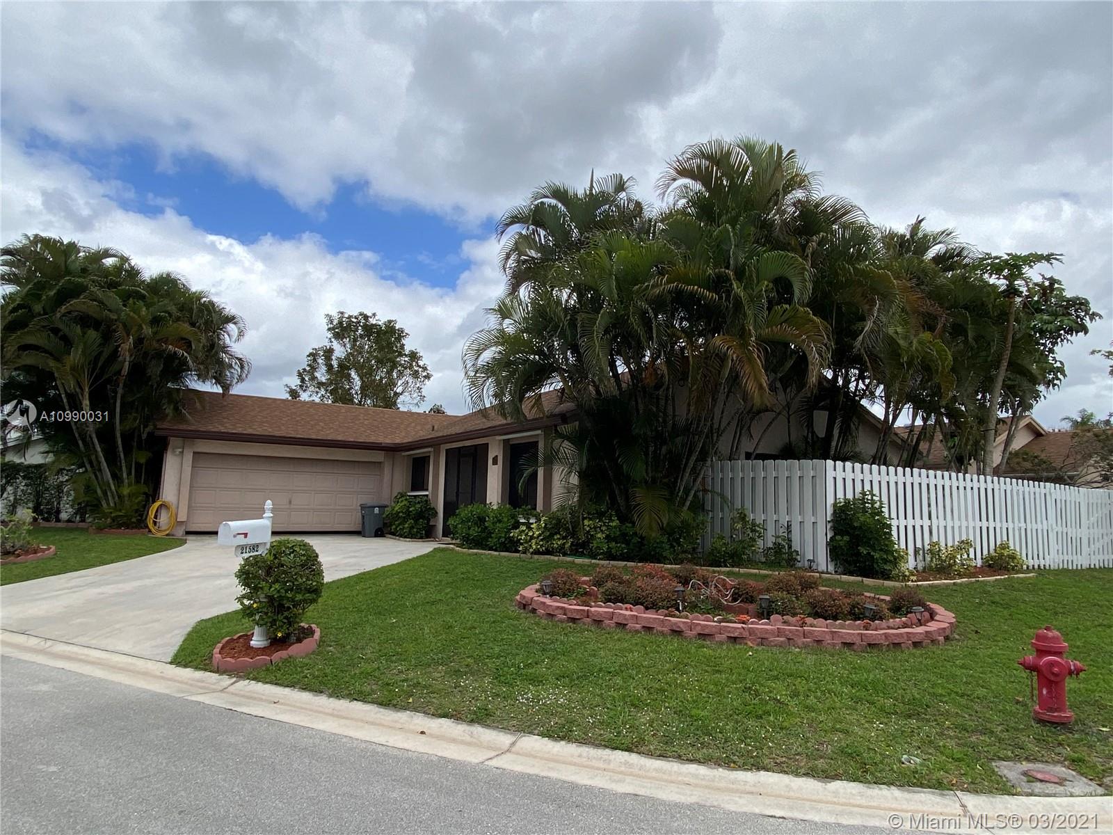 Beautiful and lovingly maintained single family home located in Boca Raton. 3 bedrooms, 2 bathrooms, renovated kitchen with new cabinets and granite countertop, tile and laminate wood floors, Florida room, screened patio, 2 cars garage, driveway for up to 3 cars, fenced backyard, low HOA, panel hurricane shutters, “A” rated . Best Boca Raton schools, great nearby shopping centers, restaurants, and much more!!!