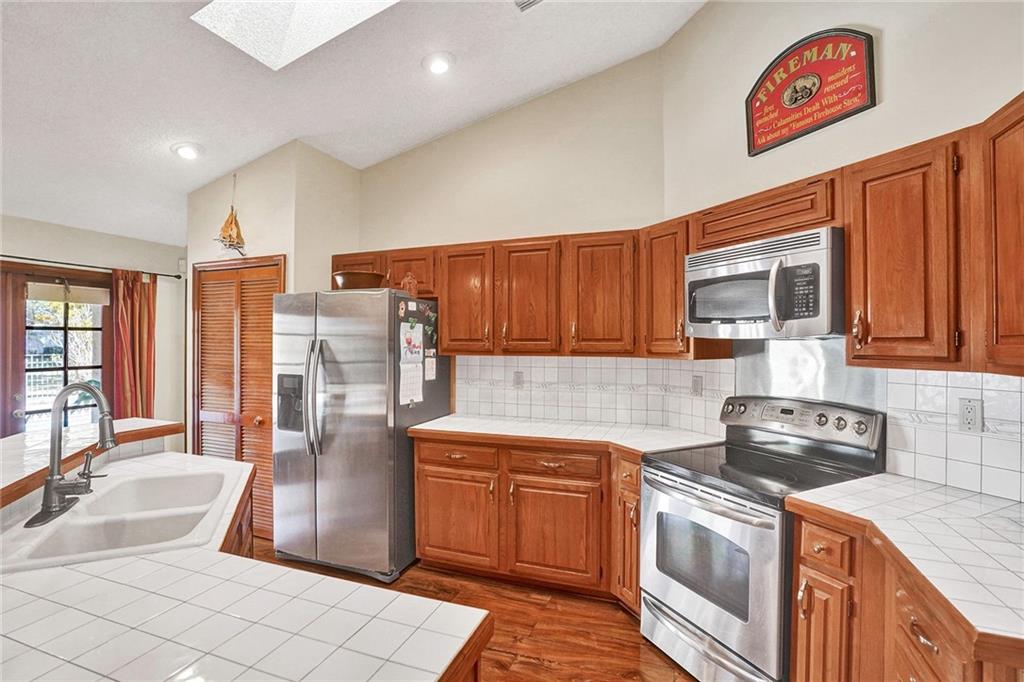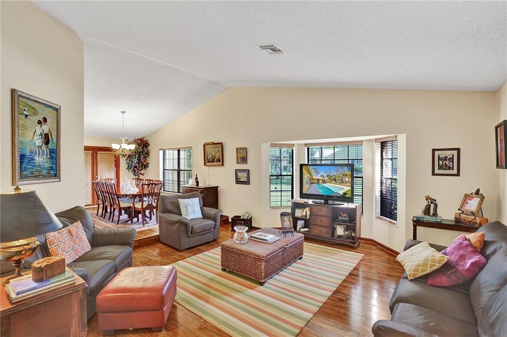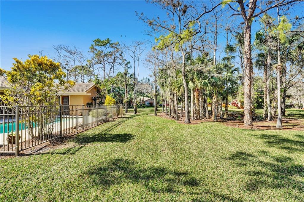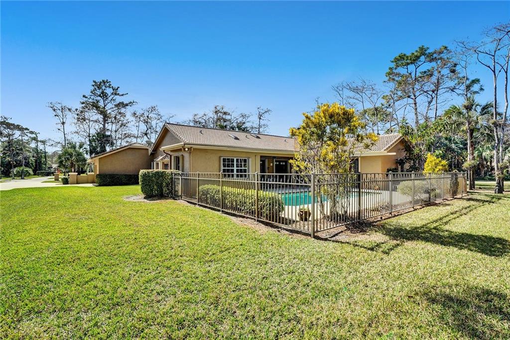 Nestled on a corner lot in beautiful Whispering Woods this 4/2.5 w/ pool on OVER AN ACRE has been impeccably maintained and at $635,000 will sell fast! Guard gated 24/7 this secluded and wooded community has a feeling of peaceful serenity coupled w/ privacy and security. There’s a big formal living room, a formal dining room, vaulted ceilings, handsome wood laminate floors, and skylights allowing natural light! A well equipped kitchen opens to a massive Family room w/ wood burning fireplace and French doors open to a large pool patio! A huge master bdrm has 2 large closets and French doors opening to the pool! There are two a/c’s – 2 yrs old and 9 yrs old, hurricane shutters, and roof was replaced in 2001! Absolutely ready to move in just “as-it-is” w/ updates being made along and along!
