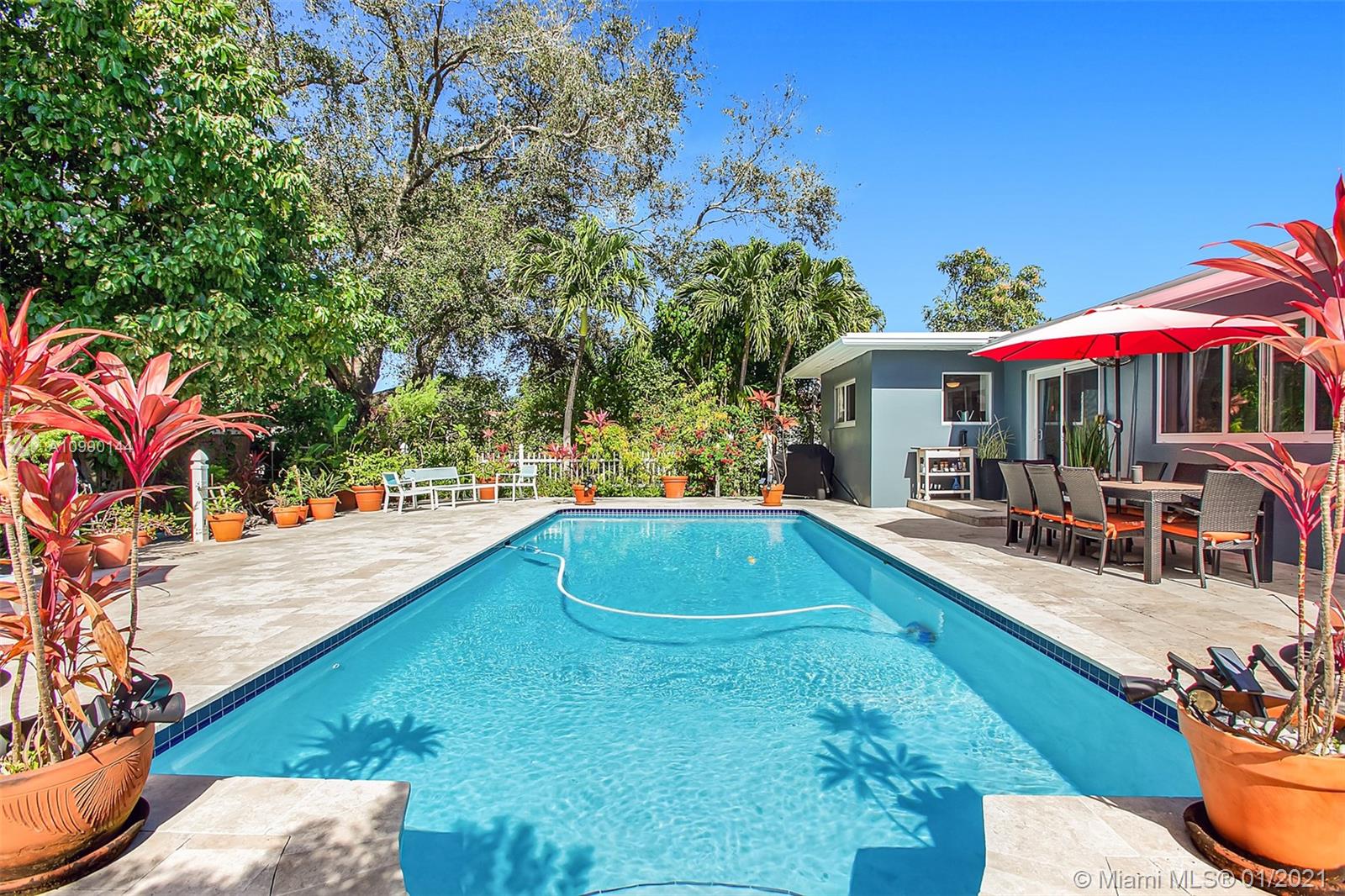AMAZING SINGLE FAMILY HOME IN GRIFFING ESTATES. THIS PROPERTY EXUDES FLORIDA LIVING WITH ALL THE WINDOWS, WHICH LETS IN A TON OF LIGHT FROM EVERY DIRECTION. ENCLOSED FRONT PORCH-FOYER IS A PERFECT READING AREA OR AT HOME OFFICE SPACE. OPEN LIVING ROOM, FORMAL DINING AREA AND FAMILY ROOM ALL LOOK OUT TO THE NEAR OLYMPIC SIZE POOL, WHICH WAS RECENTLY RESURFACED AND ADORNED WITH TRAVERTINE TILES. LARGE PATIO AND EXTENSIVE, LUSHLY LANDSCAPED BACKYARD. REAL OAK FLOORING THROUGHOUT. UPDATED KITCHEN WITH GRANITE COUNTER TOPS, TILED BACK SPLASH AND STAINLESS STEEL APPLIANCES. LARGE BEDROOMS WITH BUILT IN CLOSET SHELVING. IMPACT WINDOWS AND DOORS THROUGHOUT. UPDATED ELECTRIC AND PLUMBING. THIS IS A WALKABLE COMMUNITY WITH POCKET PARKS THROUGHOUT THE NEIGHBORHOOD. THIS HOME WILL SELL QUICKLY.