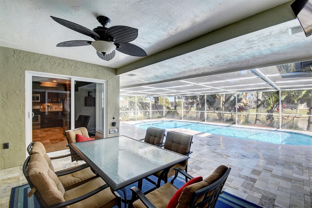 Don't miss this Beautifully remodeled home! Resort style pool overlooking canal. Pool renovation completed in 2019 includes Travertine deck, gas pool heater and Diamond Bright, pool pump. Impact hurricane windows and doors throughout. Interior has too may upgrades to list. Crown molding in bedrooms, Granite countertops, Travertine kitchen floors, Gas Range, Stainless Steel appliances, Porcelain wood tile in bedrooms, Plantation shutters, Custom closets, Surveillance system. Do not wait this home will not last!!