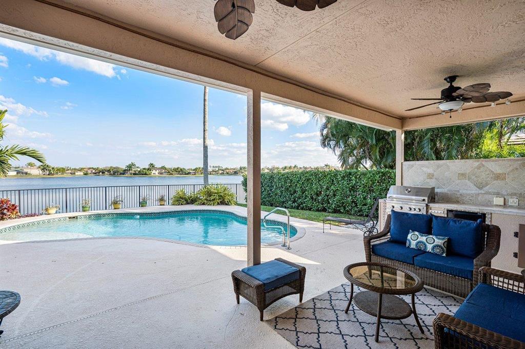 MILLION DOLLAR EXPANSIVE LAKE VIEW*** HEATED FREE FORM POOL*SUMMER KITCHEN* 4 BEDROOMS PLUS DEN, 3 FULL BATHS * 3 CAR GARAGE* CORNER LOT* FENCED YARD* NEW ROOF* FRESHLY PAINTED EXTERIOR* Incredible opportunity to own this stunning, impeccably maintained single story home with split floor plan! The Kitchen boasts 42'' cabinets with decorative shelves, Stainless Steel appliances, double oven, new dishwasher, newer Bosch stove top and faucet. The Cabana Bath and 4th bedroom are separated making it perfect for guests. Other home improvements include newer A/C, pool heater, pool pump, pool vacuum, Master Bath shower door and dual function shower head, Outdoor refrigerator and grill, Hunter Douglas Blinds throughout (some motorized), additional Attic insulation, new carpet in all bedrooms,