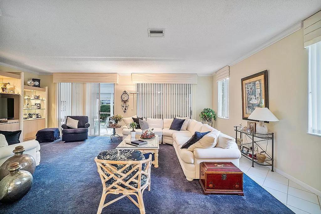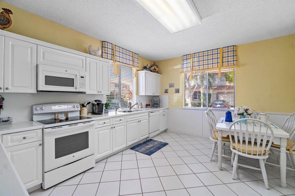 Rarely available spacious END unit town home in the manned gated community of Boca Pointe! Live the Florida lifestyle in this town home that lives like a single family home in an ideal location near the community pool. It is light and bright with an extra large outdoor screened patio, grass area behind and a 1 car garage. The entire first floor is tiled with a spacious main living space, dining room that opens to the living room and an ample eat in kitchen with loads of cabinets. There is an indoor laundry room, huge main bedroom, gorgeous updated master bath with dual sinks, large walk in closet and large guest bedrooms. Beautiful and very well maintained home! Club memberships available but not mandatory. 1 pet under 25 pounds permitted.