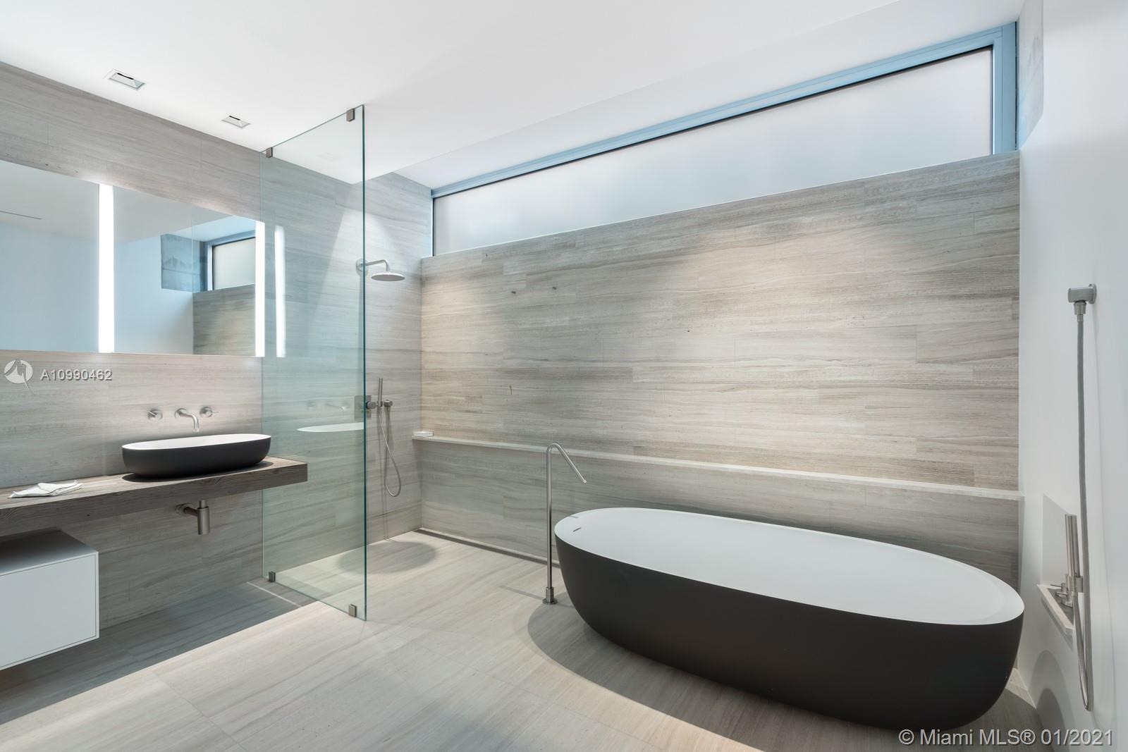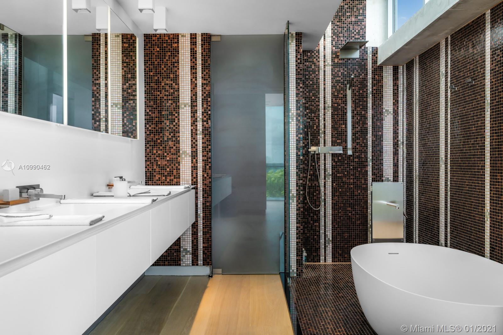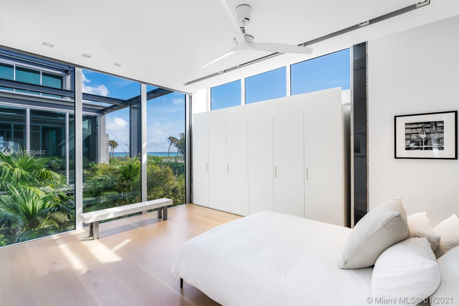 An architectural masterpiece in Miami Beach’s only private oceanfront residential enclave. The home’s exposed steel structure and exquisite design reveal a rare balance of brilliant craftsmanship & functionality, with resort-style amenities and panoramic ocean views for the ultimate Miami lifestyle. Interior features include Victrocsa “invisible wall” windows, Boffi Kitchen with Gaggenau appliances, stunning master suite, custom Porro closets, Boffi bathrooms, Valli Valli door fixtures, Savant smart home system, elevator, office, guest room, and rooftop deck with jacuzzi. Fully equipped first level retreat with home theater, spa & steam room, cold plunge, sauna, & Technofit gym. Expansive outdoor entertaining deck with summer kitchen, cabana, oceanfront garden & pool with 60 ft swim lane.