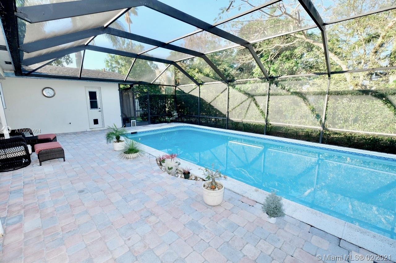 Classic Florida home great for entertaining & outdoor privacy. Super private. Brand new roof has just been contracted! Deep wooded lot backing up to canal which is great for fishing. 30’ covered lanai w/ kitchen, cabinets & tv overlooks large screened-in heated pool w/ sand filter for easy maintenance. Outdoor shower. Fenced in backyard w/ established landscaping & mango tree. Split bedroom plan w/ multiple access to lanai. 2015 A/C w/split control. Inside laundry w/sink. Updated kitchen w/granite, hardwood & pool view. Updated bathrooms. Super storage in this home. 1 bedroom customized home office for 2. Brick pavers on driveway, side of house & patio/pool area. Generator transfer switch w/inlet box. 2015 Diamond bright pool resurfaced. Customized storage in garage. No HOA. Doggie doors.