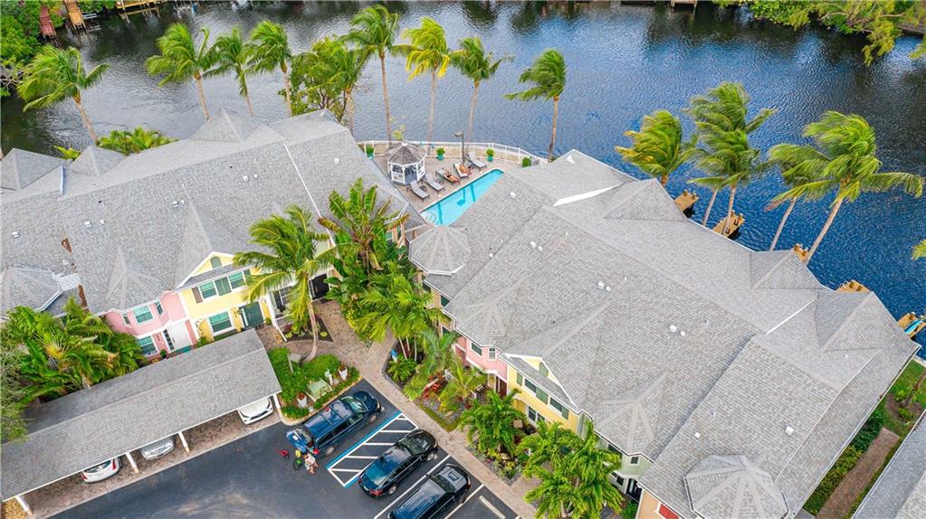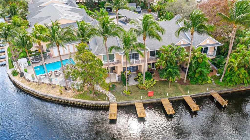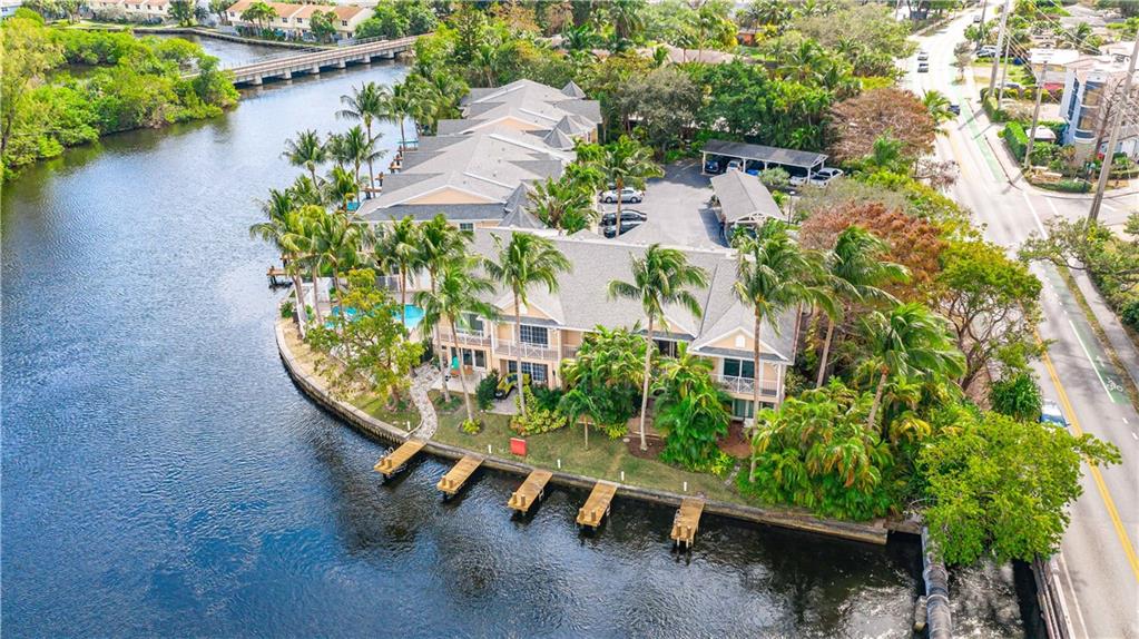 Dazzlingly renovated waterfront townhouse only blocks from Wilton Drive! This modern 2BR/2.5BA unit offers an open and well-designed floor plan with foyer entry, stainless steel/quartz kitchen and enough space for separate living & dining areas! Impressive master suite features vaulted ceilings, walk-in closet, a master suite with magazine-quality finishes and a private balcony overlooking the tranquil waters of the Middle River's South Fork. Tiled and partially covered terrace is perfect for outdoor dining and leads to your personal, deeded dock! Ample storage space both inside and out, includes both a storage closet and a separate storage room. With covered parking and a prime east Fort Lauderdale locale only minutes to Las Olas, the beach and Downtown, this townhouse truly has it all!