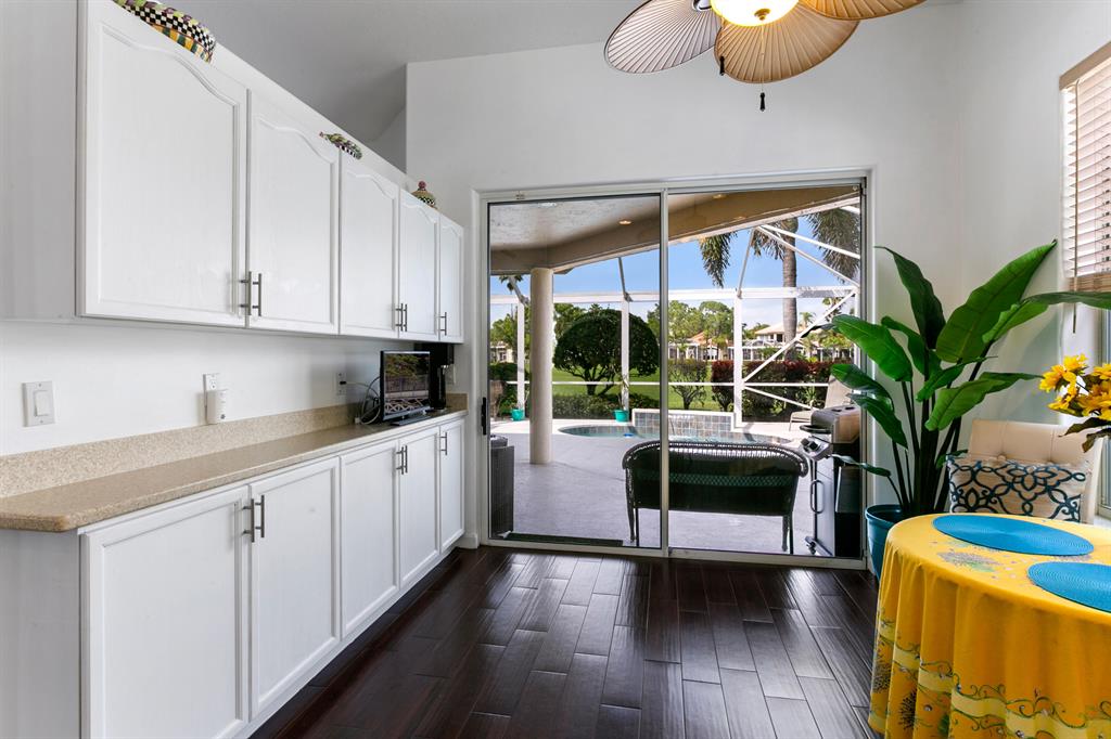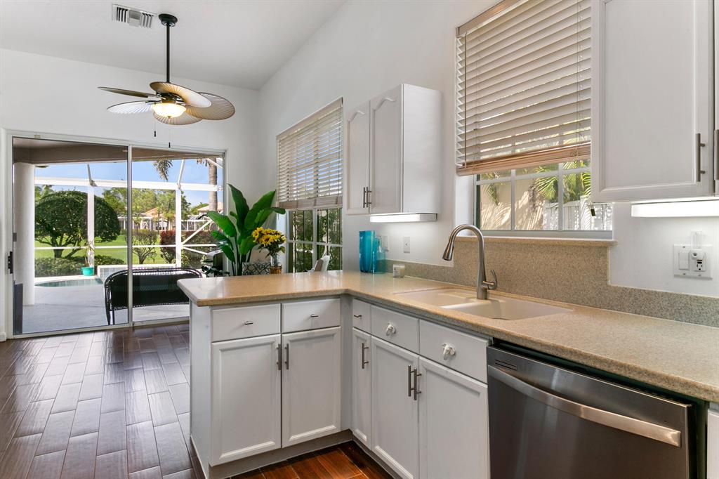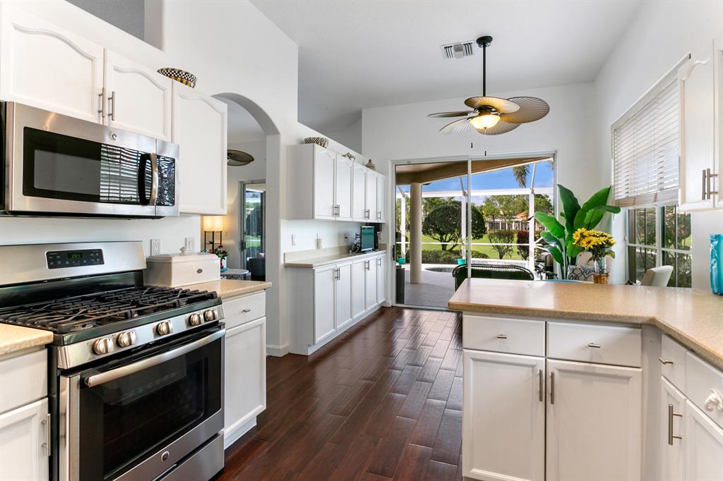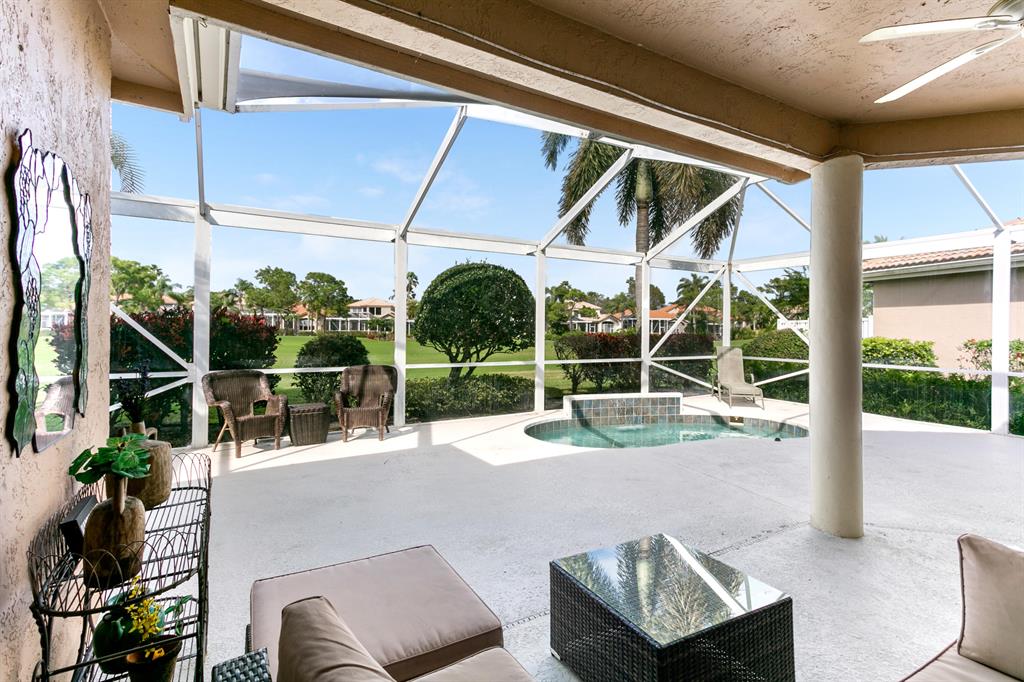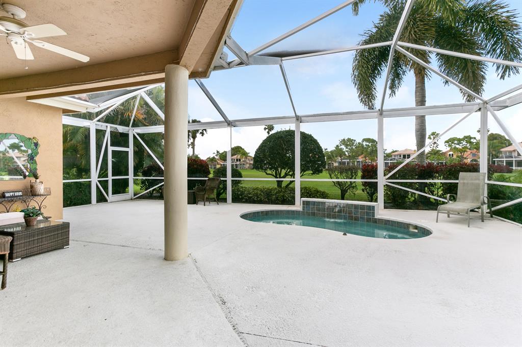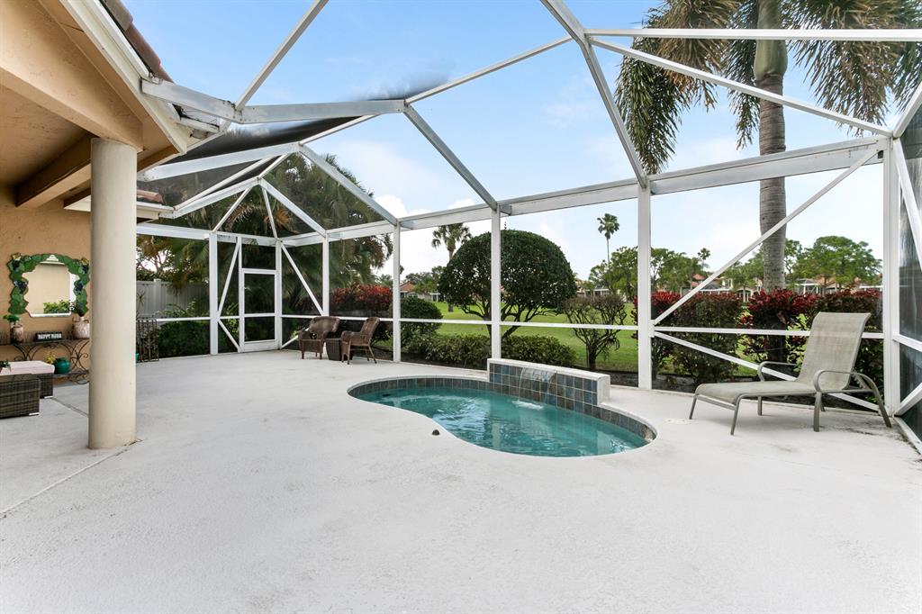 Beautiful 3BR, 2BA, Home on the 2nd hole of the Heritage Golf Course. This Home has new Wood floors in Living Area Kitchen has all new Stainless Steel appliances Gas Stove, additional cabinets along with eat in kitchen area. Home is Light & Bright with Sliding Doors out Living Rm, Dining Rm and Master Bedroom to an Oversized Patio with a large in ground Heated Jacuzzi. Master Bath has dual sinks with Granite countertops, seamless shower with separate spa tub and Walk In closet. Guest Bathroom has upgraded vanity with granite countertops. Home has extended driveway. AC 2014 HOT water Heater 2012 Pool Filter 2010 Mandatory Membership To the Club at IBIS required ,Life the style you always dreamed of !