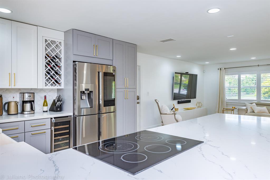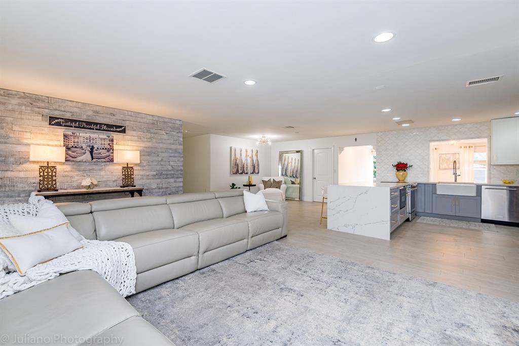 TURN KEY! Renovated down to the studs! Are you ready to hear about this stunning property?New, beautiful flooring, freshly painted walls, and new baseboards fill this home (2020). Smart-phone, color changing recessed lighting installed in the living-room and kitchen is perfect for parties, game day, holidays, or even just simple dimming. The living room has upgraded plantation shutters and a beautiful 3/4 glass hurricane impact front door for optimal lighting (and aesthetics!). The house has Miami-grade hurricane impact windows (2016), and a spanking brand new roof (2020) to ensure safety and longevity for the storms to come.The kitchen features a waterfall edge, faux marble quartz countertop, a luxurious mother or pearl and marble backsplash, all new appliances including smart