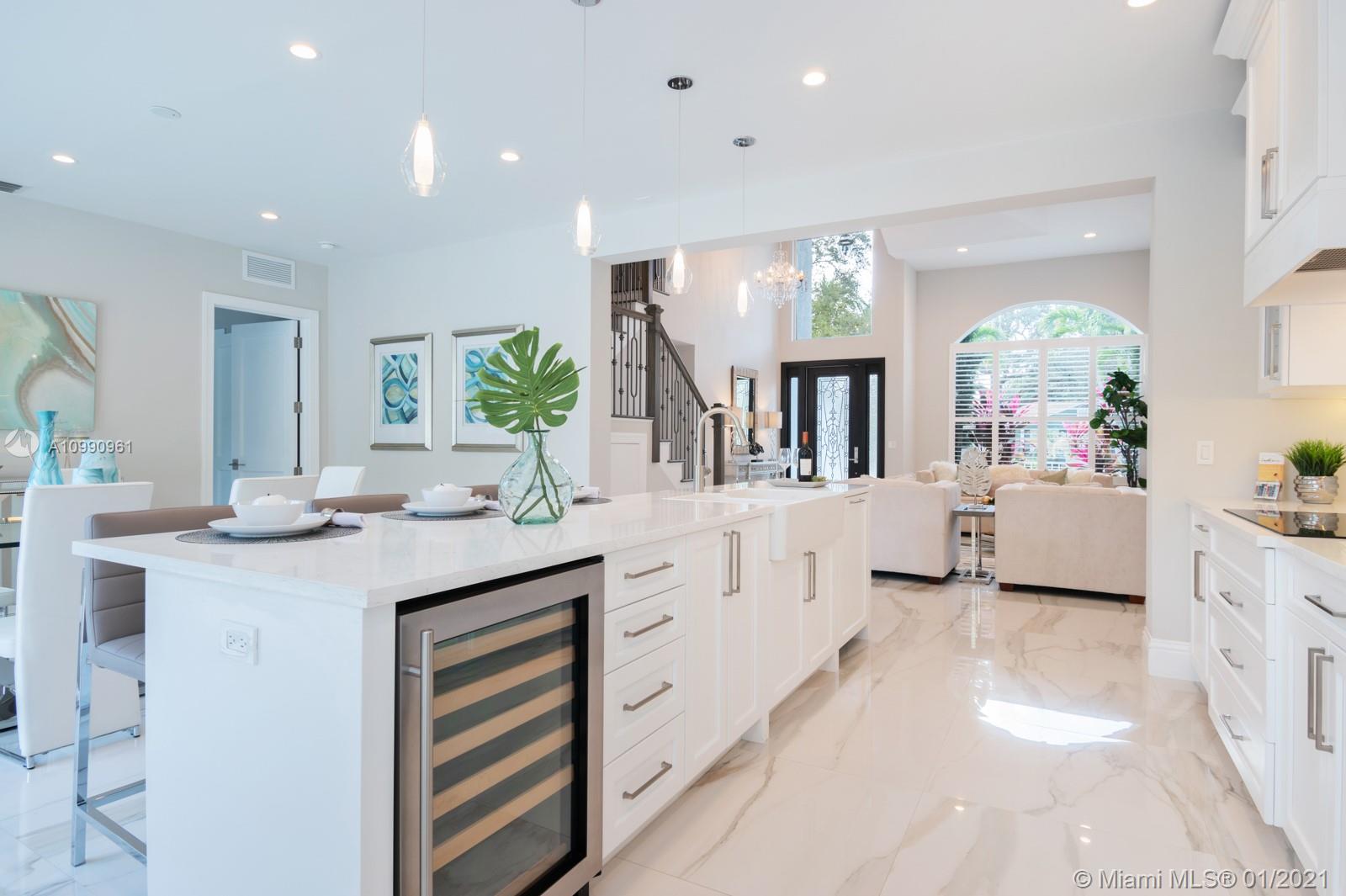The combination of great location and high standards living. Located 5 min from Las Olas and 10 min from Fort Lauderdale Beach. This property offers immaculate, professionally designed two-story vaulted ceiling, with a beautiful kitchen equipped with Wolf in-wall range and cooktop, Sub-Zero fridge. New roof, brand new A/C unit, paver driveway, PGT impact windows/doors with window treatment, Calacatta porcelain floors, AquaGuard wood floors, custom wood cabinetry, quartz tops, wood closet shelving, full size washer and dryer, epoxy garage floor, landscape lighting, backyard lounge with tv and furniture, pool chairs and more.