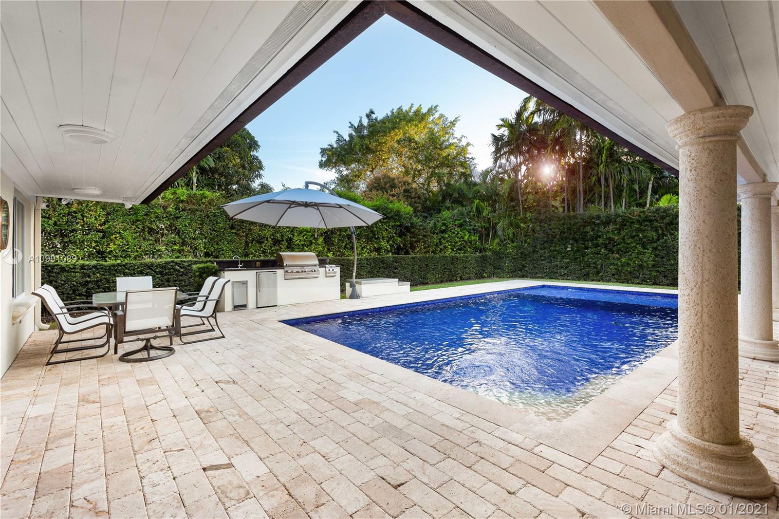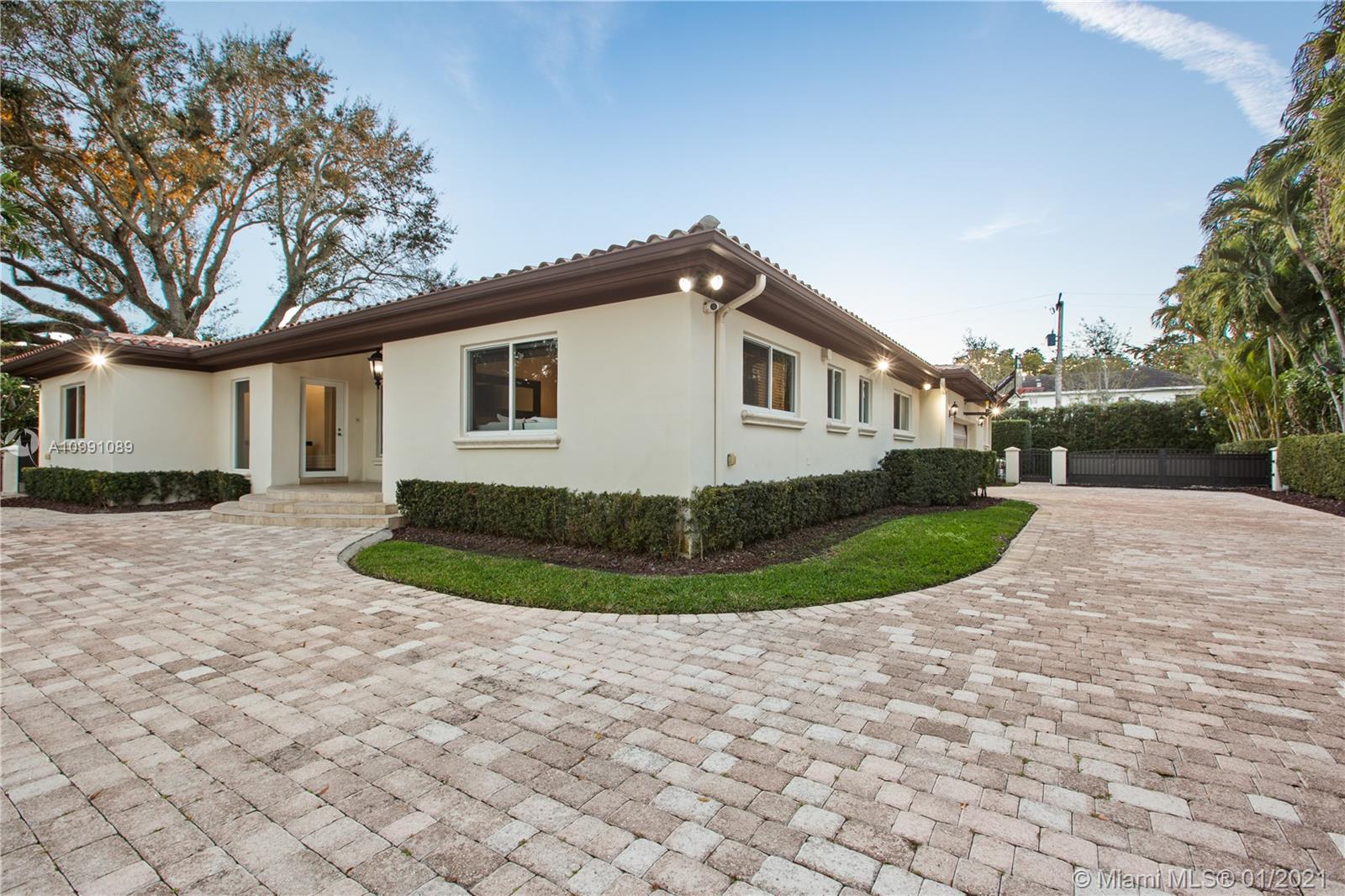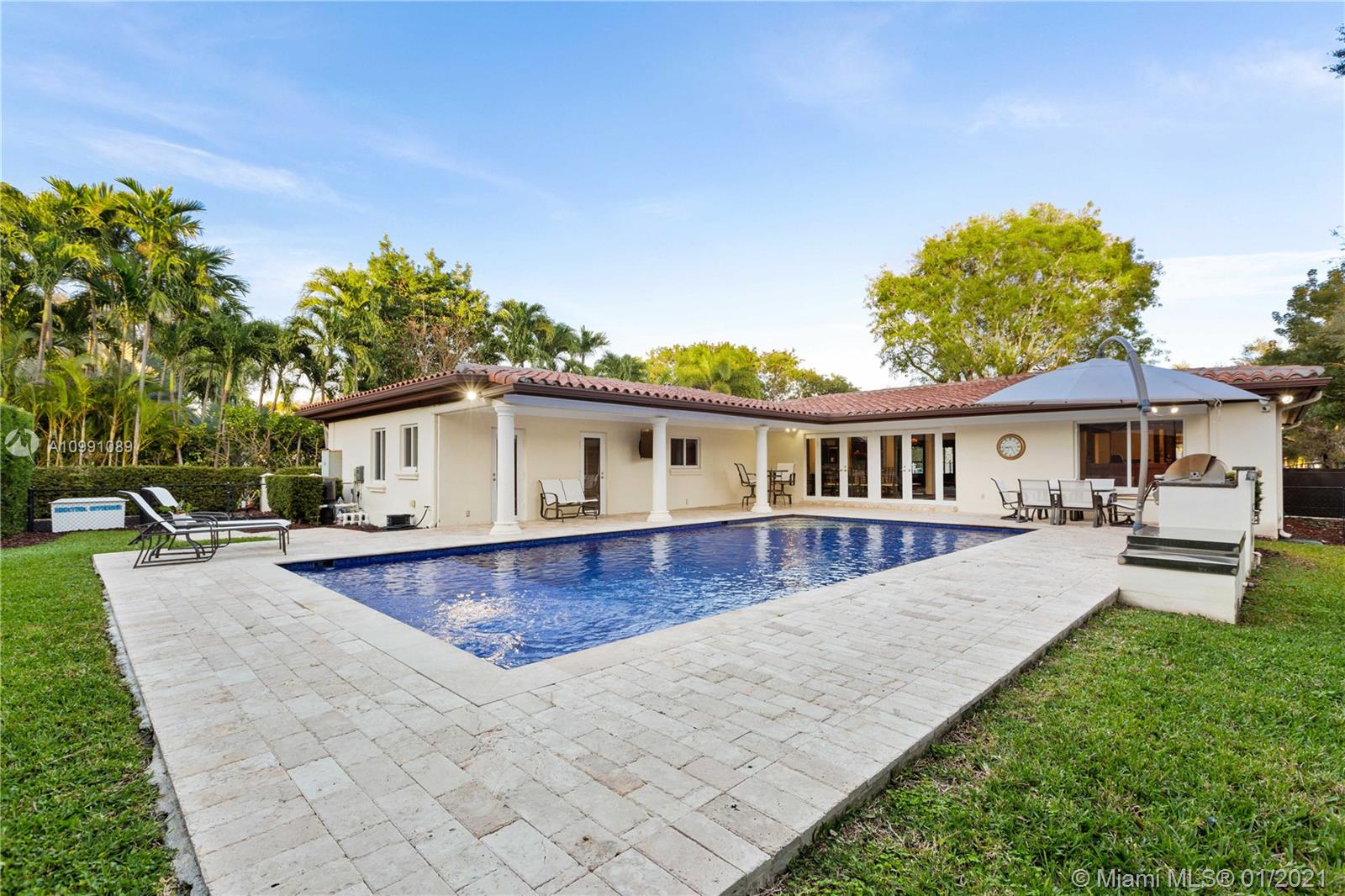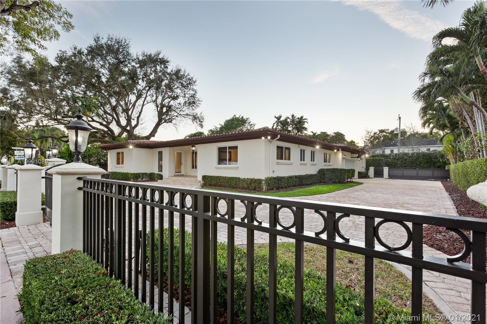 Step into perfection! Spectacular 4-bedroom, 3.5-bath split plan home In the heart of the Gables. Set on a generous 13,500 square foot lot, this home is more than turn key. Beautiful modern kitchen and great living spaces that are perfect for entertaining or spending time alone. This home is gated and has a great pool and summer kitchen. 4th bedroom is just off the pool and is independent from the main house. The home has impact Windows and doors as well as backup generator. Circular driveway, two car garage and beautifully landscaped. Just fabulous!