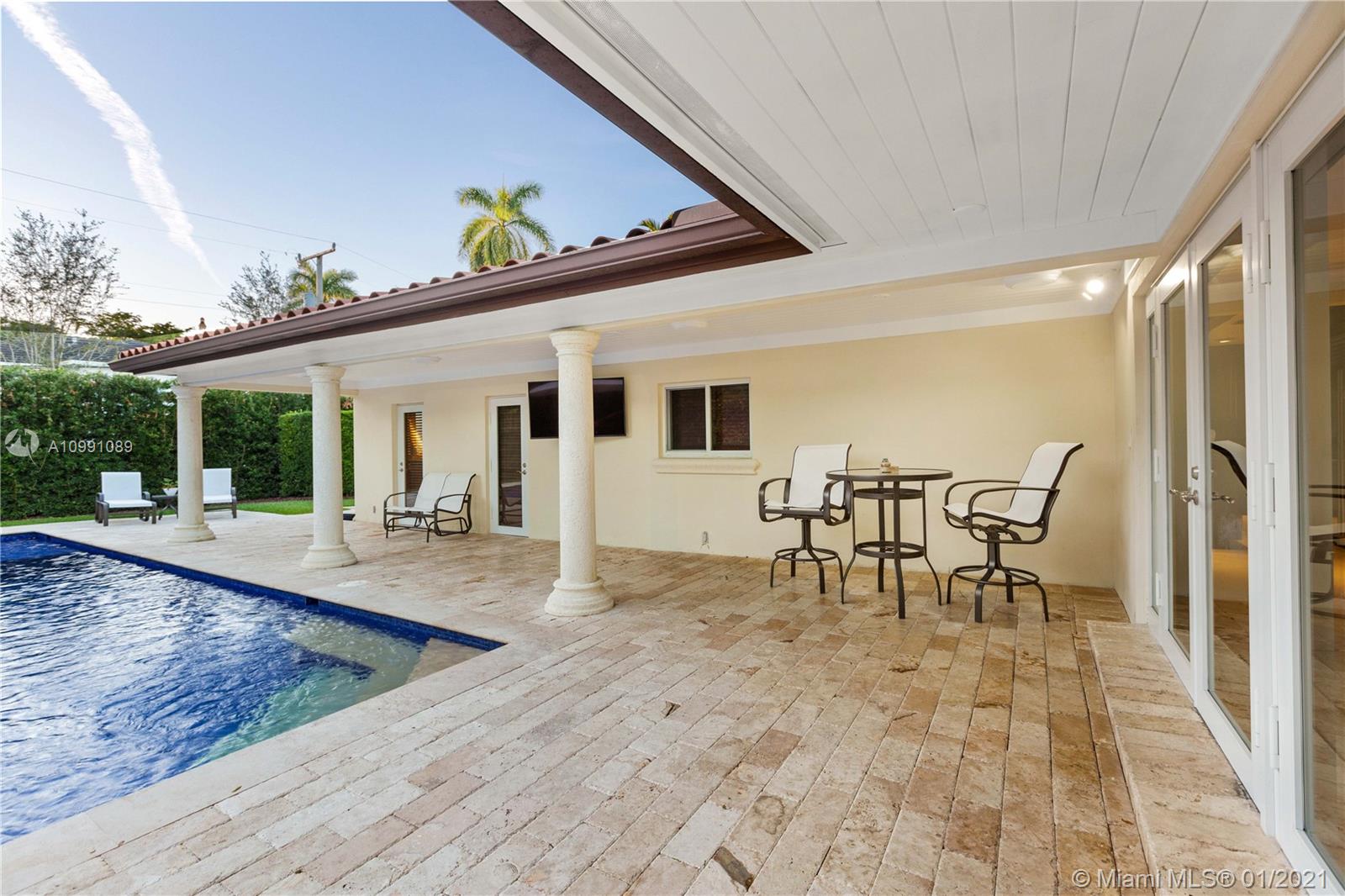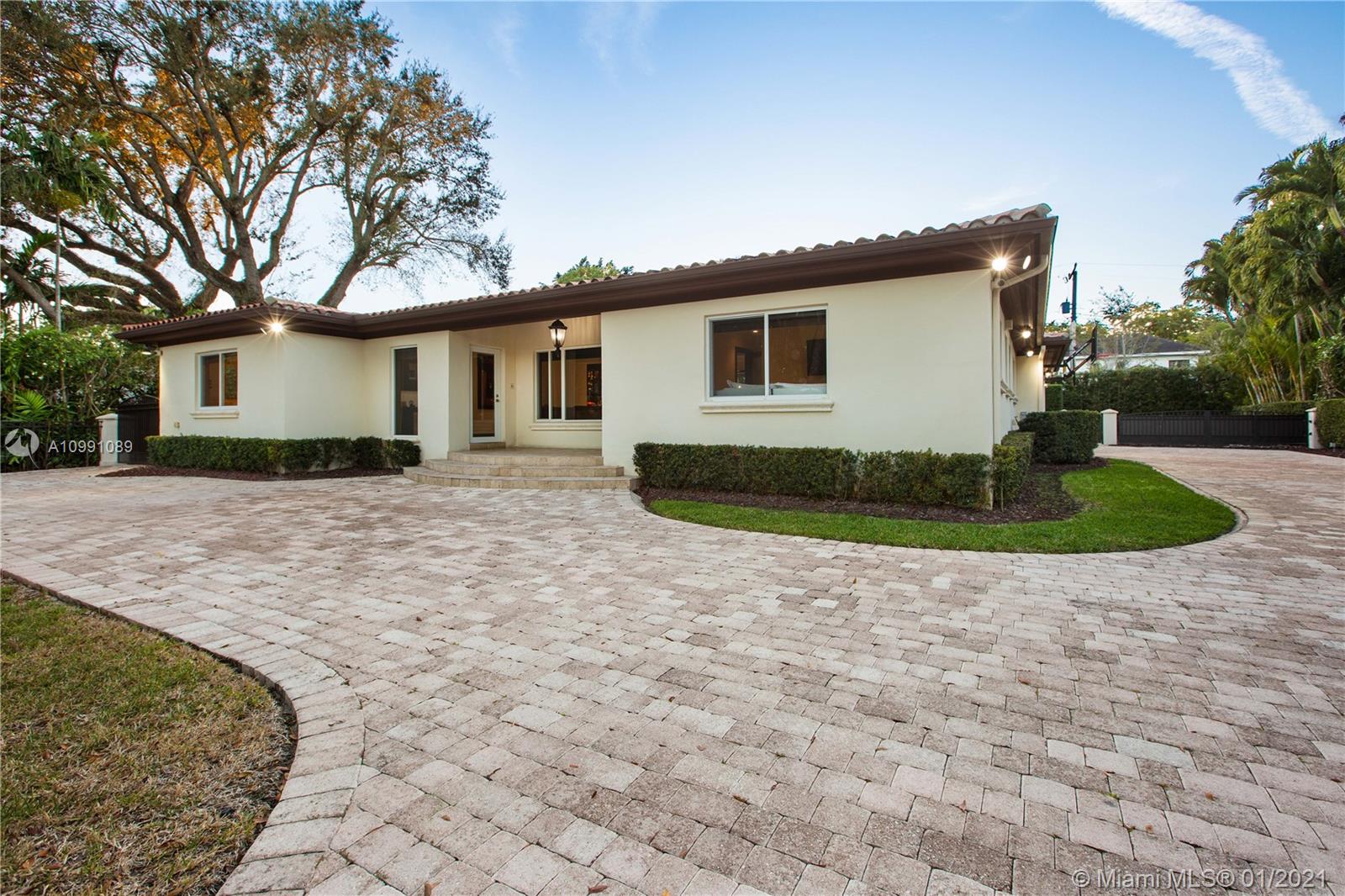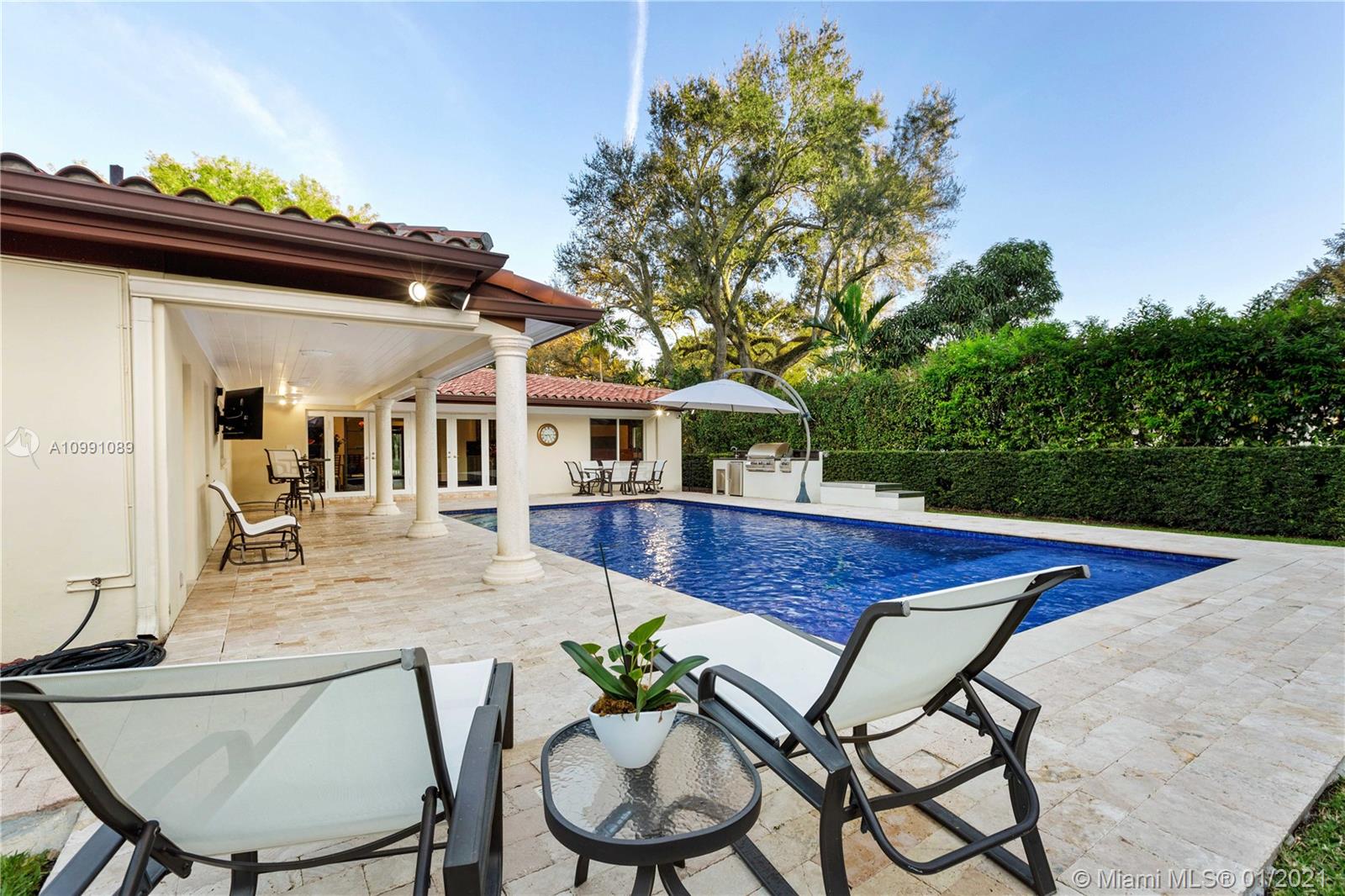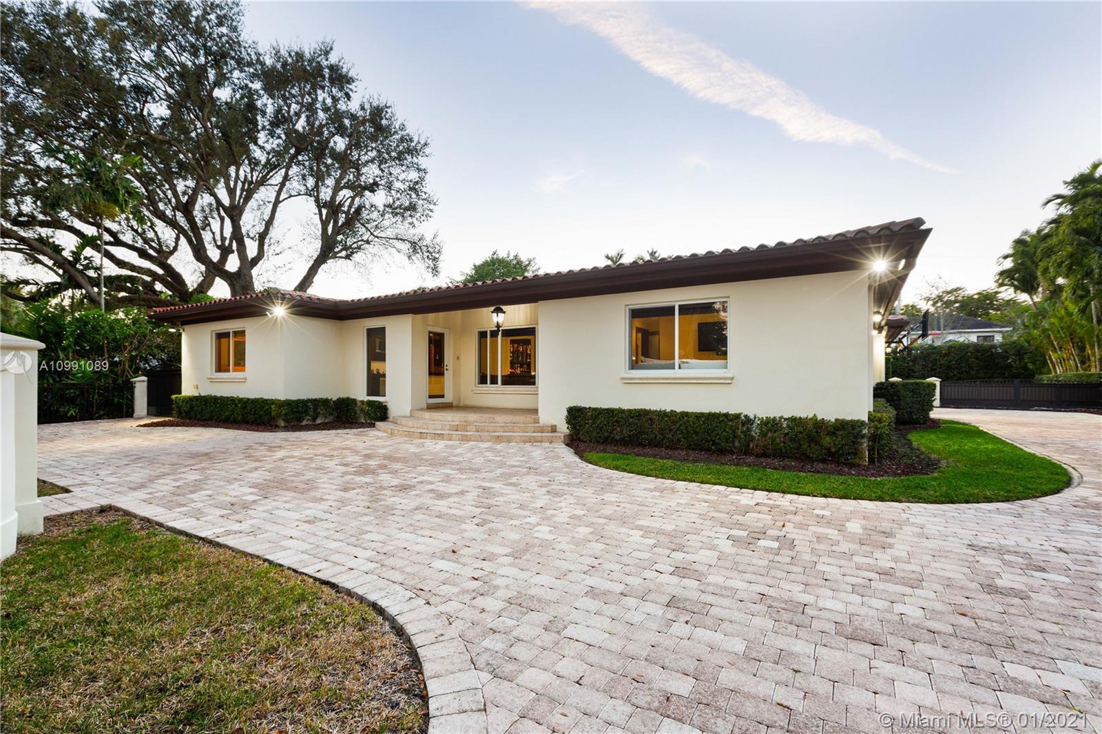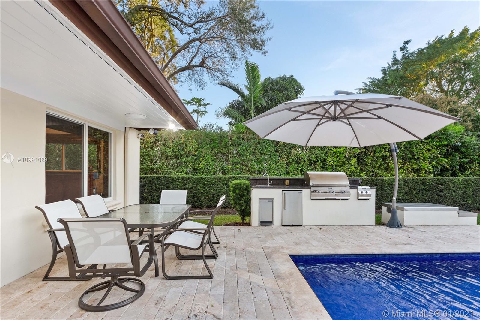 Step into perfection! Spectacular 4-bedroom, 3.5-bath split plan home In the heart of the Gables. Set on a generous 13,500 square foot lot, this home is more than turn key. Beautiful modern kitchen and great living spaces that are perfect for entertaining or spending time alone. This home is gated and has a great pool and summer kitchen. 4th bedroom is just off the pool and is independent from the main house. The home has impact Windows and doors as well as backup generator. Circular driveway, two car garage and beautifully landscaped. Just fabulous!