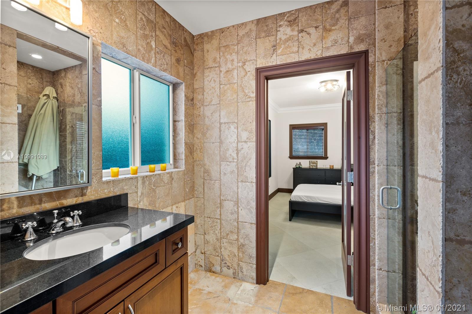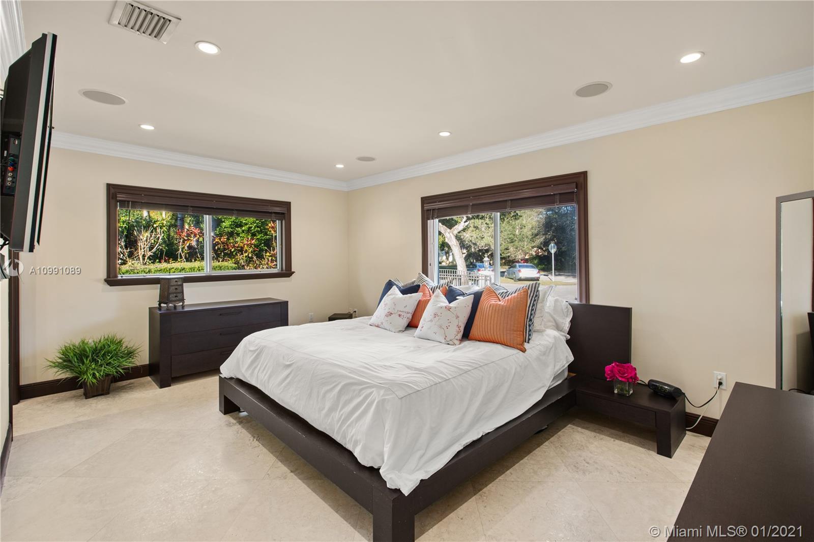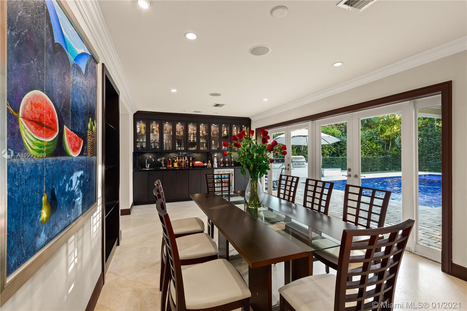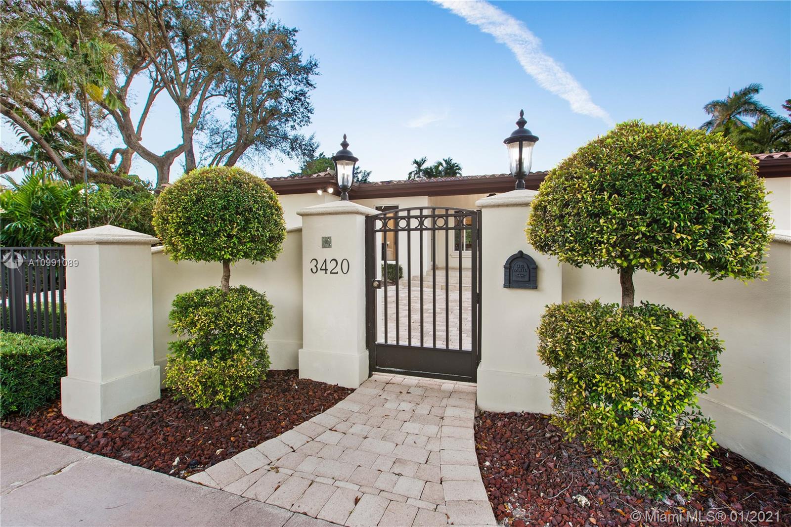 Step into perfection! Spectacular 4-bedroom, 3.5-bath split plan home In the heart of the Gables. Set on a generous 13,500 square foot lot, this home is more than turn key. Beautiful modern kitchen and great living spaces that are perfect for entertaining or spending time alone. This home is gated and has a great pool and summer kitchen. 4th bedroom is just off the pool and is independent from the main house. The home has impact Windows and doors as well as backup generator. Circular driveway, two car garage and beautifully landscaped. Just fabulous!