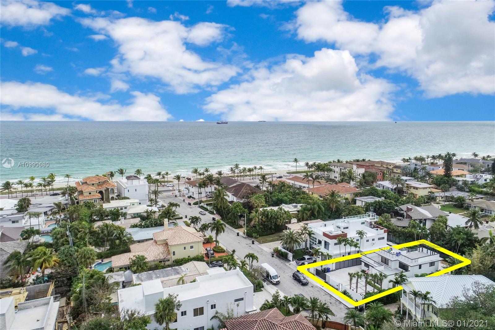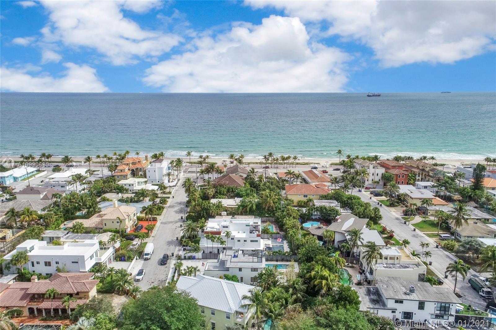 Take a walk up the street and enjoy the beach or soak up the sun on the pool or rooftop deck of your home, either way life gets no better than this! Beautiful sleek and modern home with industrial touches that will have you absolutely in love. On the main floor you are welcomed with phenomenal natural light from French Doors and oversized windows, pristine kitchen with stainless steel appliances, gorgeous brick accent walls, recessed lighting throughout, spacious living and dining room, bedroom, and full bathroom. On the second floor you have the master bedroom, spacious bedroom, and a grand rooftop deck where you can enjoy the view of the pool deck and ocean breeze. Make this property yours today!