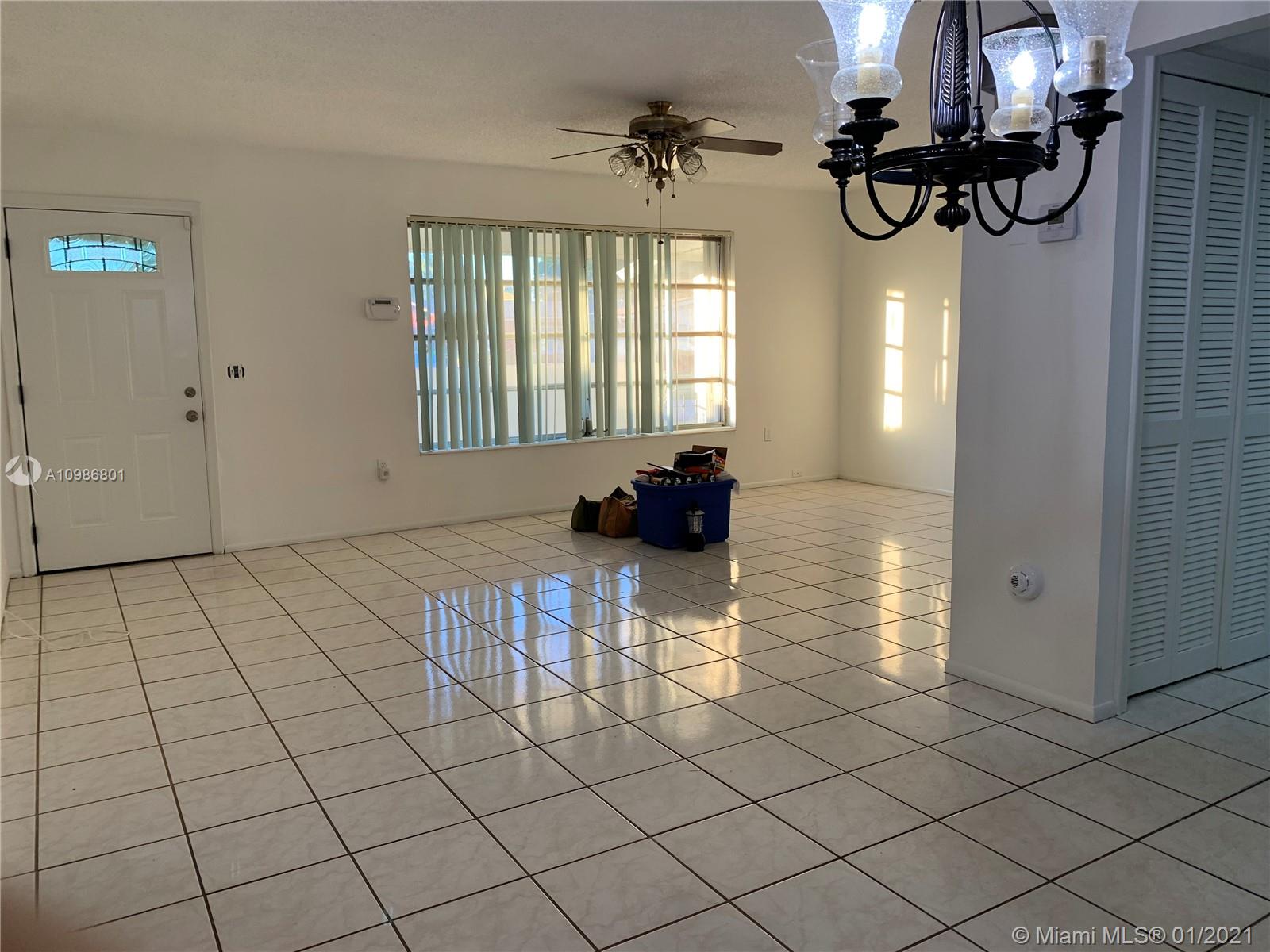 Great opportunity to live in a community with NO HOA! Bright, freshly painted, spacious, private front porch, 1 car garage, and a fenced yard. Tiled throughout the living area; laminate in the bedrooms. Spacious eat-in kitchen, big enough for a table for four, with lots of cabinets and pantry space. Off of the kitchen is an additional large, enclosed Florida/family room that can be accessed from the main bedroom, dining room, and kitchen. Hurricane shutters and a newer A/C. Conveniently located near major shopping centers, banks, highways, hospitals, and schools. Unlock this homes incredible potential with a little tlc. Don't miss it!