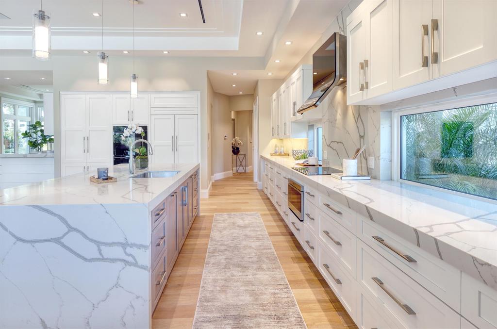 Live in the Golden Harbour where easy access to RPYCC, Downtown Mizner, the Intracoastal Waterway and the beach make this a prime location. This 2017 custom home on a raised point lot w/no back neighbors, provides gorgeous unobstructed water views, 210' of dock space, boat & jet ski lift, salt water pool w/ jetted tub and sun shelf, natural gas fire pit & full house, generator. The interior is pure elegance. Incredible details include wood floors throughout, custom fireplace, elevator, expansive kitchen & island, pocket sliding doors to bring the outdoors in PLUS Control 4 system to navigate all your lighting, music & security. The grande master suite with a private balcony, stunning gas fireplace, 2 walk-in closets & private flex space will impress the most discriminant home buyer.
