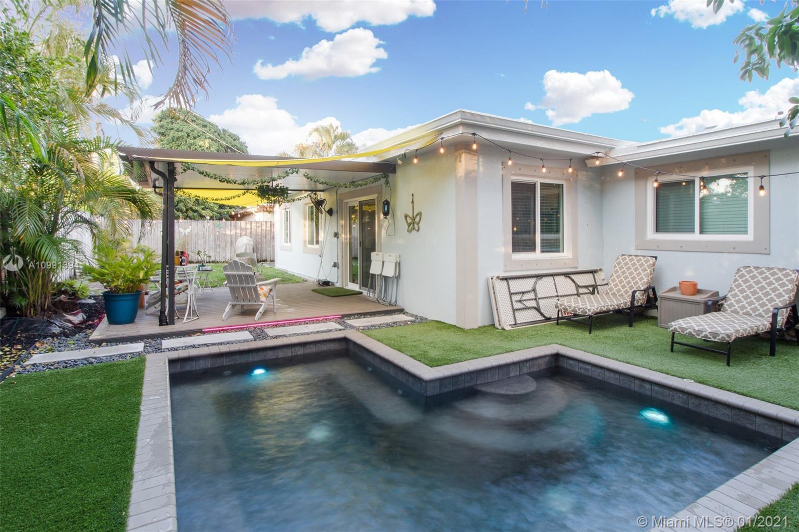 BEAUTIFUL, IMMACULATE TURN-KEY HOME YOU WON'T HAVE TO DO ANYTHING TO! MOSTLY SMART HOME. NEW 50-YEAR ALUMINUM ROOF INSTALLED MONTHS AGO AND IMPACT WINDOWS THAT OFFER VERY LOW ELECTRIC AND INSURANCE BILLS AND SILENCE FROM ANY OUTSIDE NOISE. BEAUTIFULLY RENOVATED BY LONG-TERM OWNER WITH GREAT TASTE! SMOOTH CEILINGS WITH RECESSED LIGHTING. 10MM LAMINATE FLOOR. YOU WILL LOVE THE LOW-MAINTENANCE YARD WITH BUILT-IN SALTWATER JACUZZI AND COVERED DECK AREA. BRAND NEW RAIN GUTTERS. ELECTRONIC VEHICLE CHARGING STATION. 1.5 MILES AND 4 MINUTES AWAY FROM SEMINOLE HARD ROCK CAFE.