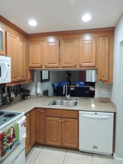 LIGHT AND BRIGHT TOWNHOME VILLA ISAND WITH VIEW OF COMMUNITY POOL TO REAR AND ENCLOSED PATIO STORAGE. VILLA IS TILED THROUGHOUT FRESHLY PAINTED, CROWN MOULDING THROUGHOUT. INTERIOR LAUNDRY CLOSET WITH BARN STYLE SLIDING DOOR. KITCHEN FEATURE 42' WOOD FINISH CABINETS WITH CROWN MOULDING, STORAGE SHELVES, GRANITE COUNTERTOP, RECESS LIGHTING AND ALL WHITE KITCHEN APPLIANCES. UPDATED BATHROOMS WITH TILED SHOWERS.