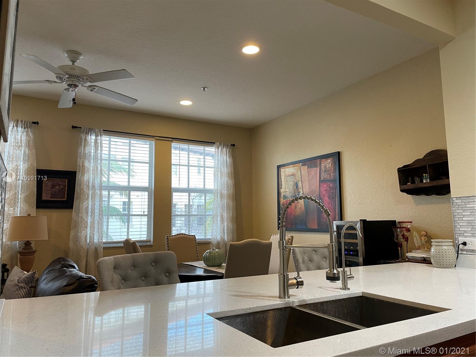 Modern 3 Level designer Townhome featuring an attached 2 car garage, open floor plan, open concept kitchen, high ceilings on the 2nd & 3rd floors, hurricane impact windows, energy efficient appliances & lighting. Fantastic layout with 1 Bedroom & 1 bathroom on the 1st floor, 2nd bedroom, master bedroom and laundry on the 3rd floor. Perfectly positioned in front of the clubhouse. The neighborhood centrally located in front of Miramar Midtown, minutes away from Pembroke Gardens & Pembroke Lakes Mall and much more. This unit will not last.