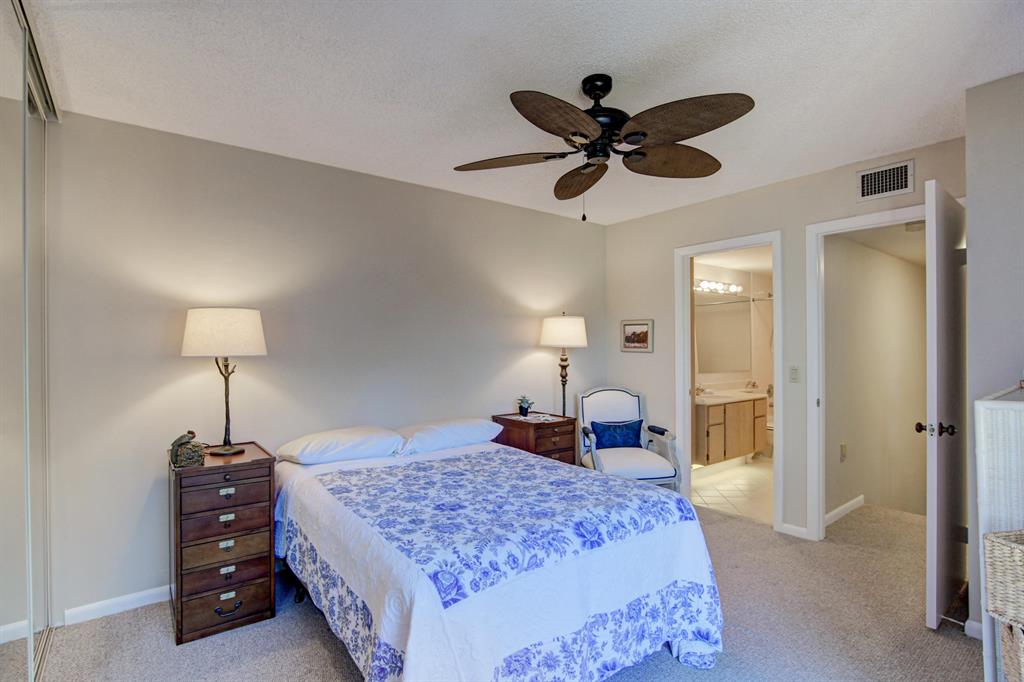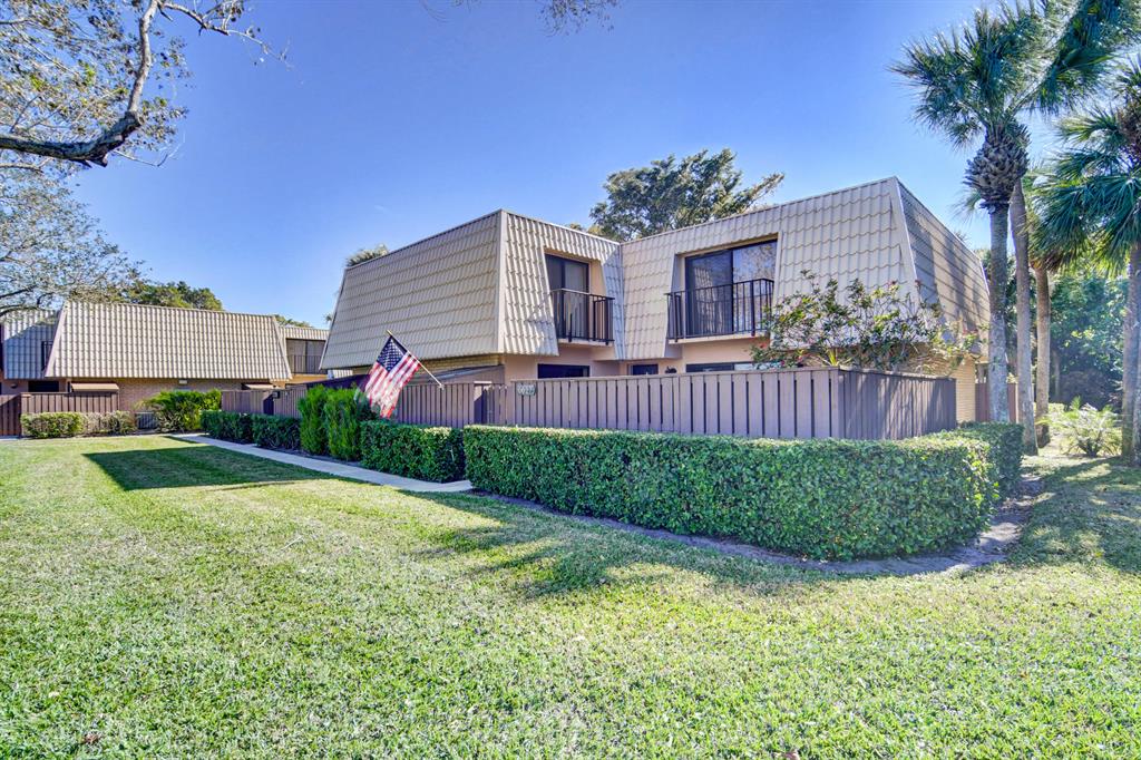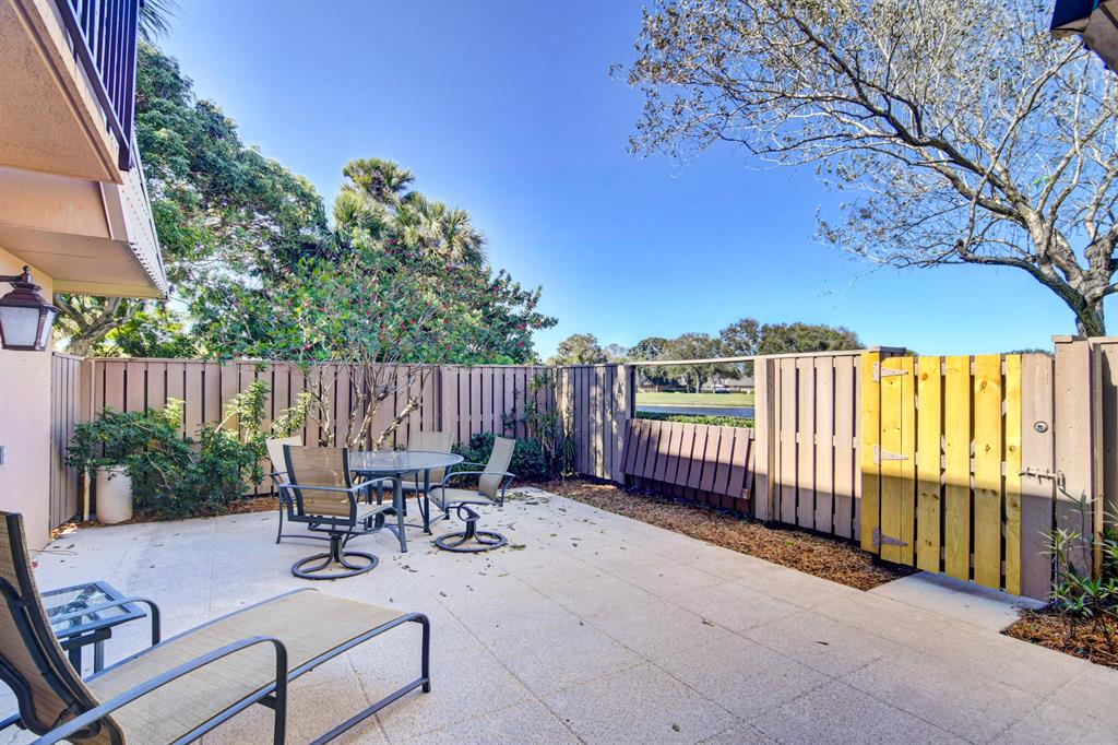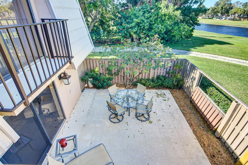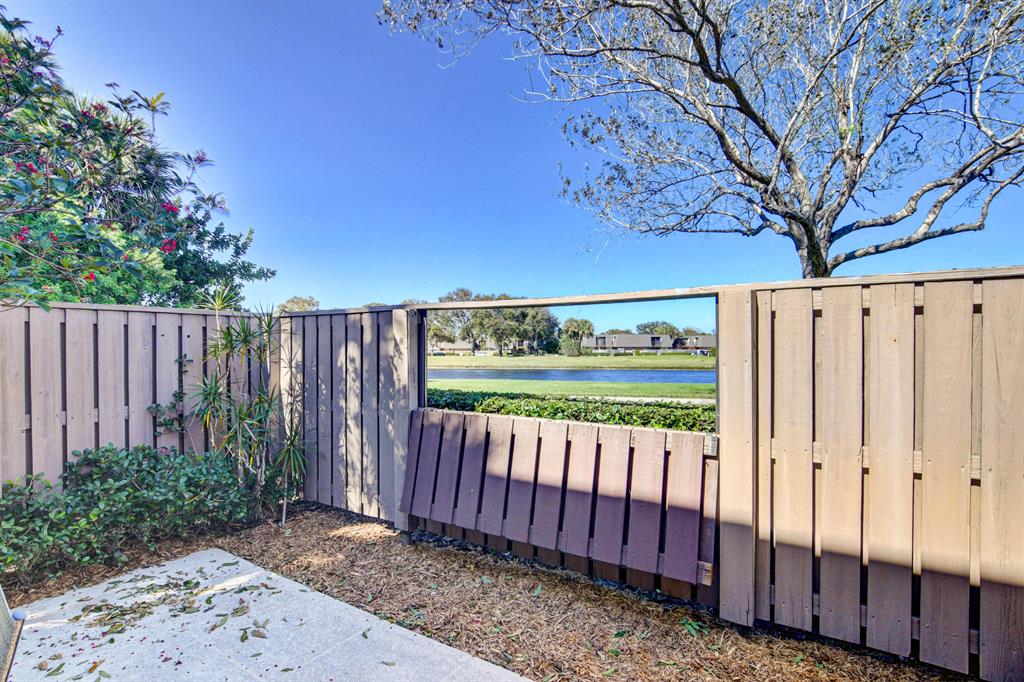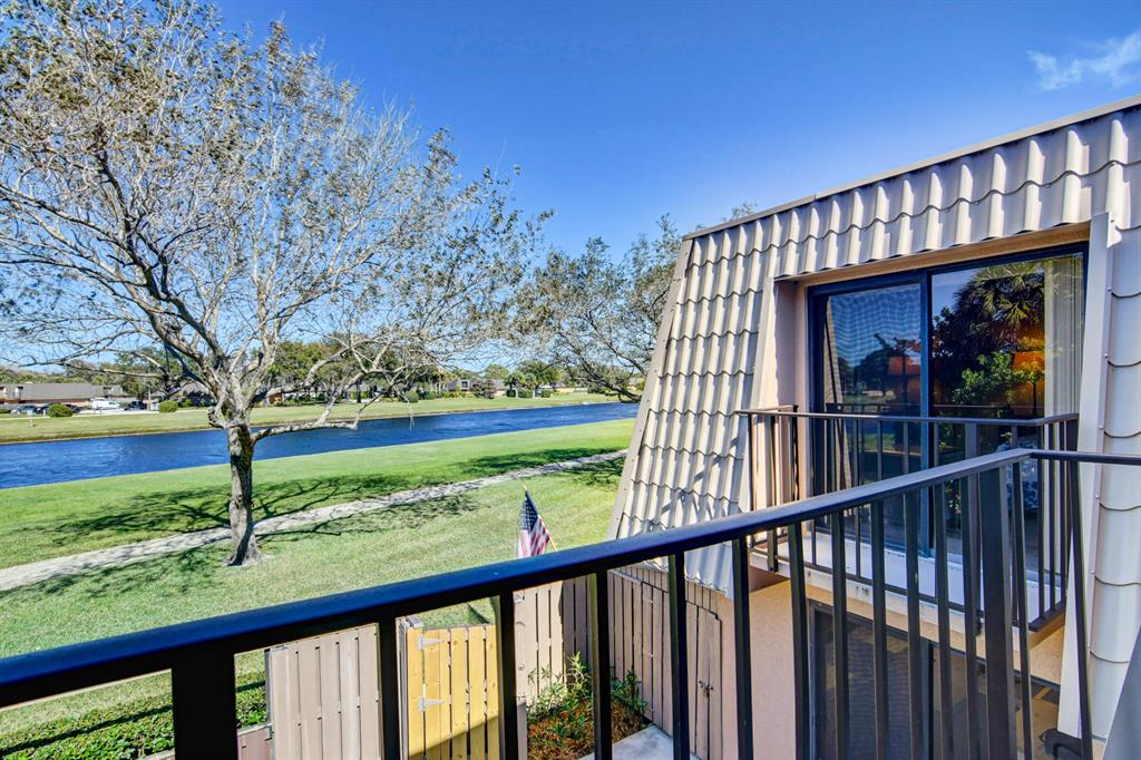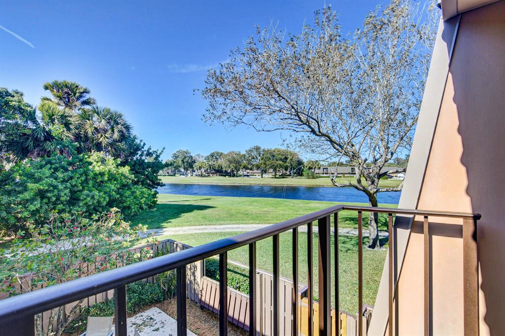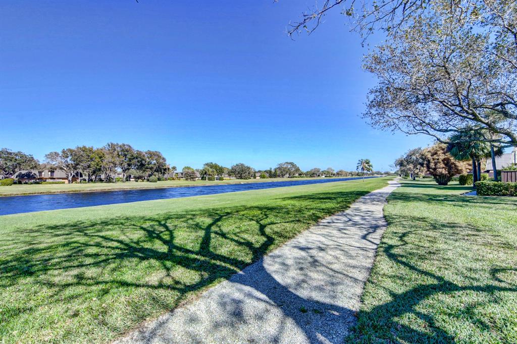 Canal views from both bedrooms, drop down fence from patio, private location, walk to Rec. facilities. Laminate flrs.downstairs, new microwave, stove & g/disposal. Decorator fans, Berber carpet.Ext. bldg. main, includes roof & fence. Bldg. ins. assigned parking, common landscaping, road resurfacing, tree trimming & more. Minutes to main arteries, grocery, banks, restaurants, PBIA airport, Discount mallDiscount mall. Beaches 15-20 minutes.