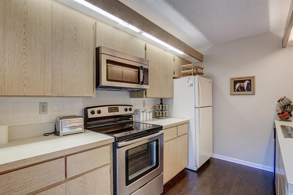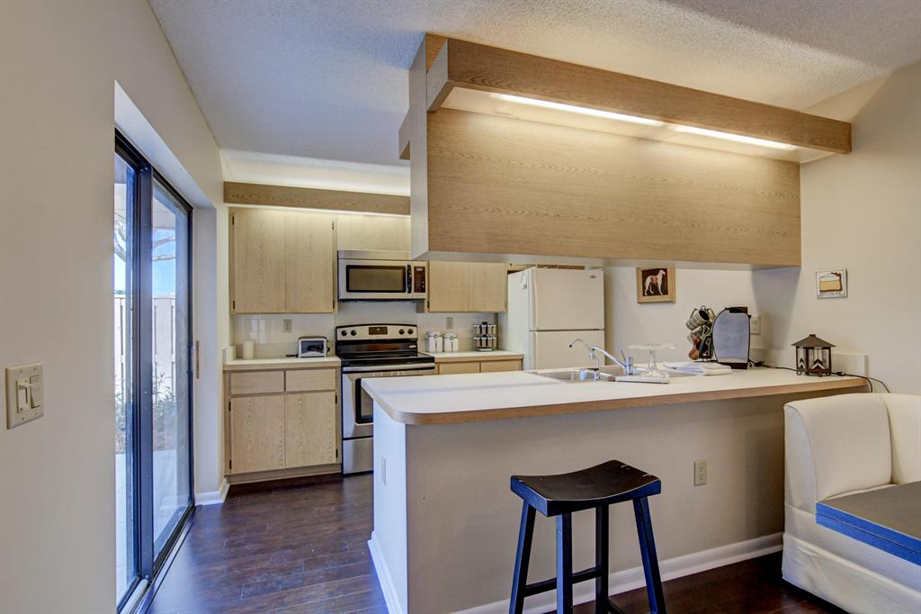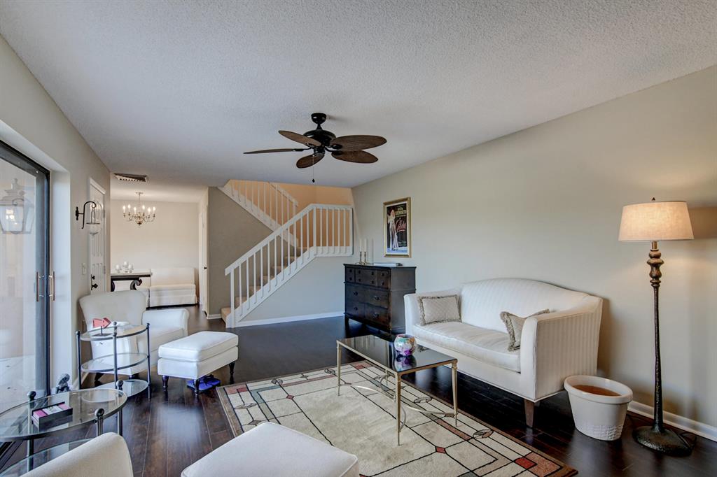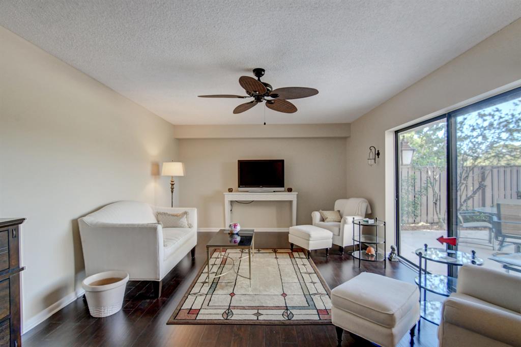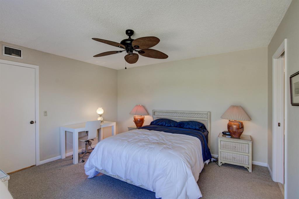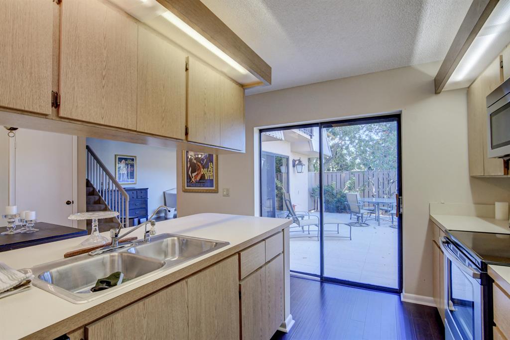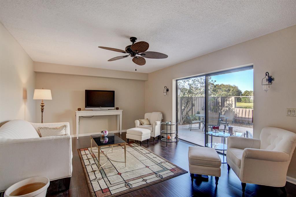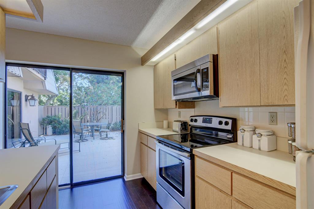 Canal views from both bedrooms, drop down fence from patio, private location, walk to Rec. facilities. Laminate flrs.downstairs, new microwave, stove & g/disposal. Decorator fans, Berber carpet.Ext. bldg. main, includes roof & fence. Bldg. ins. assigned parking, common landscaping, road resurfacing, tree trimming & more. Minutes to main arteries, grocery, banks, restaurants, PBIA airport, Discount mallDiscount mall. Beaches 15-20 minutes.