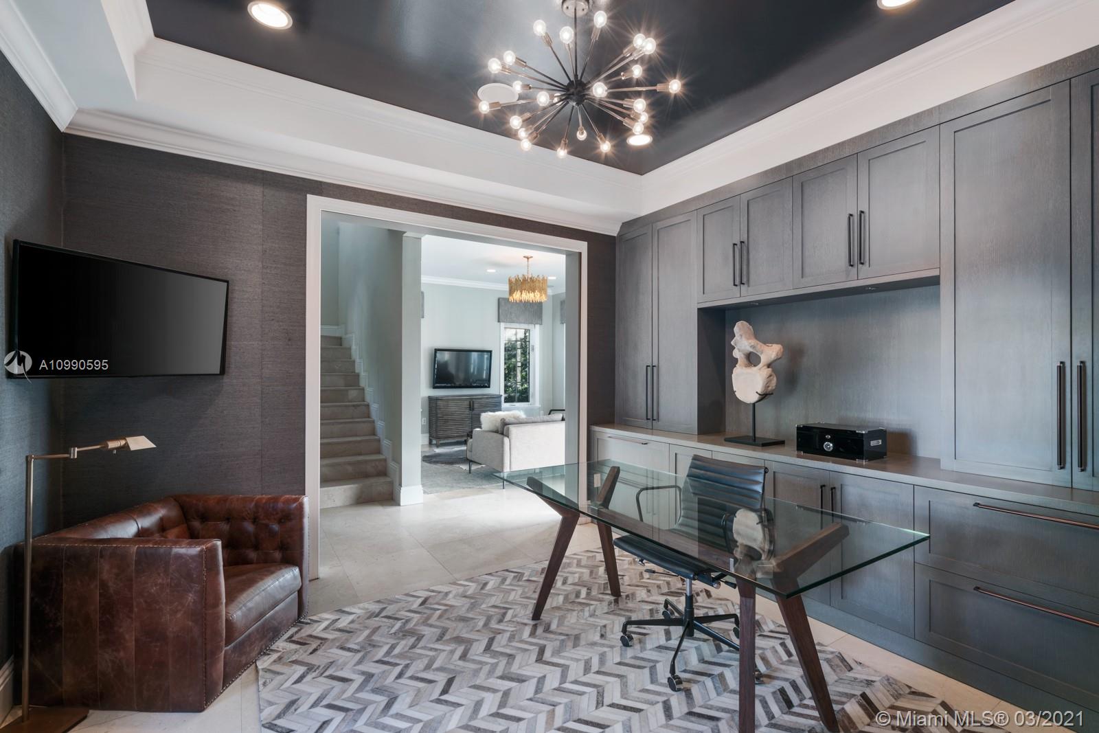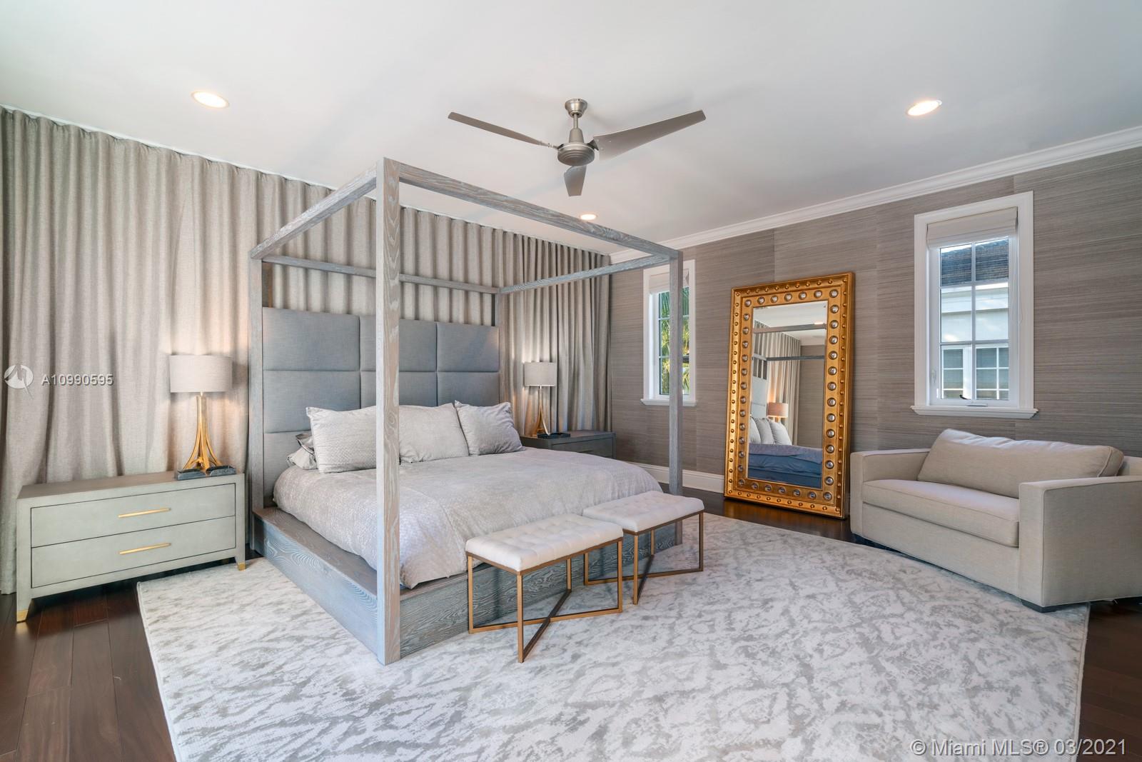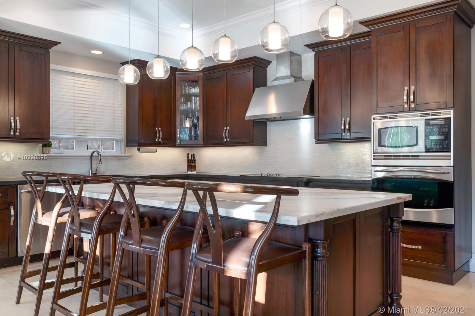 Gorgeous waterfront home located on the prestigious Coral Gables Waterway. It is a stunning contemporary French-inspired chateau on a 9,126 sf lot. The 4BR/4.5BA 4,078 total sf home includes hurricane impact windows and doors, marble floors, marble and granite countertops, high ceilings with recessed lighting, whole property sound system with zones, 13-camera security system, and wifi extenders. Less than 60' of water frontage, boat lift, and 600+ sq ft Brazilian Ipe dock with waterside seating area give access to Biscayne Bay. Gourmet eat-in kitchen is complemented by an outdoor summer kitchen complete with Lynx grill and side burner, icemaker, refrigerator and more, overlooking a sparkling saltwater pool. Generator with an underground propane tank will run the entire house for 4 days.