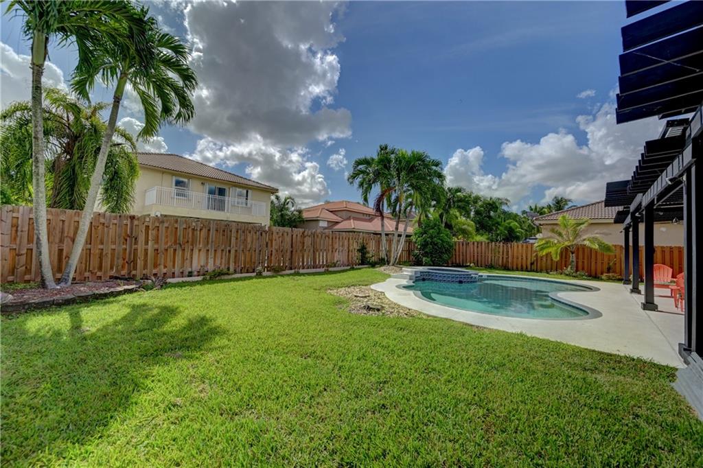 Enjoy the Weston lifestyle in this wonderful family home located in the gated community of Emerald Estates. 2 story 3100 SqFt with 5 bedrooms, 3 baths plus loft. Fully fenced yard and patio, pool and spa, Bar-B-Q area, excellent for entertainment. Master bedroom upstairs, one bedroom downstairs, ceramic flooring on the social areas, carpeted bedrooms, Granite kitchen counters, white wooden cabinets and stainless steel appliances. 3 car garage, IMPACT WINDOWS upstairs, HOA includes security, landscaping and irrigation, amenities, gated community, Guard at gate, community gym, common areas. Close to all A++ schools, shopping, restaurants and major highways.