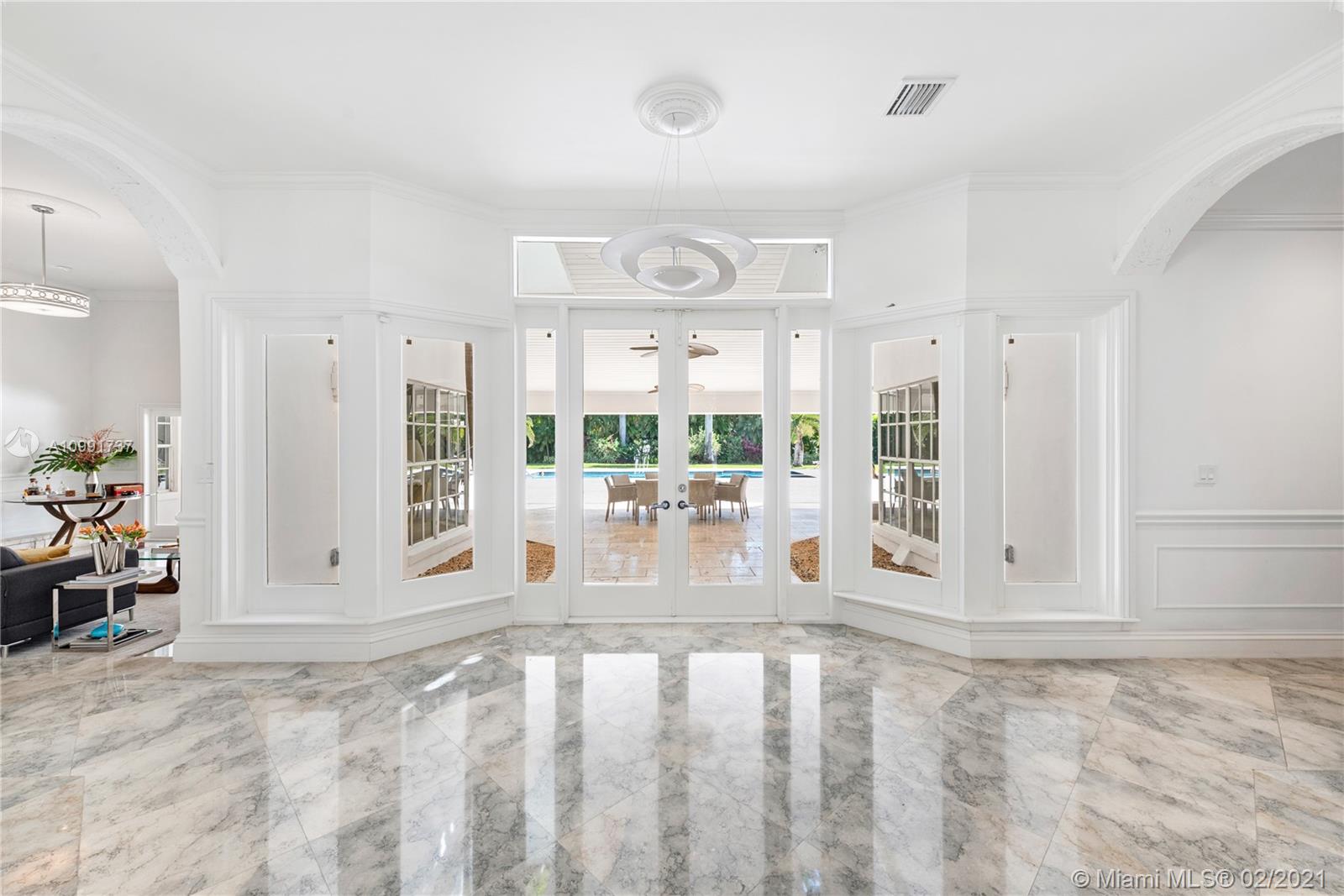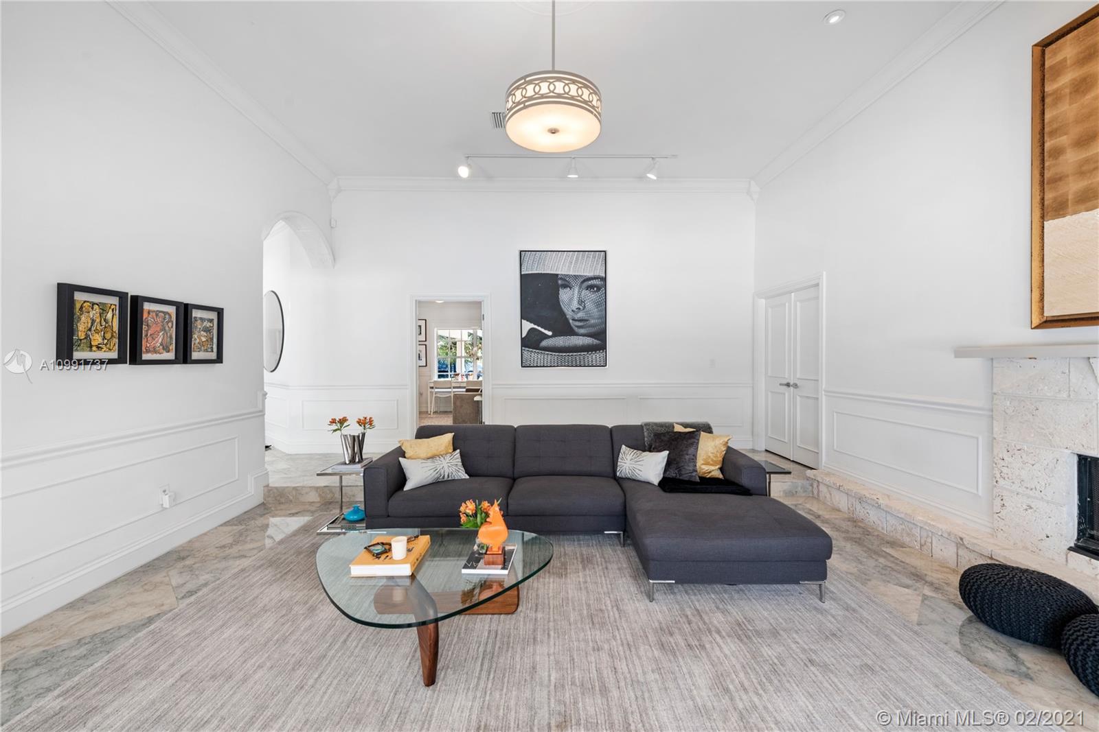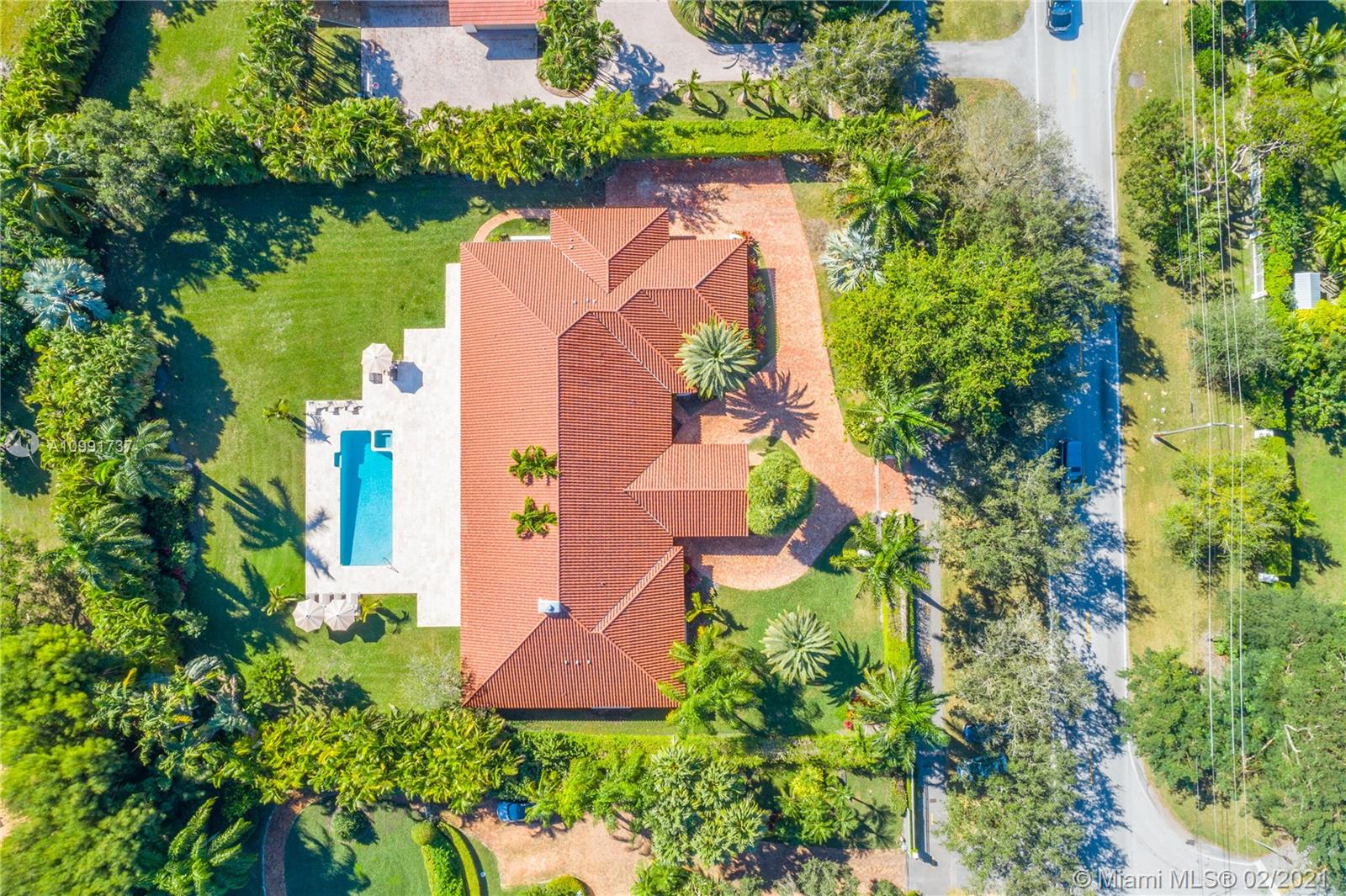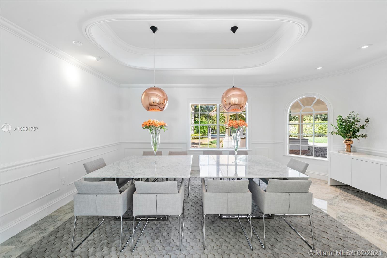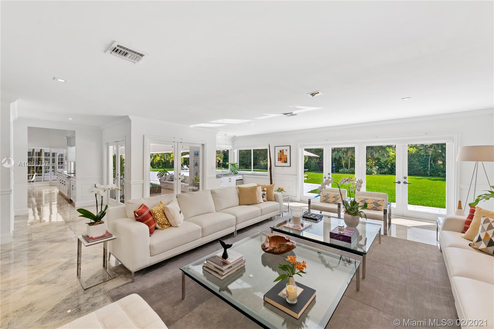 Tucked off historic Old Cutler Road, a tree-lined prestigious street in Coral Gables, a veritable paradise awaits. Here, sunlight dances across each room, lush greenery invigorates, and life unveils its most beautiful moments. Enter your gated drive with interlocking brickwork, yielding a spacious, private acre lot dotted with palms. An expansive foyer welcomes, while beyond, the one-story open plan offers endless room to play. Enjoy walk-through access to your immense backyard and inground pool, where you can cool off and sip champagne poolside. Living spaces reveal richly veined marble flooring in eye-catching contrast to bedrooms lined in lustrous dark hardwood. Decorative molding elevates crisp white walls, and drop lighting becomes a work of art in iridescent tones. Welcome home.