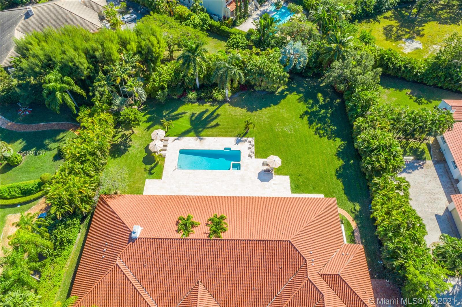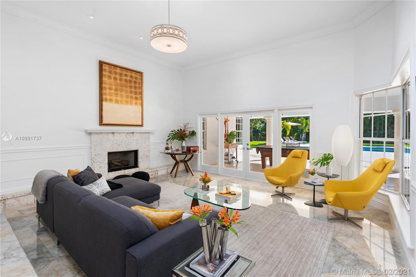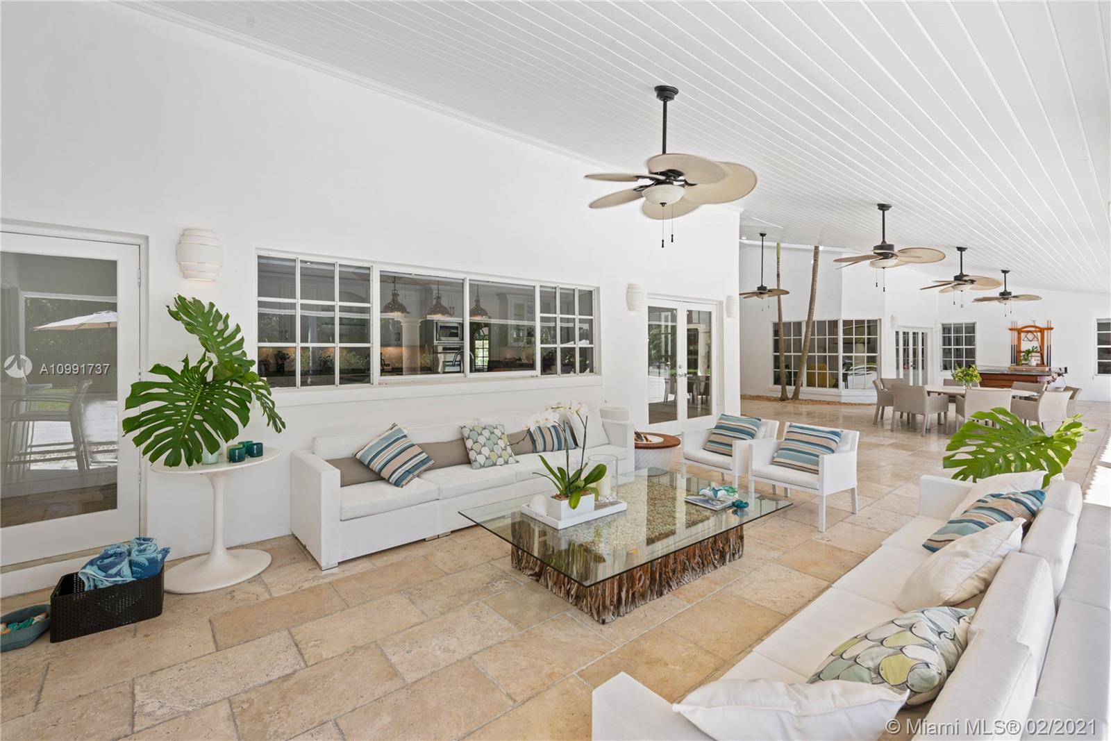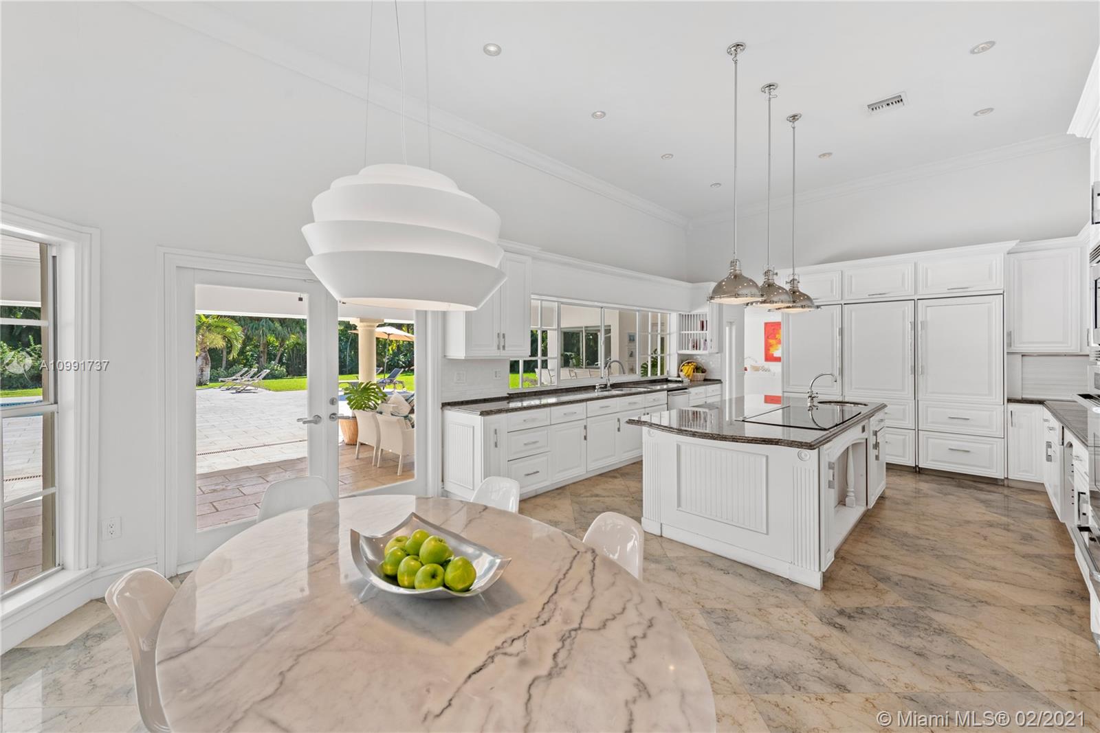 Tucked off historic Old Cutler Road, a tree-lined prestigious street in Coral Gables, a veritable paradise awaits. Here, sunlight dances across each room, lush greenery invigorates, and life unveils its most beautiful moments. Enter your gated drive with interlocking brickwork, yielding a spacious, private acre lot dotted with palms. An expansive foyer welcomes, while beyond, the one-story open plan offers endless room to play. Enjoy walk-through access to your immense backyard and inground pool, where you can cool off and sip champagne poolside. Living spaces reveal richly veined marble flooring in eye-catching contrast to bedrooms lined in lustrous dark hardwood. Decorative molding elevates crisp white walls, and drop lighting becomes a work of art in iridescent tones. Welcome home.