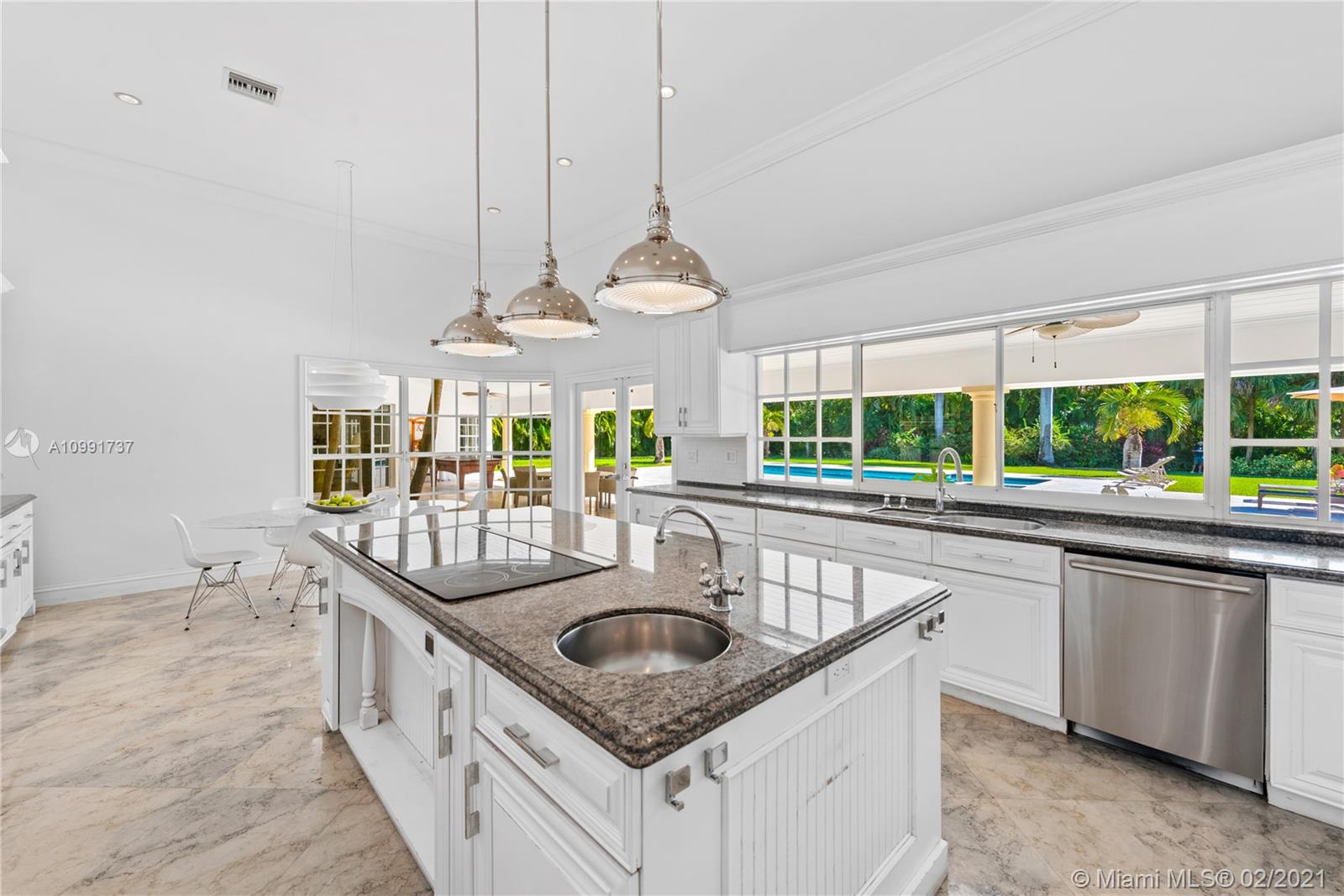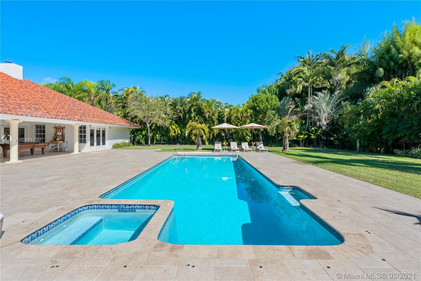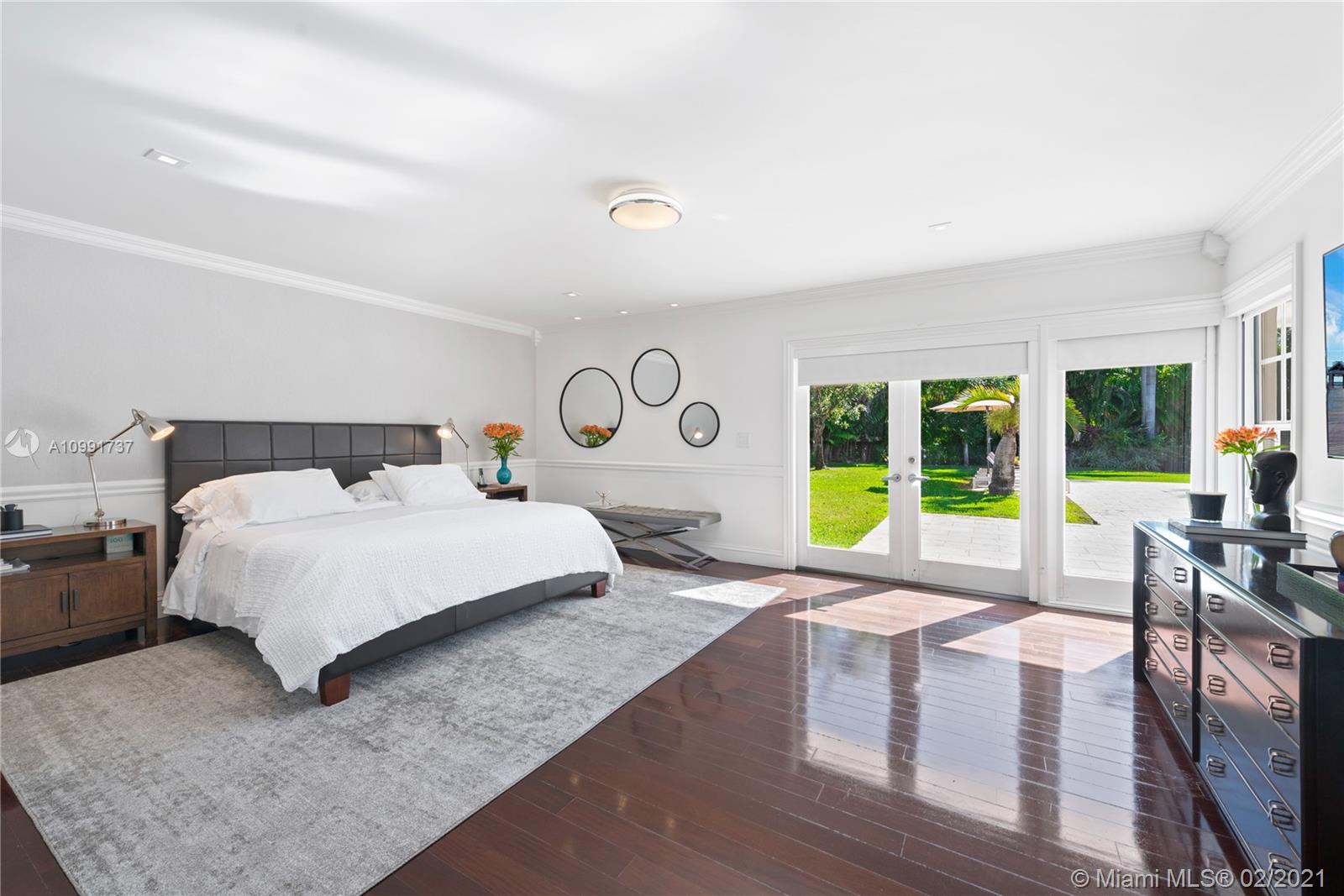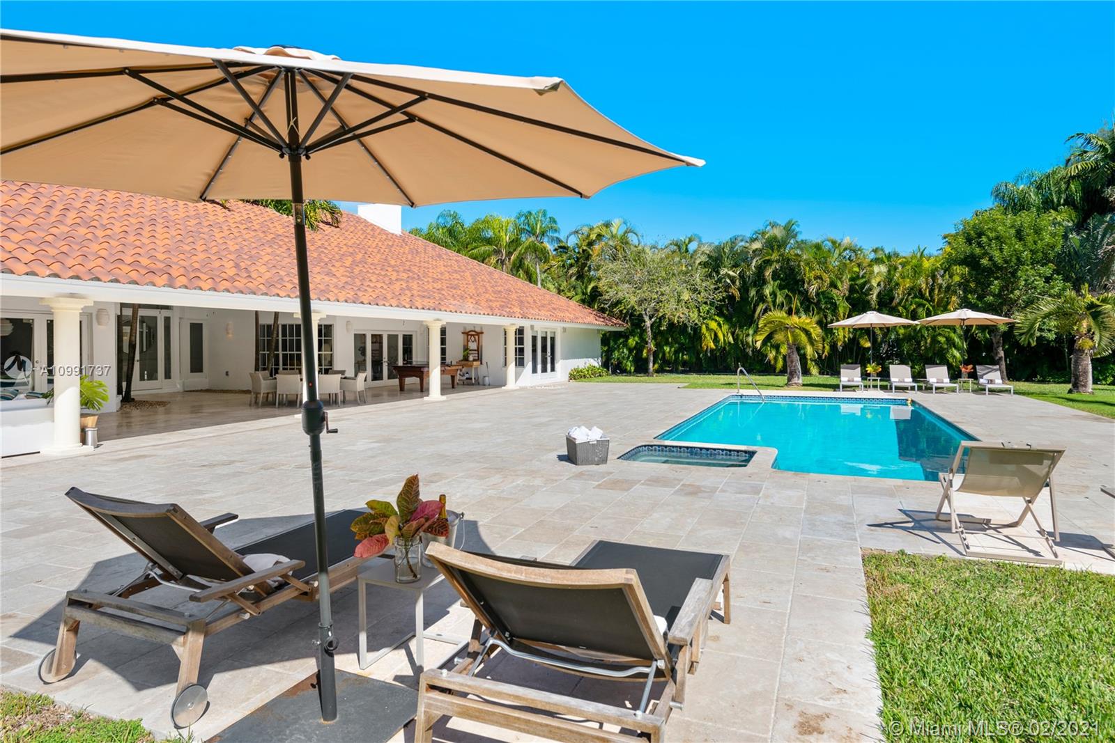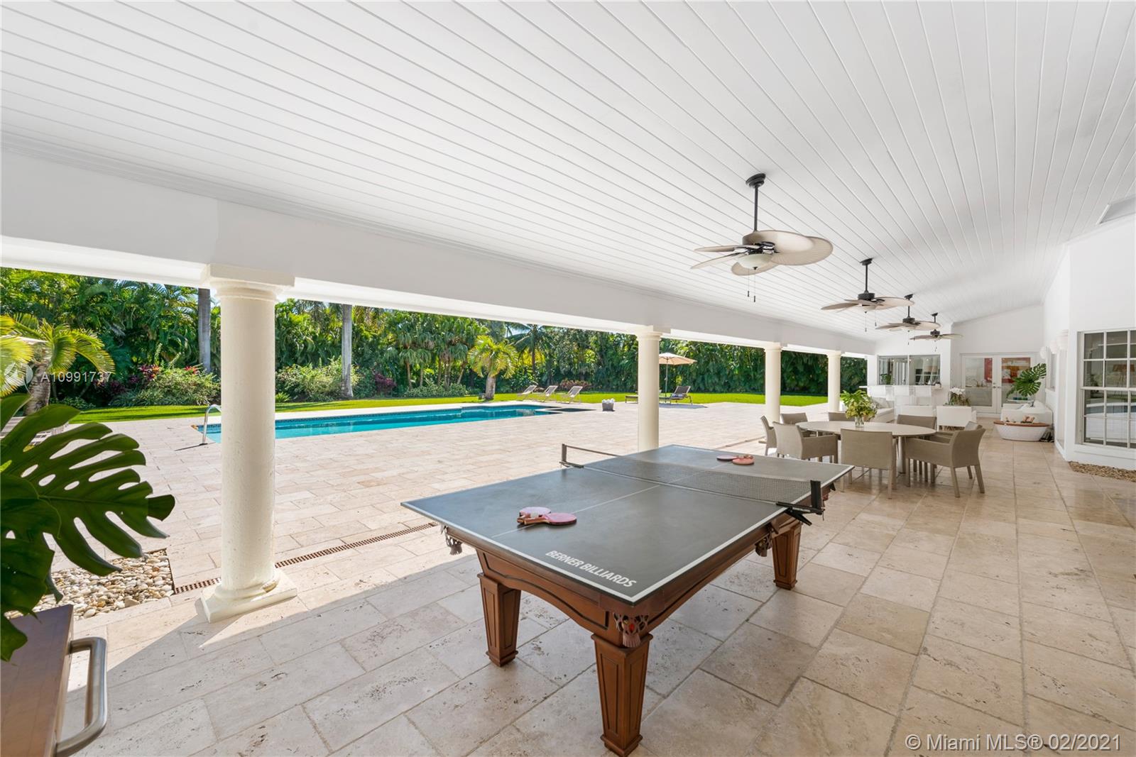 Tucked off historic Old Cutler Road, a tree-lined prestigious street in Coral Gables, a veritable paradise awaits. Here, sunlight dances across each room, lush greenery invigorates, and life unveils its most beautiful moments. Enter your gated drive with interlocking brickwork, yielding a spacious, private acre lot dotted with palms. An expansive foyer welcomes, while beyond, the one-story open plan offers endless room to play. Enjoy walk-through access to your immense backyard and inground pool, where you can cool off and sip champagne poolside. Living spaces reveal richly veined marble flooring in eye-catching contrast to bedrooms lined in lustrous dark hardwood. Decorative molding elevates crisp white walls, and drop lighting becomes a work of art in iridescent tones. Welcome home.